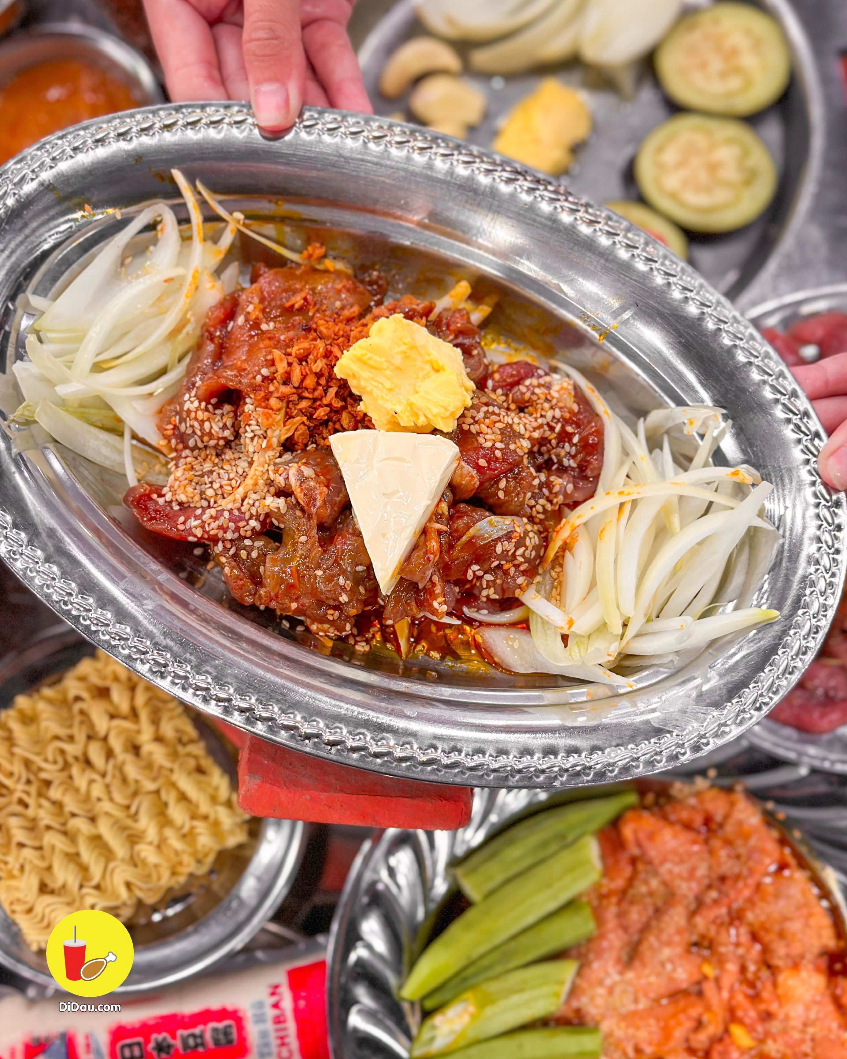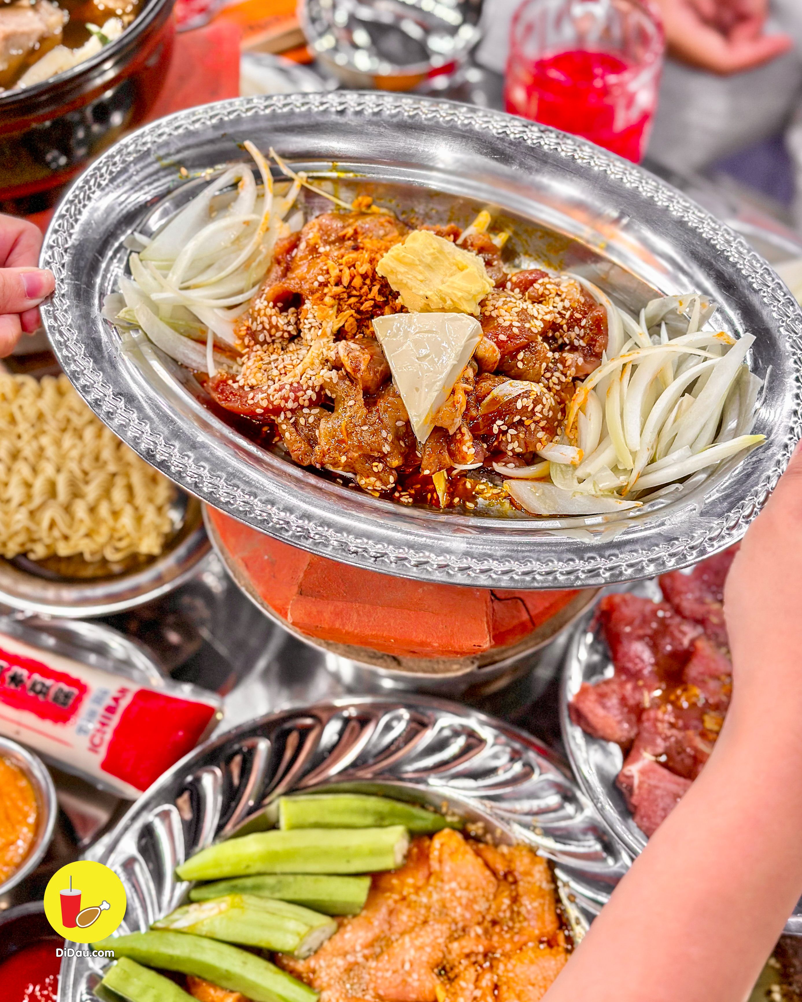 Dê được phục vụ trên chảo né đặt trên bếp than hồng với hành tây, bơ và phô mai. Thịt được né vừa chín tới nên mềm mại như tan ra trong miệng vậy mà còn được kết hợp với bơ và phô mai béo ngậy. Gia vị nêm nếm thì ngon không chê vào đâu được.