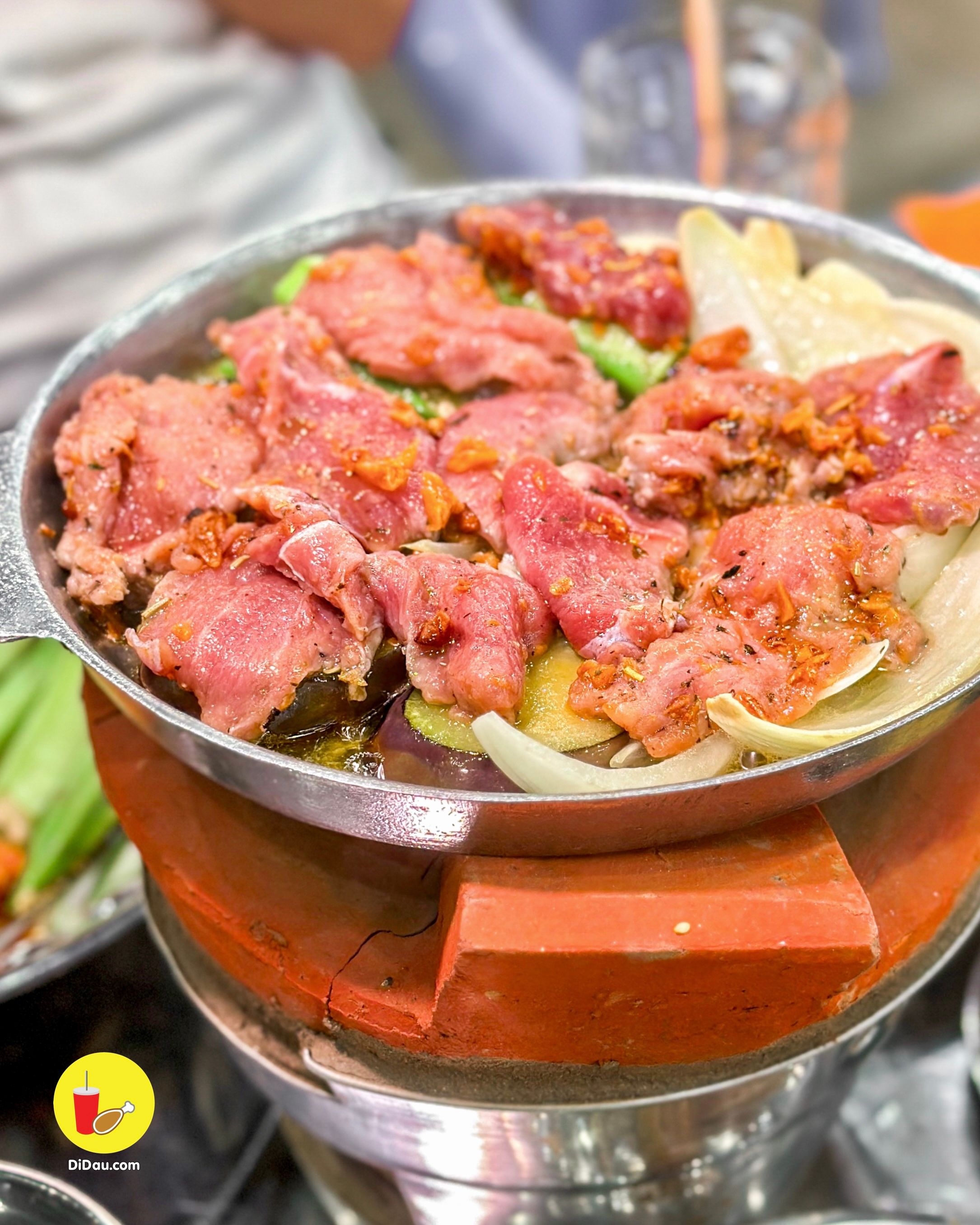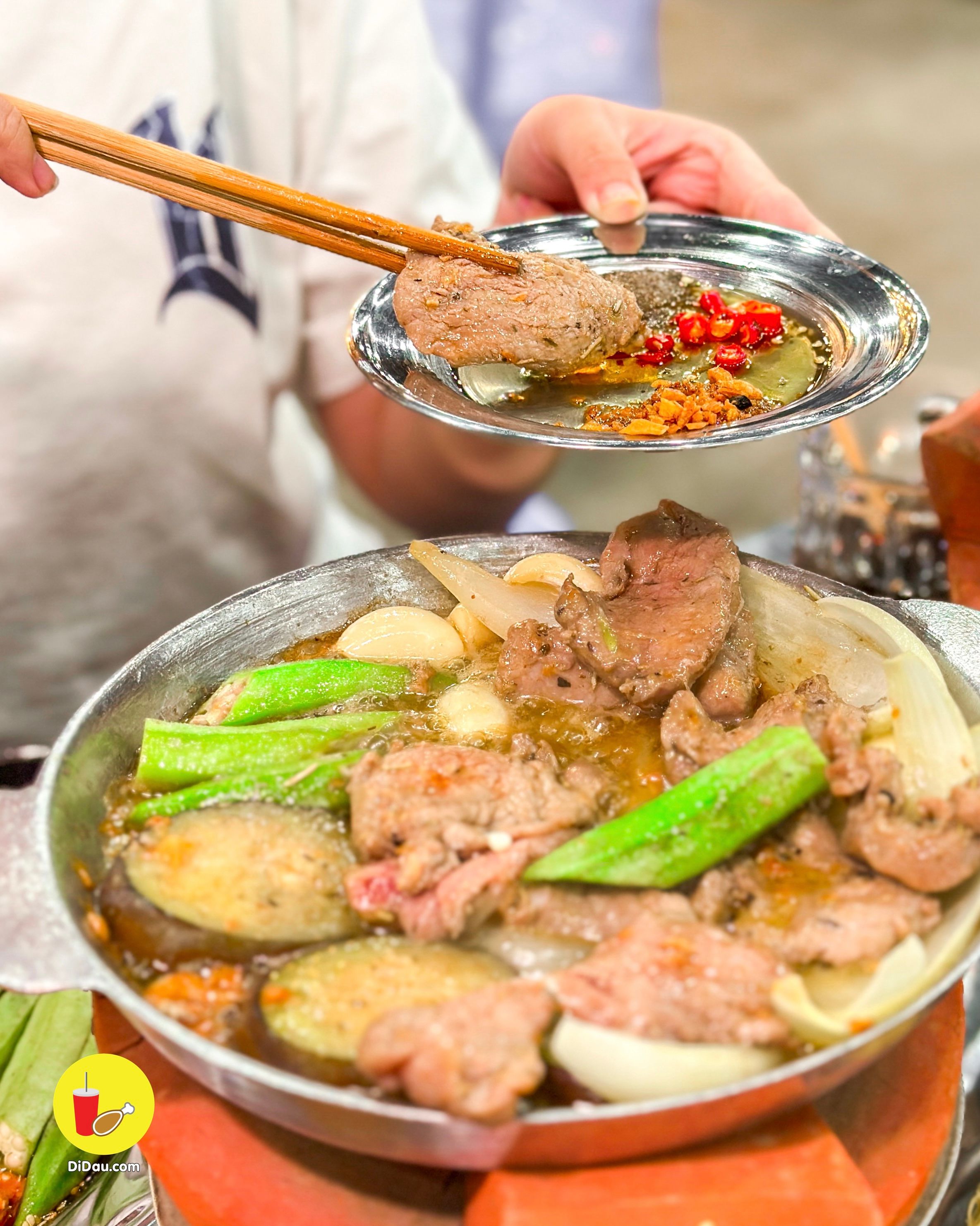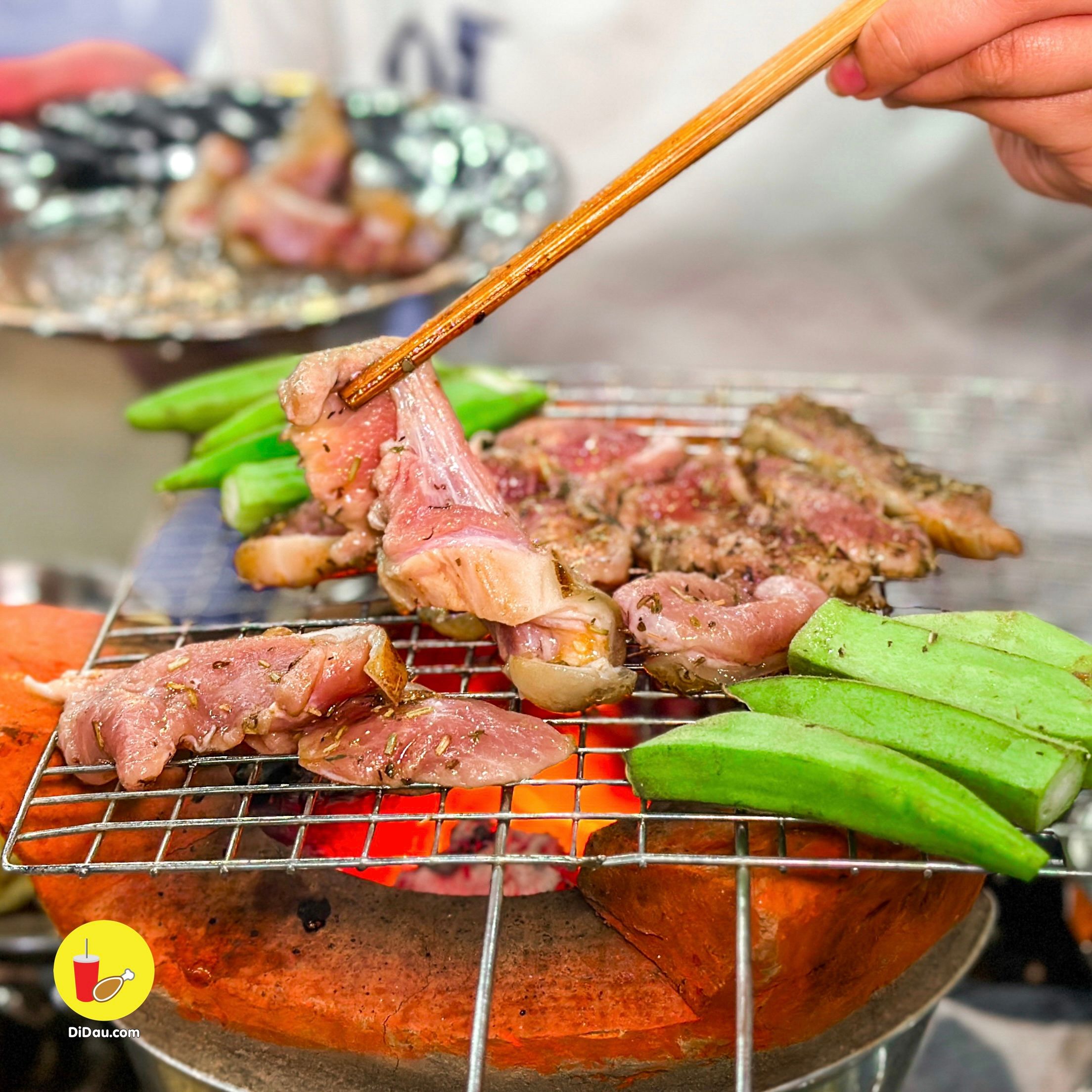 Món này cũng đặc biệt ngon. Thịt dê được cắt miếng dày hơn món né và tẩm ướp cũng nhẹ nhàng hơn. Thịt dê được né trên chảo cùng tỏi, bơ và các loại rau củ ăn kèm nhưng đặc biệt nhất phải là món nước chấm tắc thần thánh chua chua ngọt ngọt chưa thấy ở đâu làm ngon bằng.