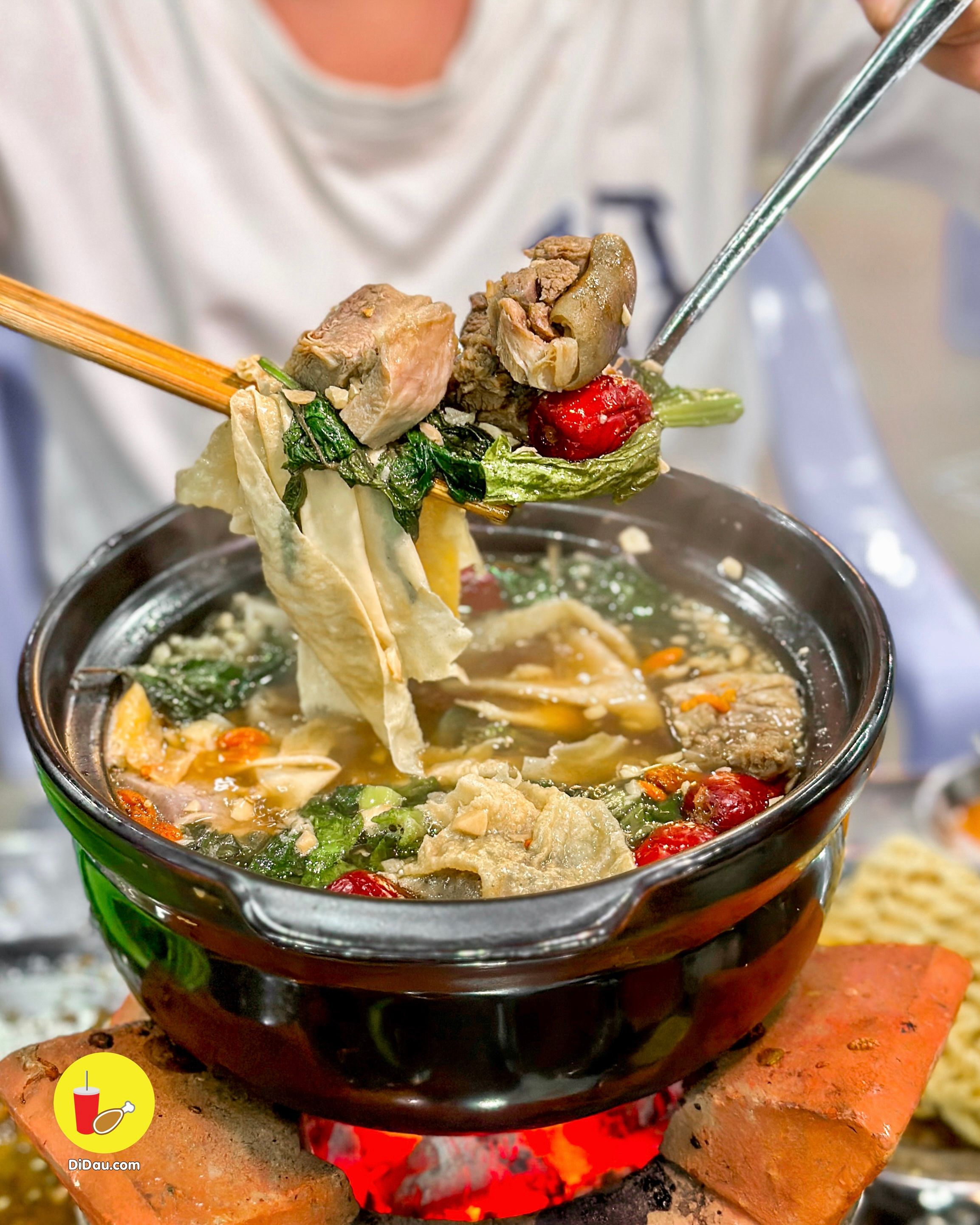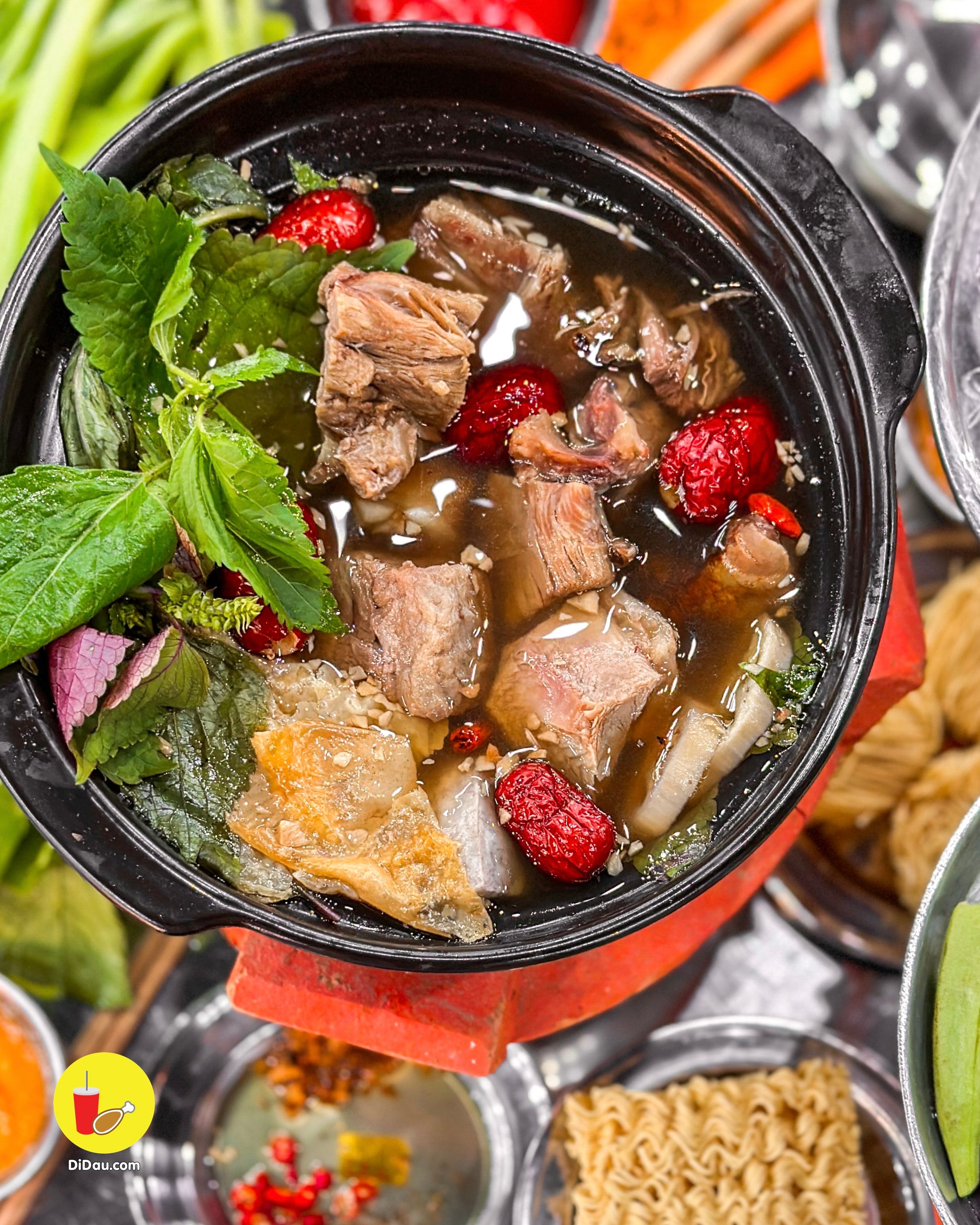 Ăn nhiều món quá nên đến lẩu mình chọn loại nhỏ thôi tại ăn không hết. Thịt dê được cắt miếng vừa ăn nên mềm và thấm với nước lẩu đậm đà thơm mùi thuốc Bắc.