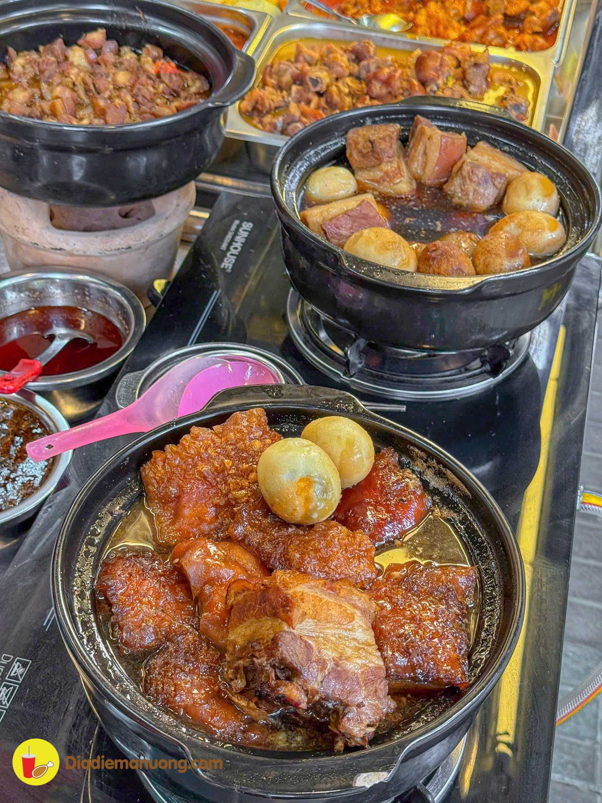 Các món kho ăn cơm cũng cực kì phong phú từ heo quay kho, cá kho, thịt kho, mực, ếch … đầy đủ luôn. Để lựa chọn ăn gì cũng khó vì nhìn các món ở quán món nào mình cũng thấy hấp dẫn hết.