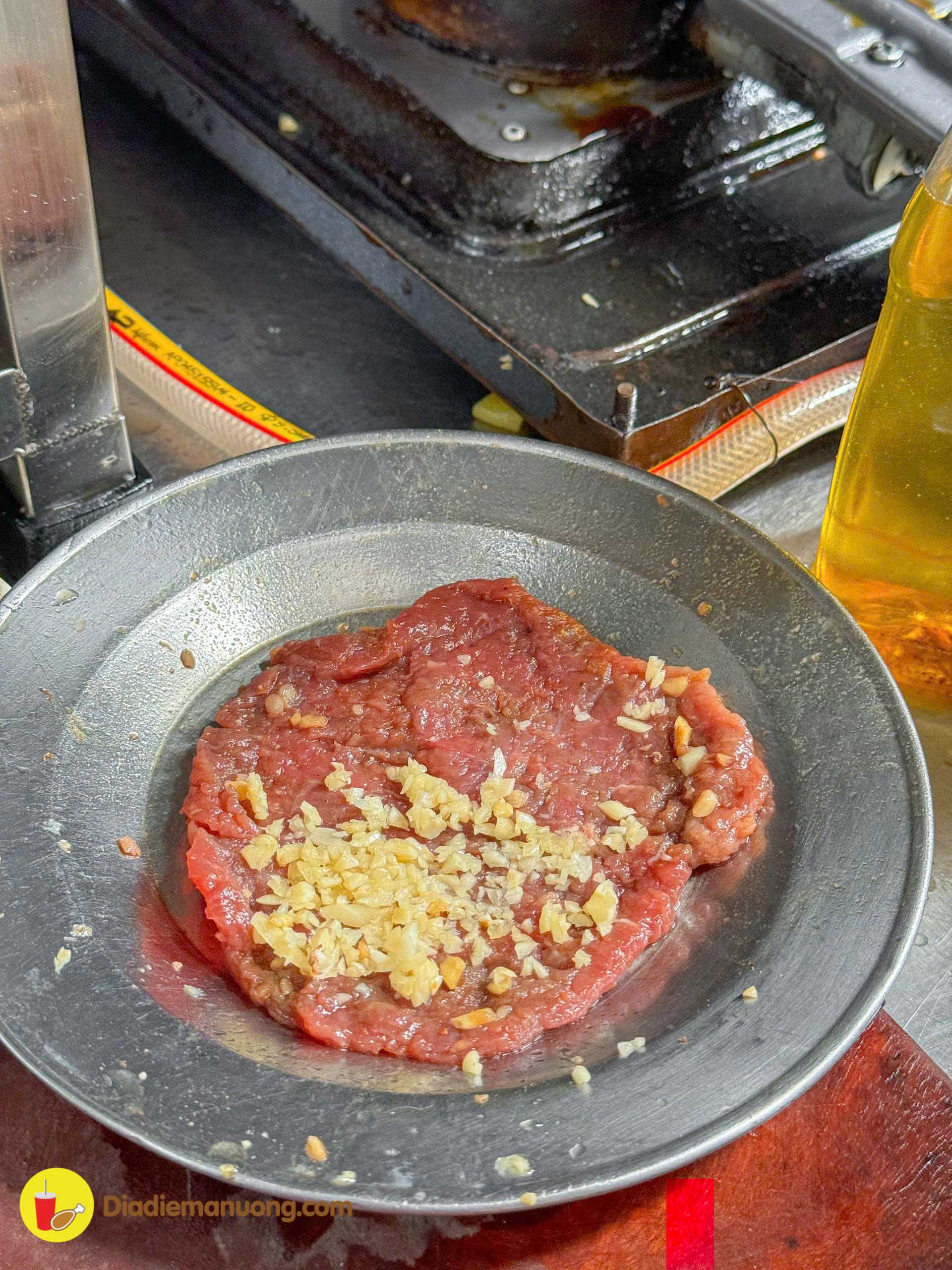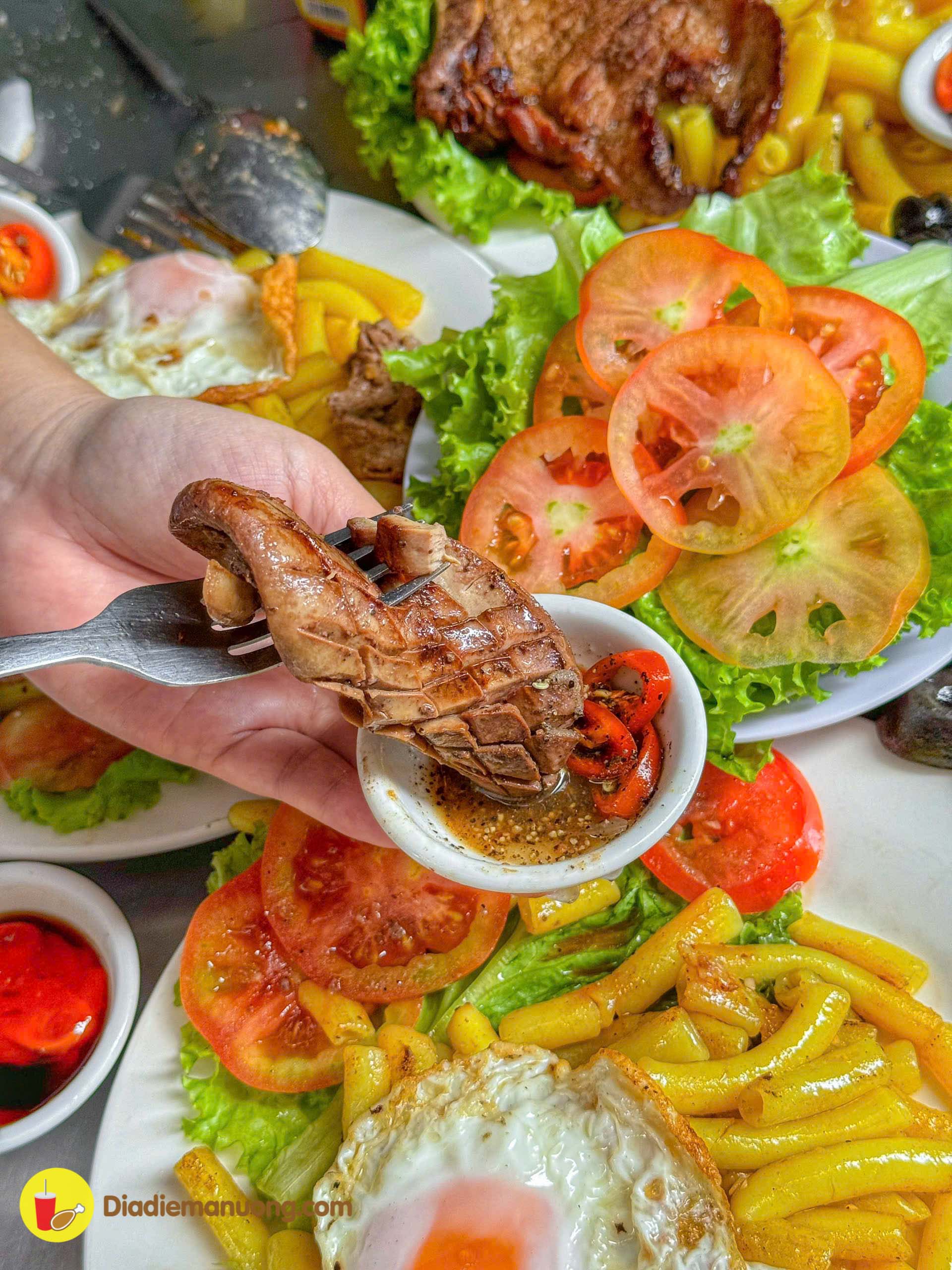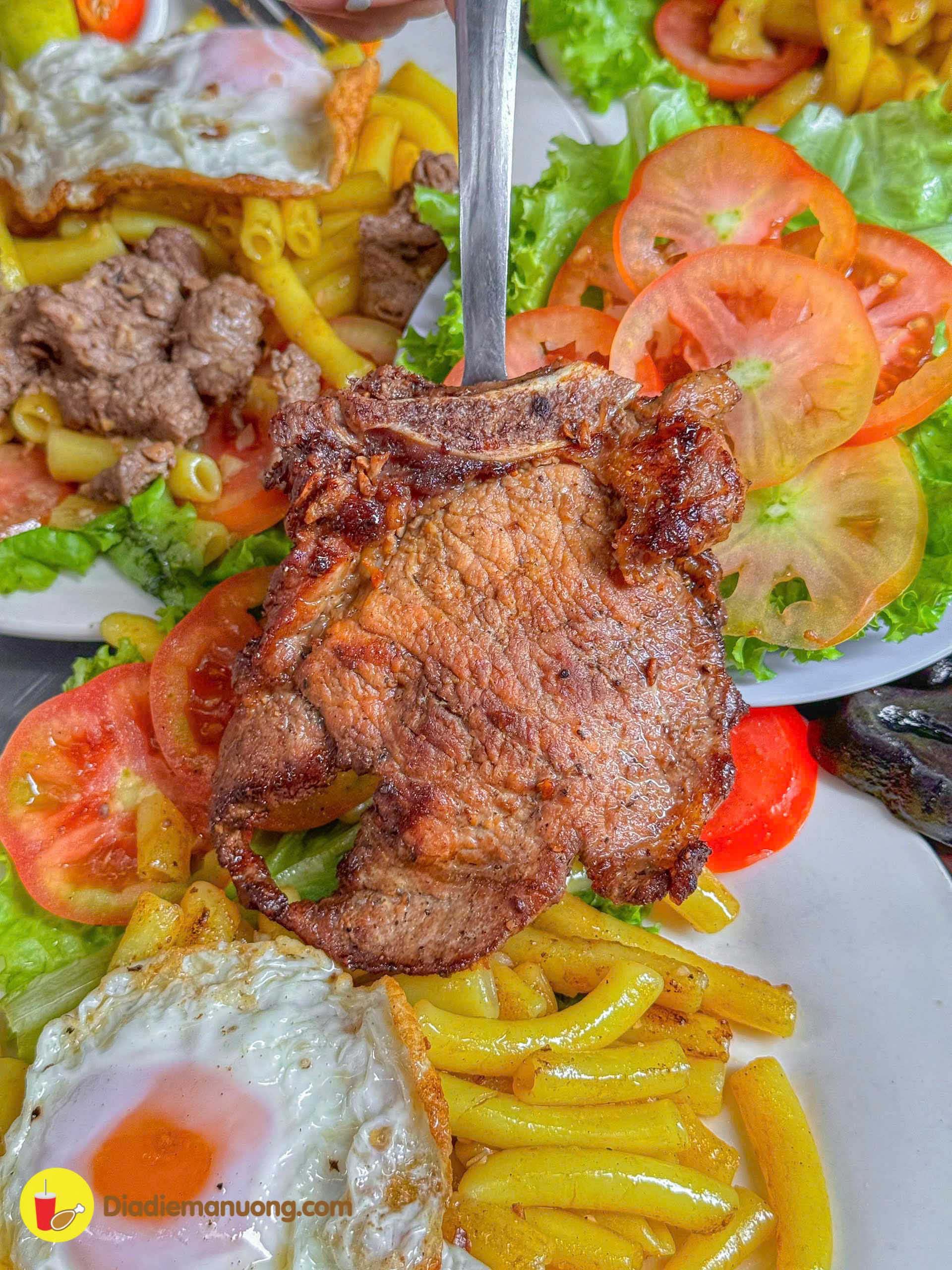 Món chính chủ yếu là bò bít tết, bò lúc lắc có thêm cả sườn heo bít tết với cật heo nữa.