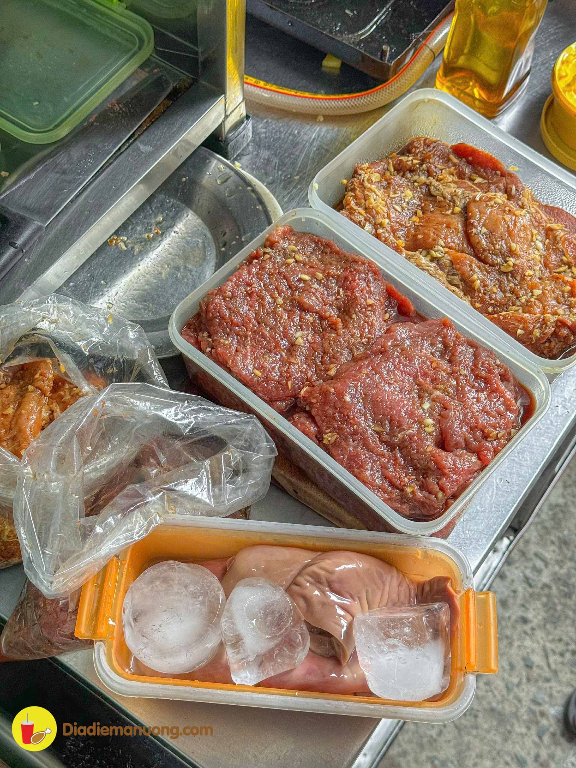 Các loại thịt được quán ướp vừa ăn, chỉ có cật thì được sơ chế làm sạch cho ko bị hôi, khi chiên mới được tẩm ướp gia vị thêm. Các món đều được cho thêm xíu bơ làm dậy mùi thơm hơn cho thịt mà ko bị quá gắt dầu.