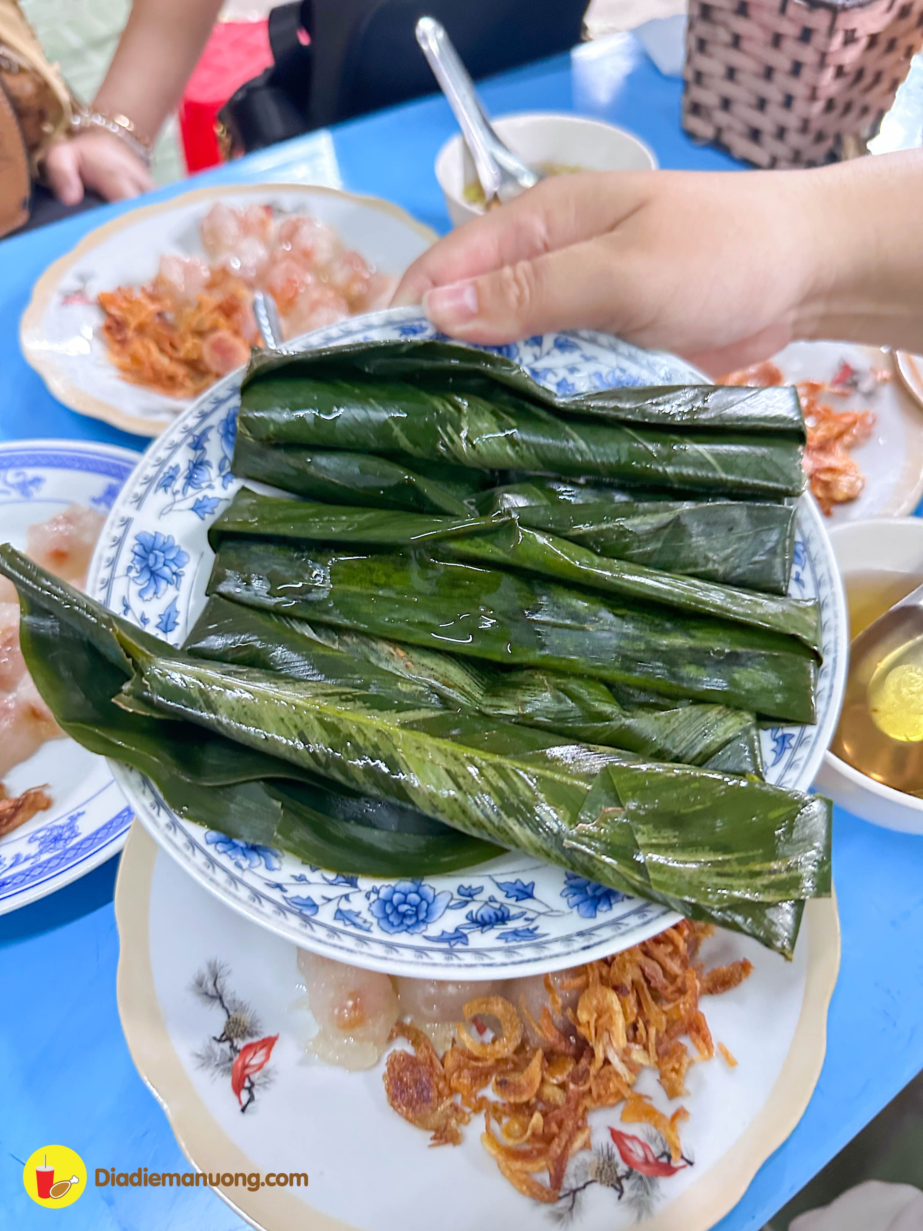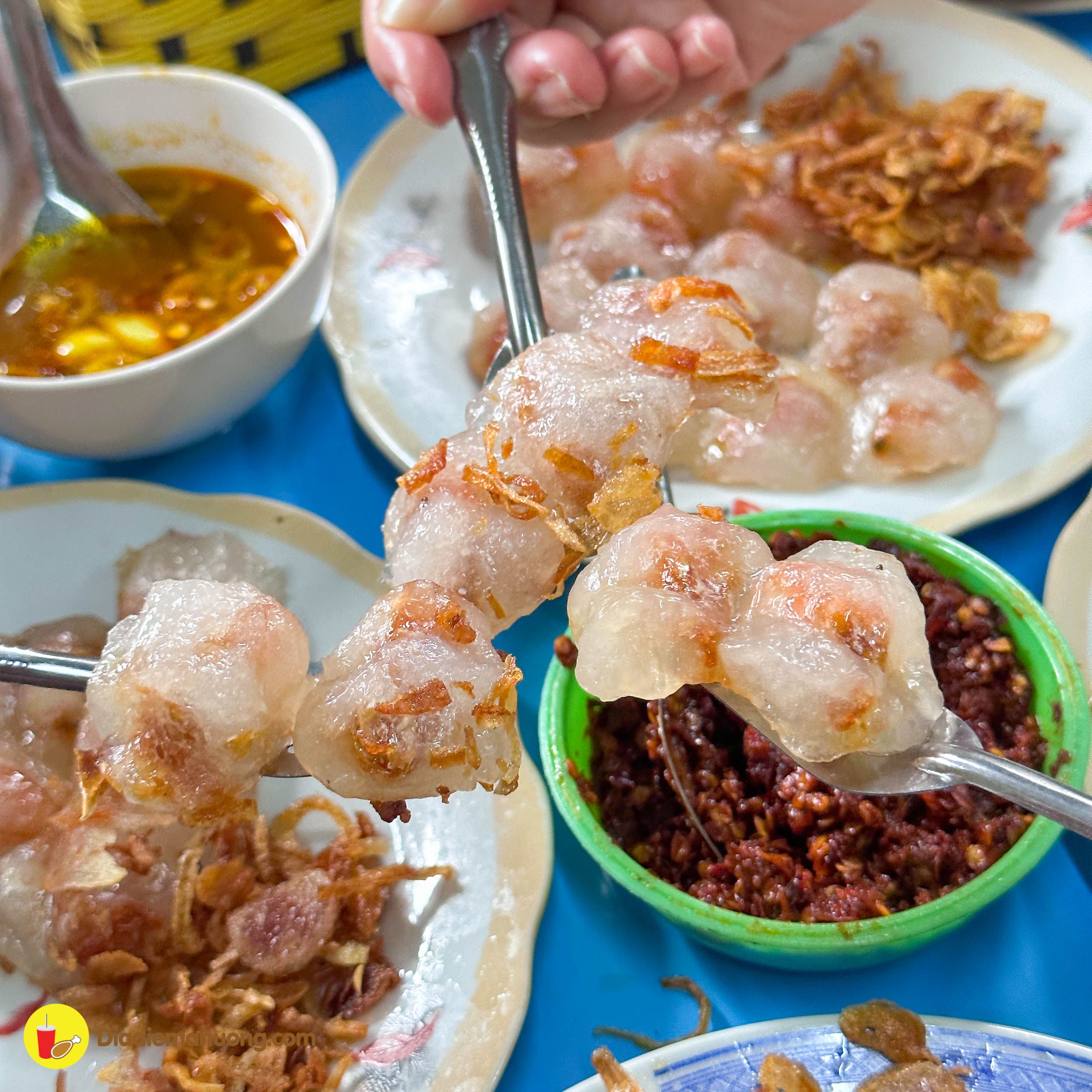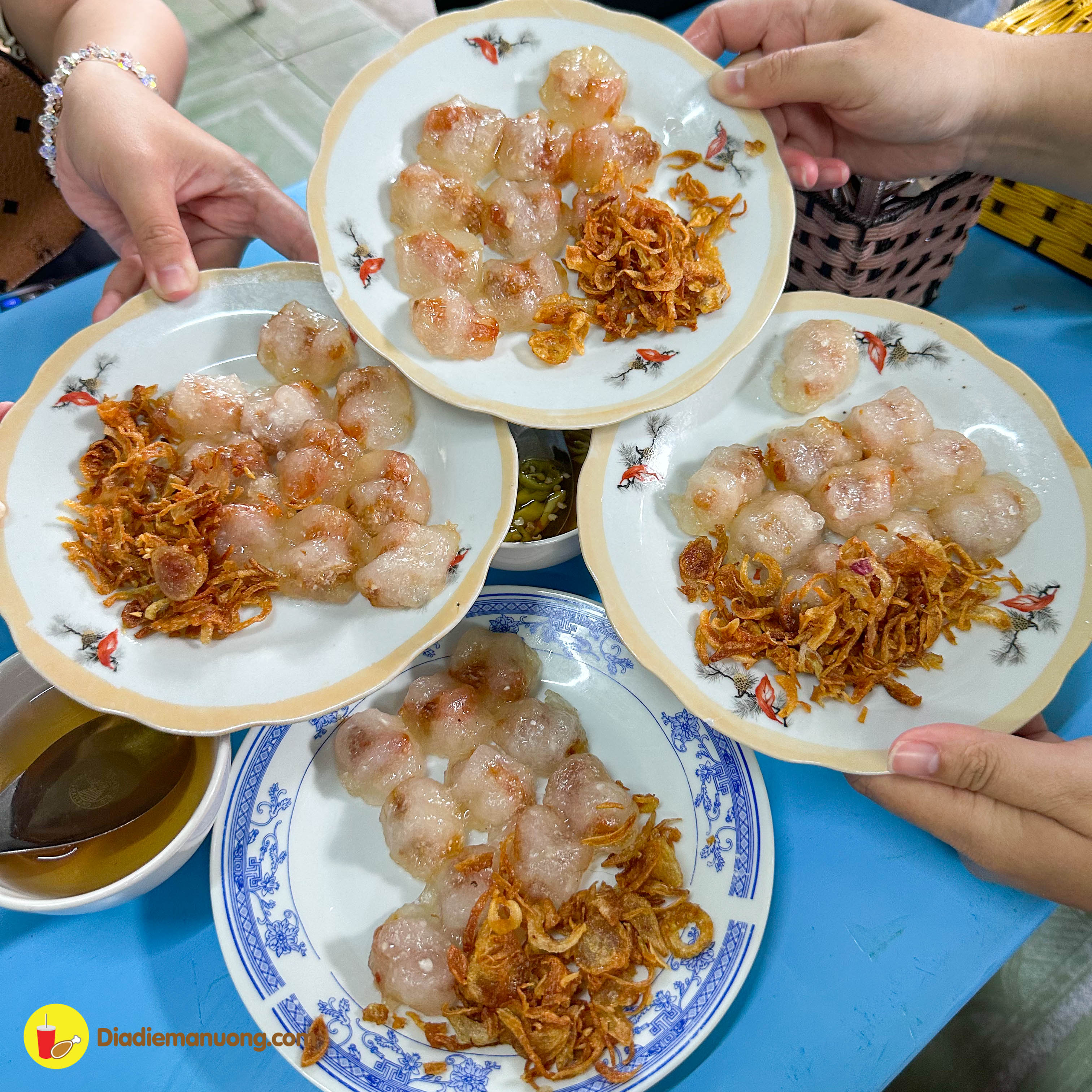 Bánh bột lọc tại đây có nhân ở trong là tôm rim cùng với mỡ heo nha mọi người