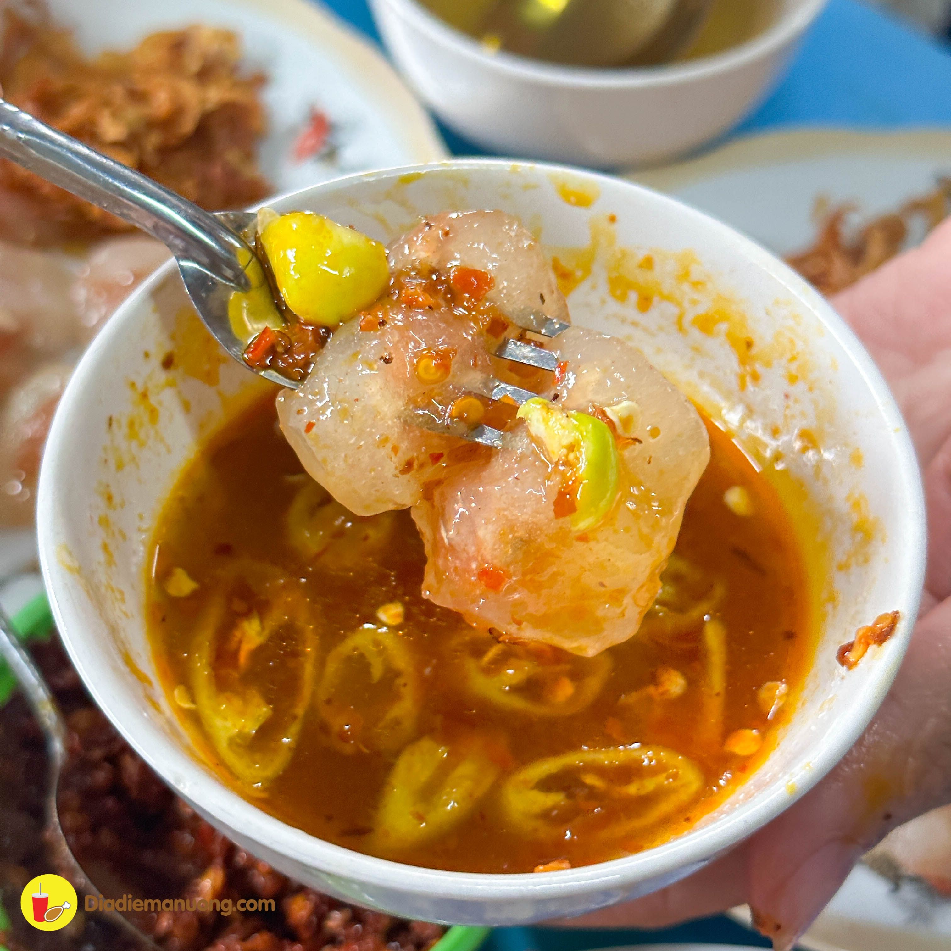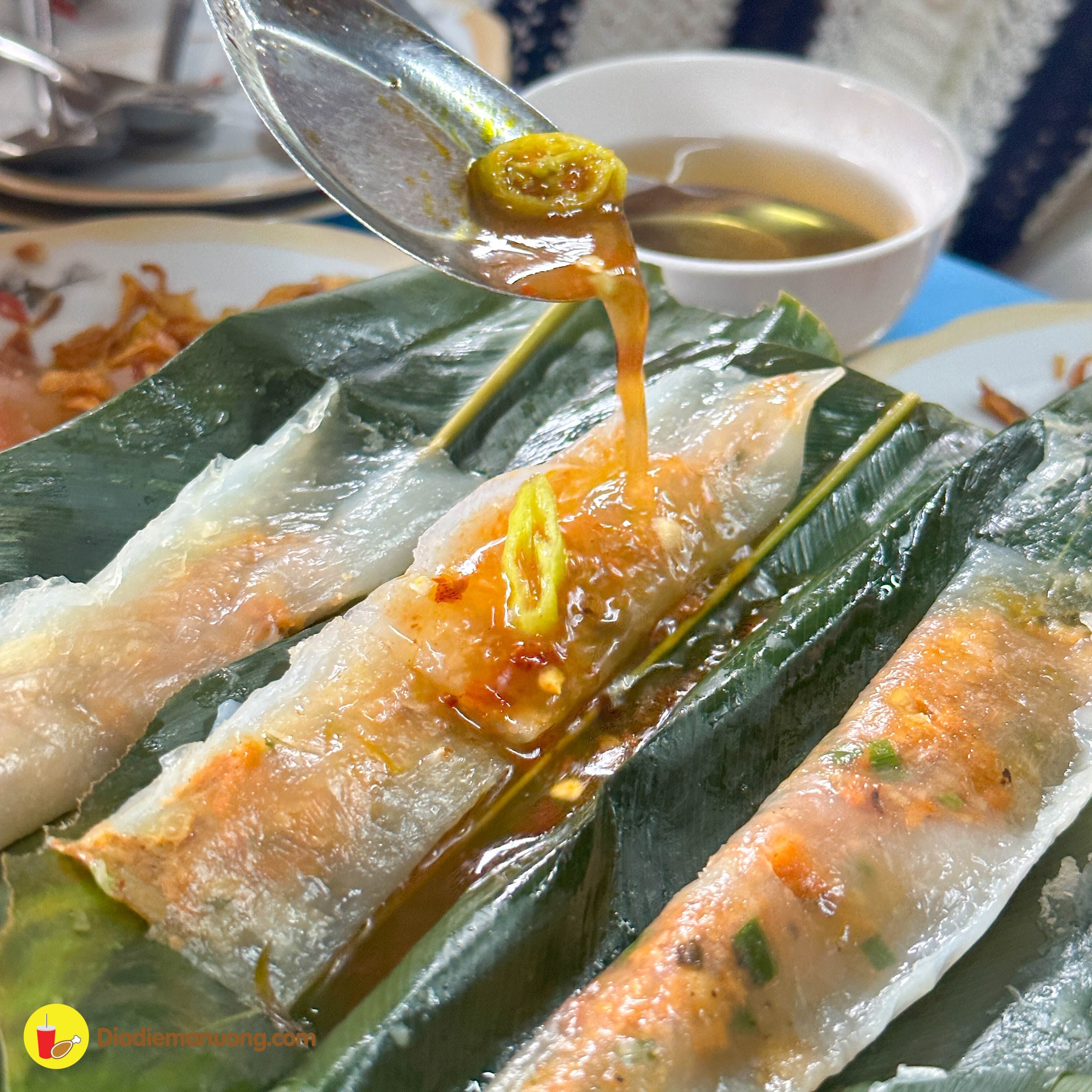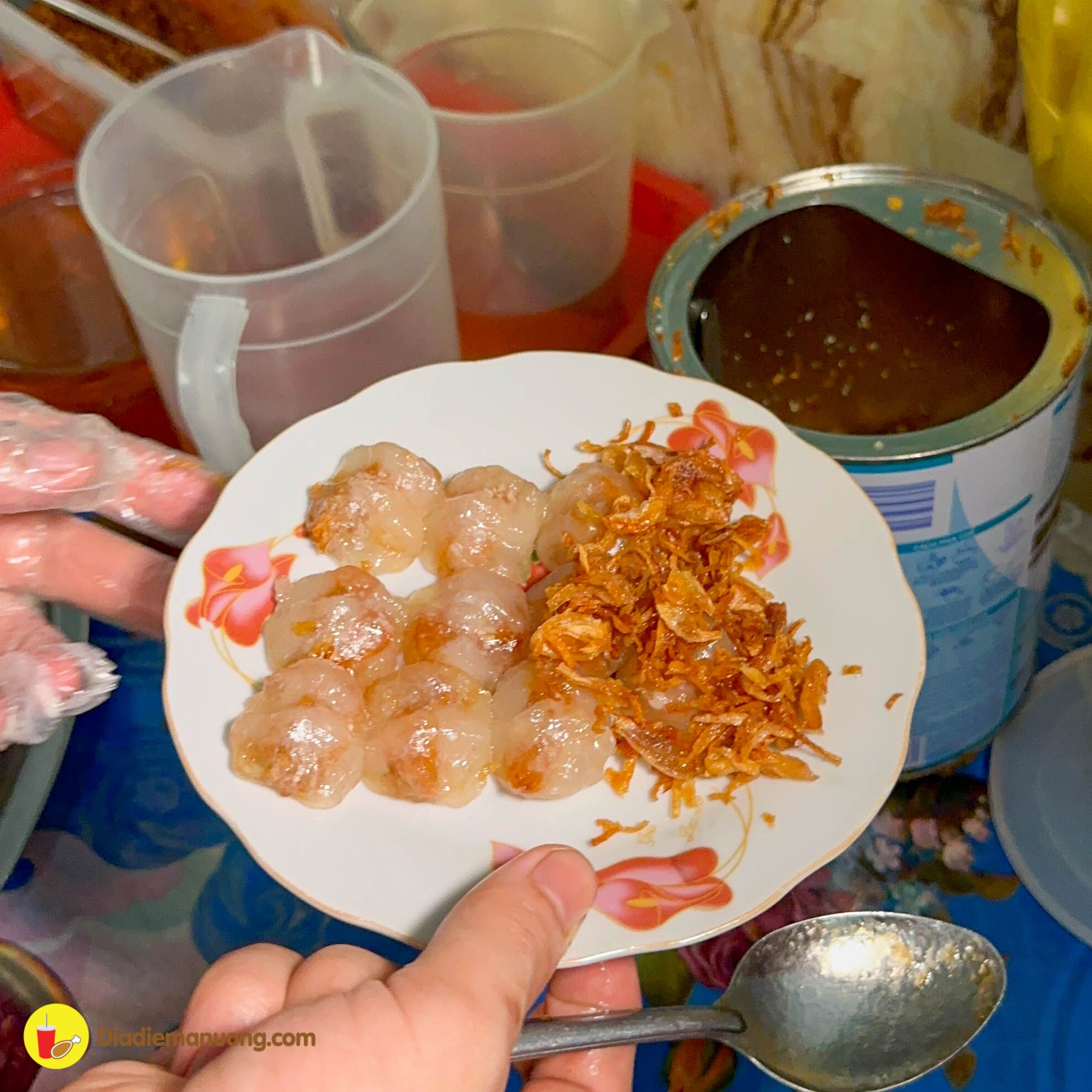 Bánh bột lọc tại đây có nhân ở trong là tôm rim cùng với mỡ heo nha mọi người