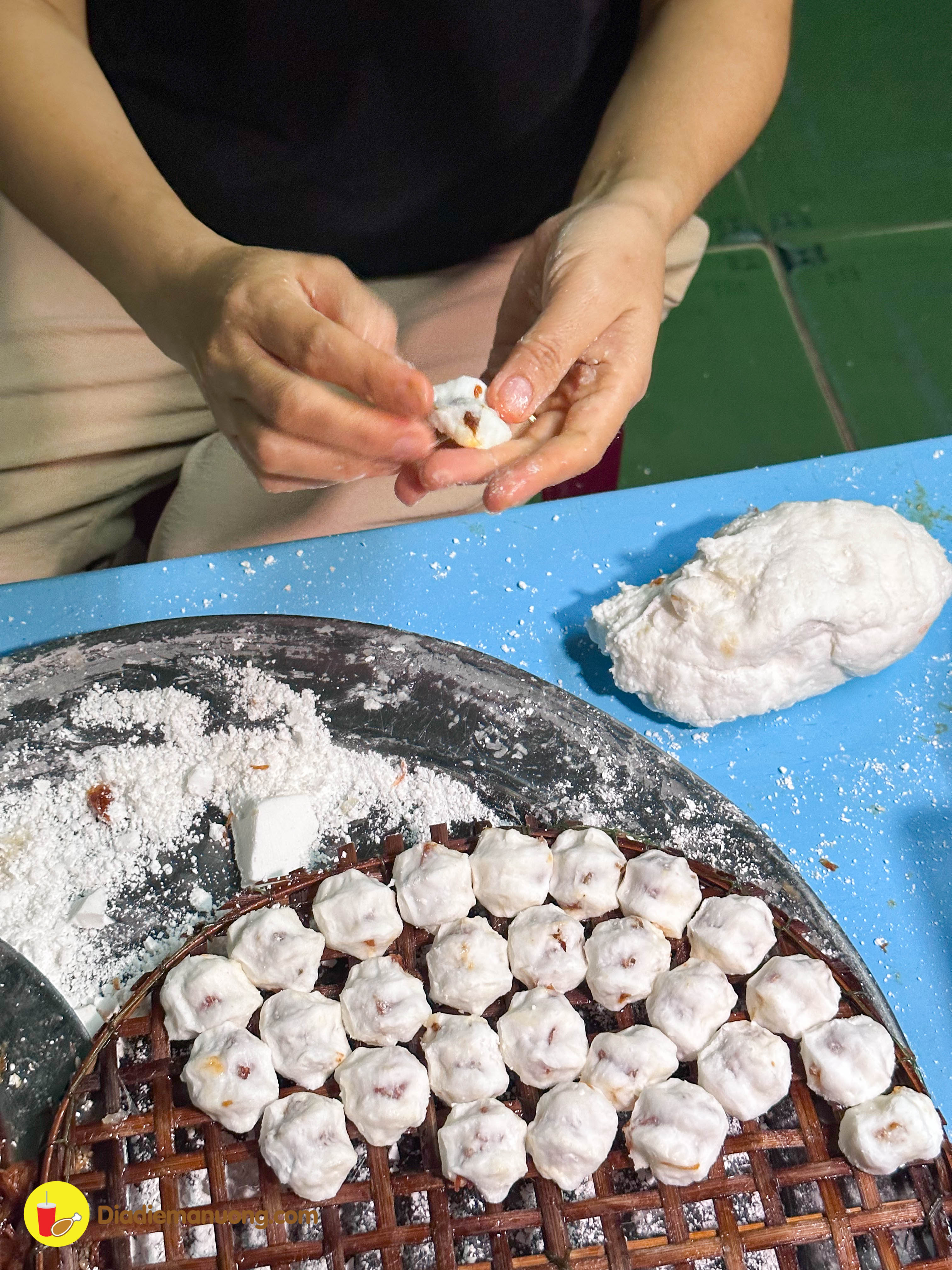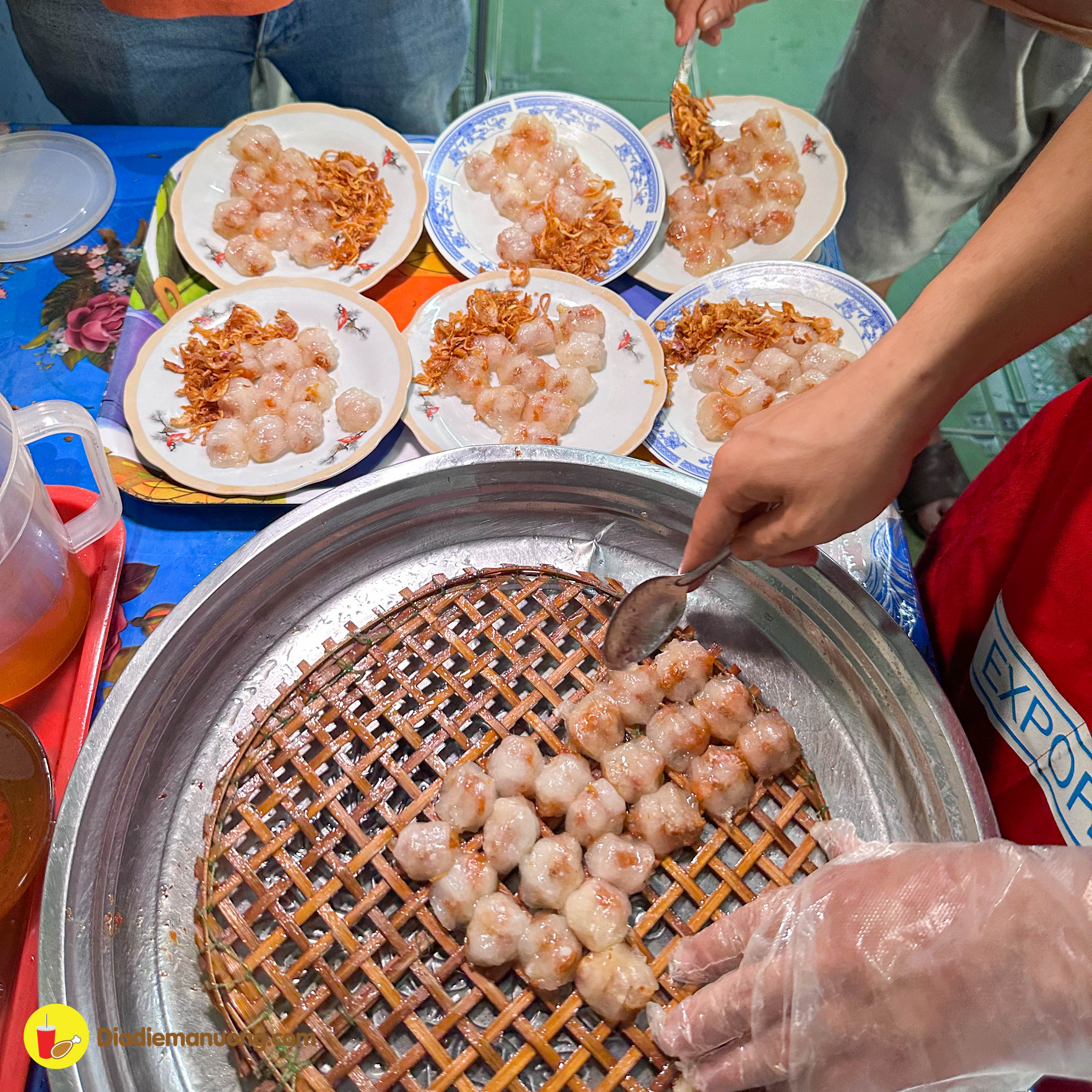 Bánh bột lọc lúc chưa hấp nhìn trắng vầy nè cơ mà viên nào viên nấy cũng ú nu do nhân bên trong là tôm rim với mỡ heo khá nhiều.