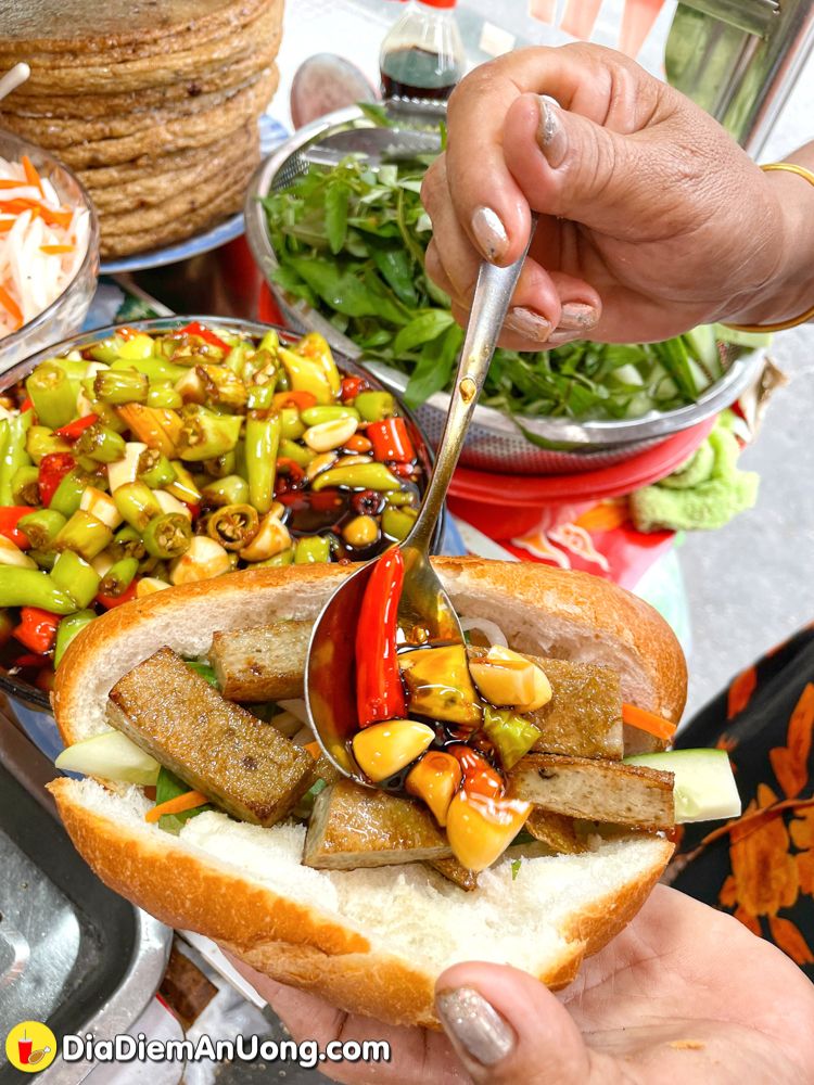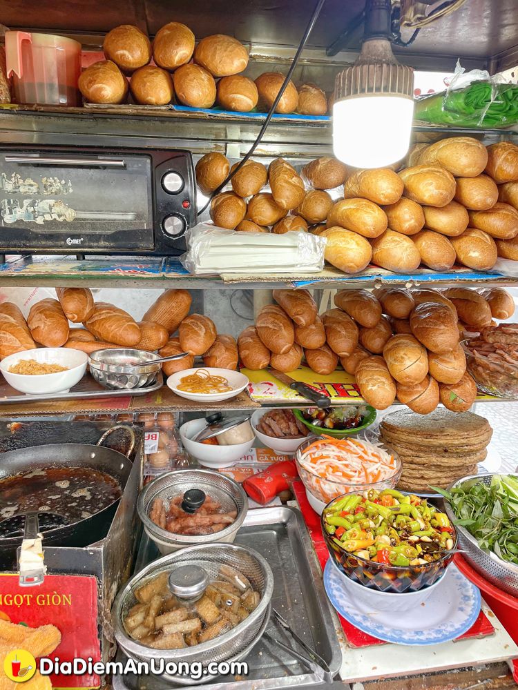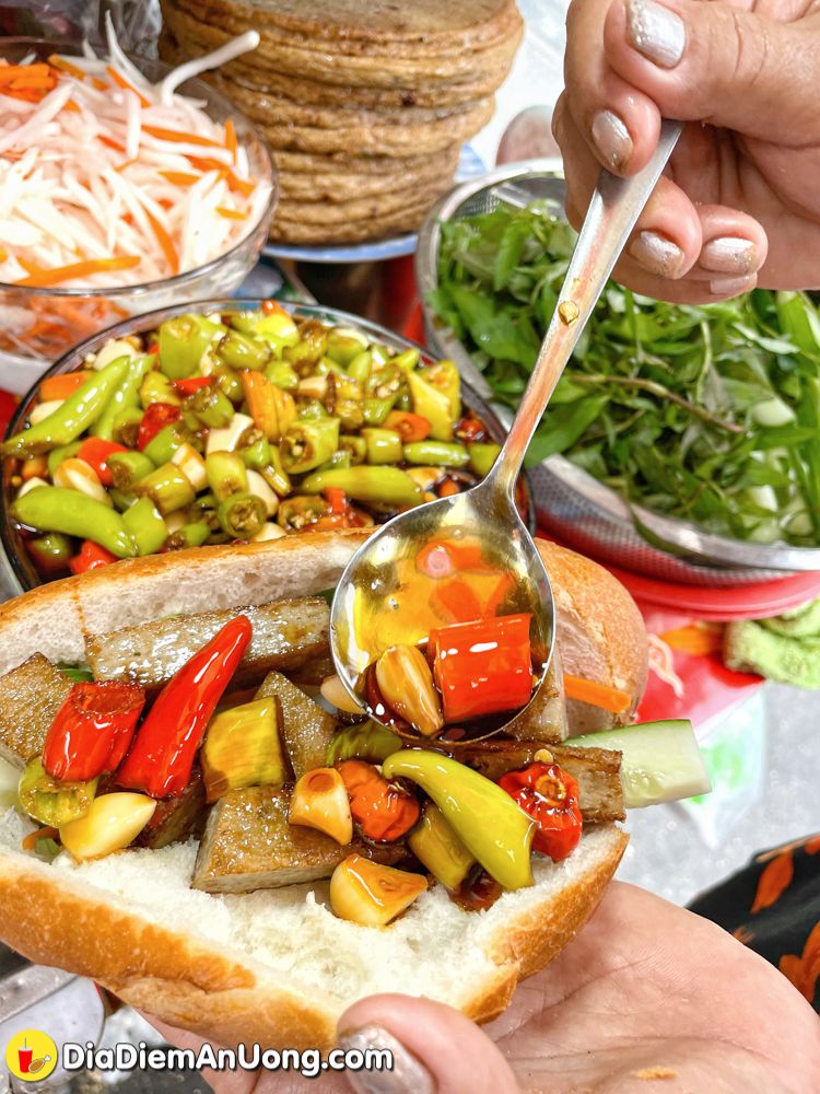 Bánh mì ở đây bán thâm niên cũng phài gần 20 năm rồi ấy chứ, khách quen khá nhiều. Điểm thu hút và hấp dẫn nhất ở đây chắc chắn phải kể đến nước mắm tỏi ớt với những khoanh ớt nhìn là “rát lưỡi” nhưng lại mang đến hương vị đặc trưng, khó quên.