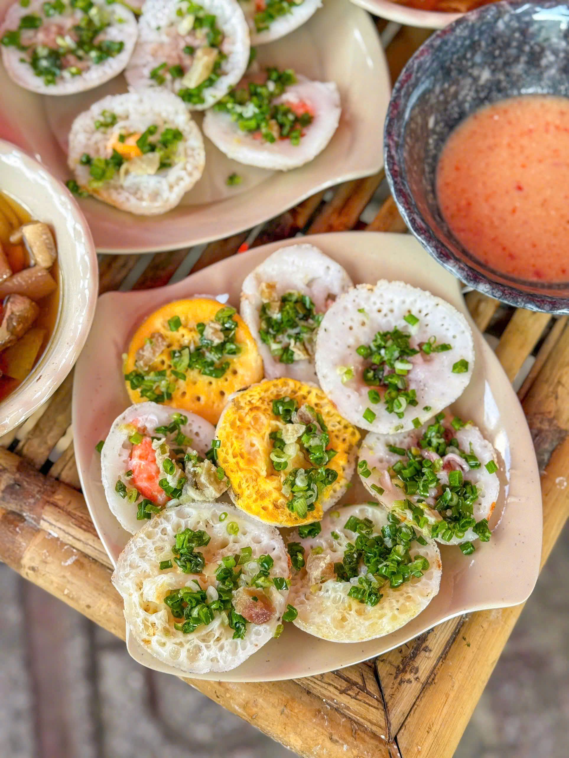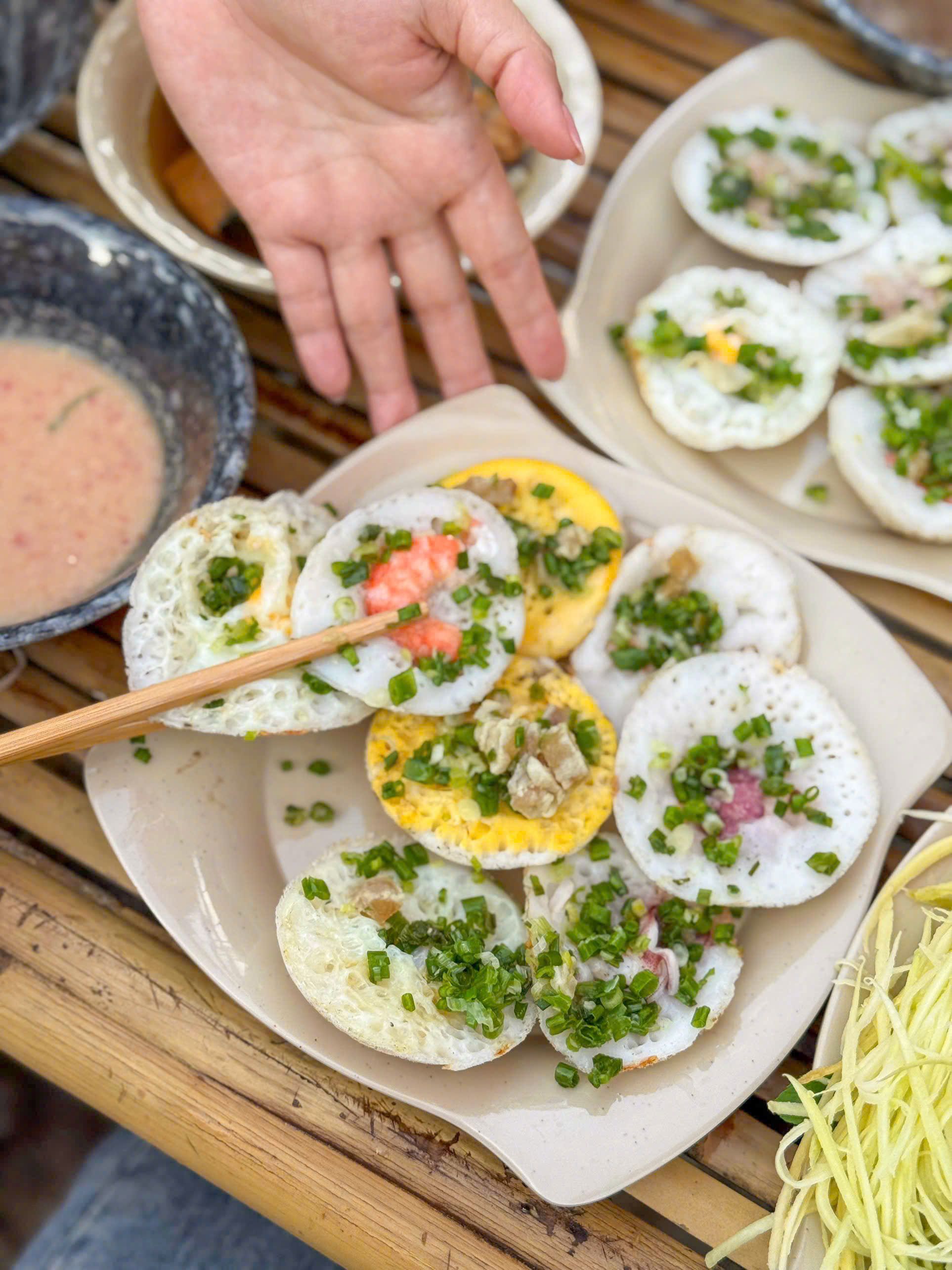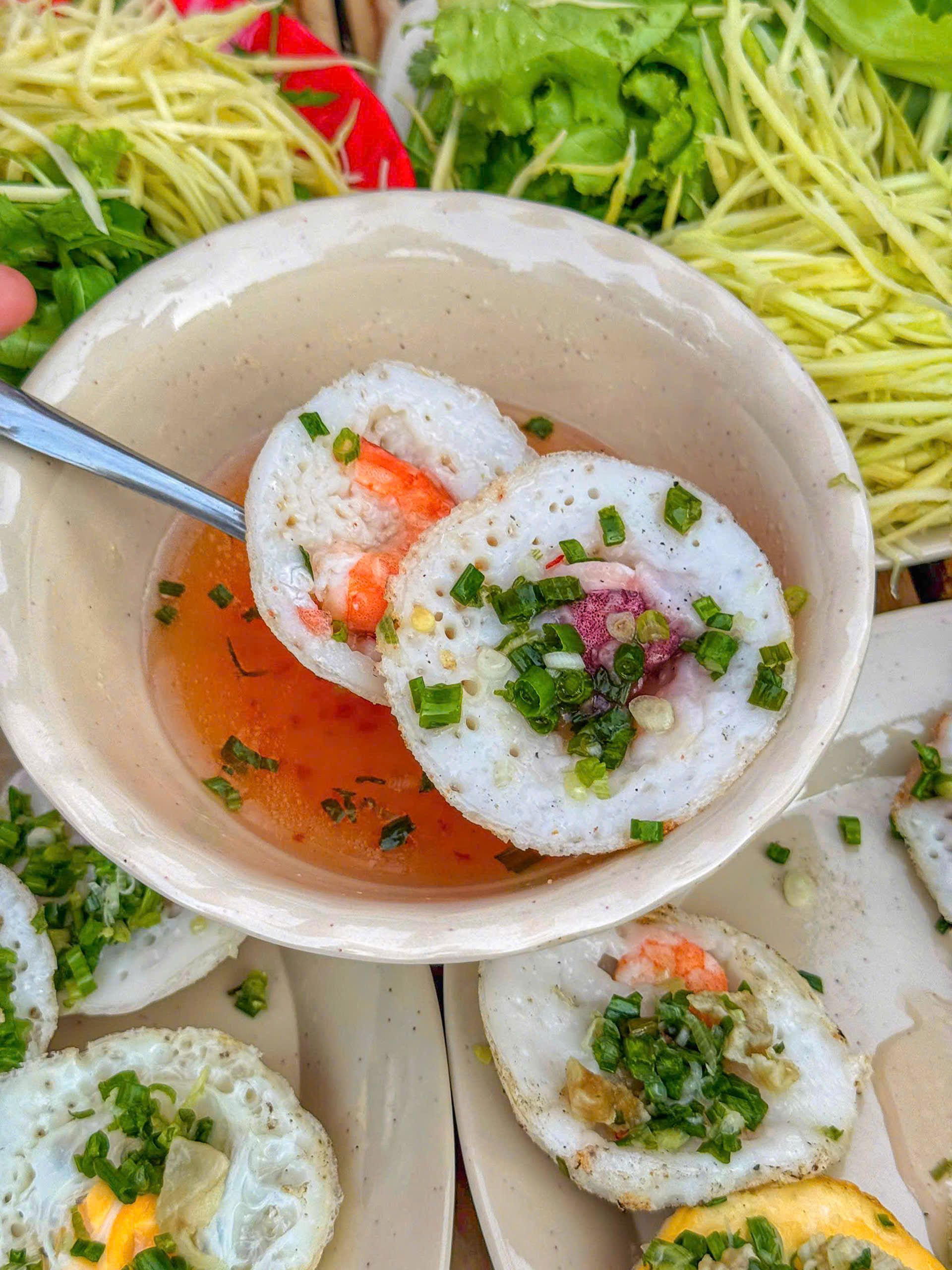 Bánh căn size nho nhỏ, bánh chín nở xốp ngon nha. Nhân tôm mực cũng tươi. Mình thích ăn bánh nhỏ vậy nè bánh căn bột vừa vừa dễ kẹp rau chấm ăn đỡ ngán.