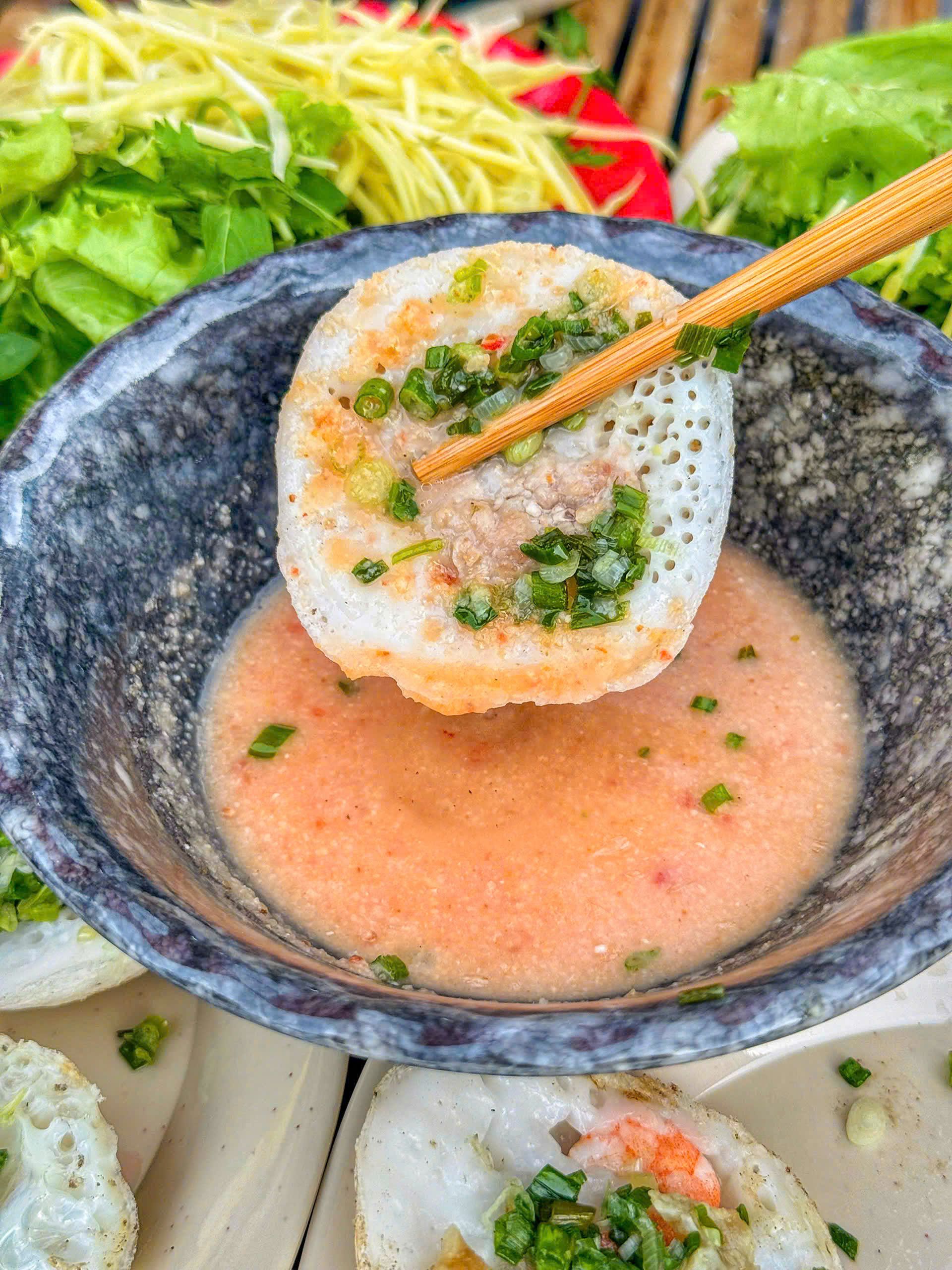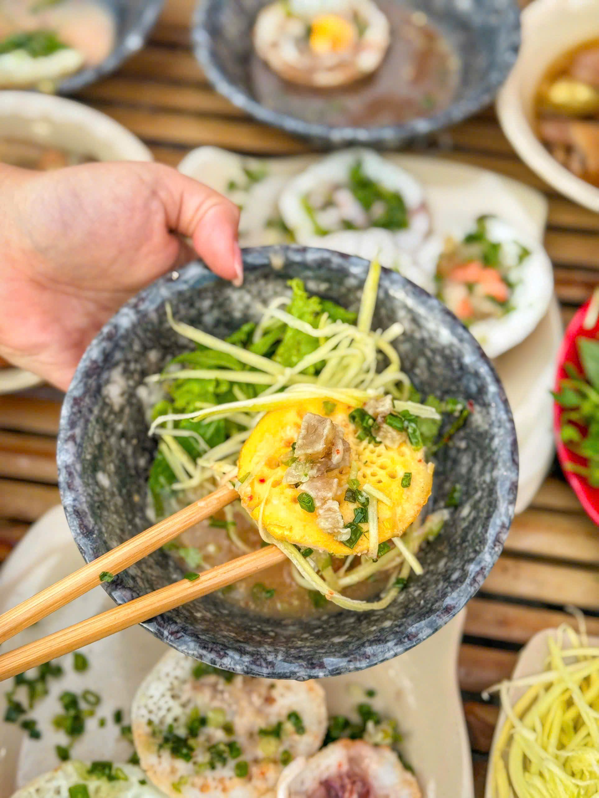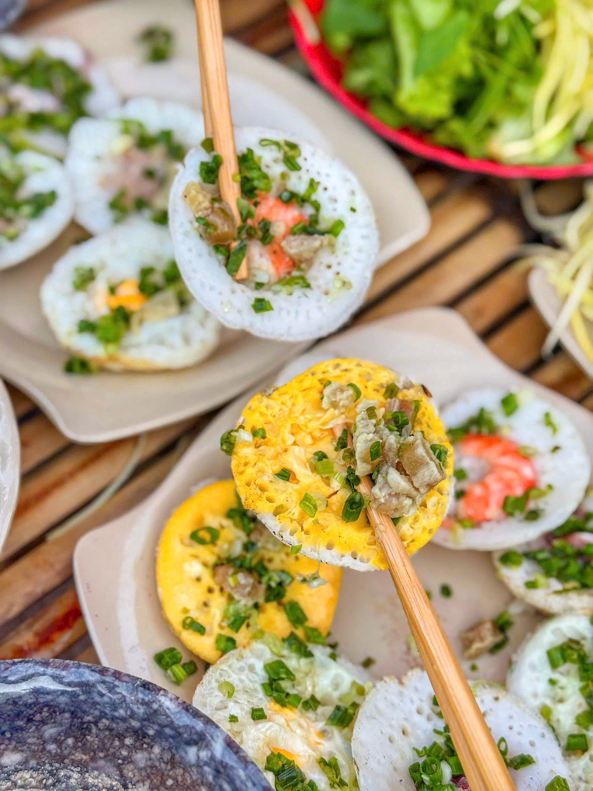 Bánh căn size nho nhỏ, bánh chín nở xốp ngon nha. Nhân tôm mực cũng tươi. Mình thích ăn bánh nhỏ vậy nè bánh căn bột vừa vừa dễ kẹp rau chấm ăn đỡ ngán.