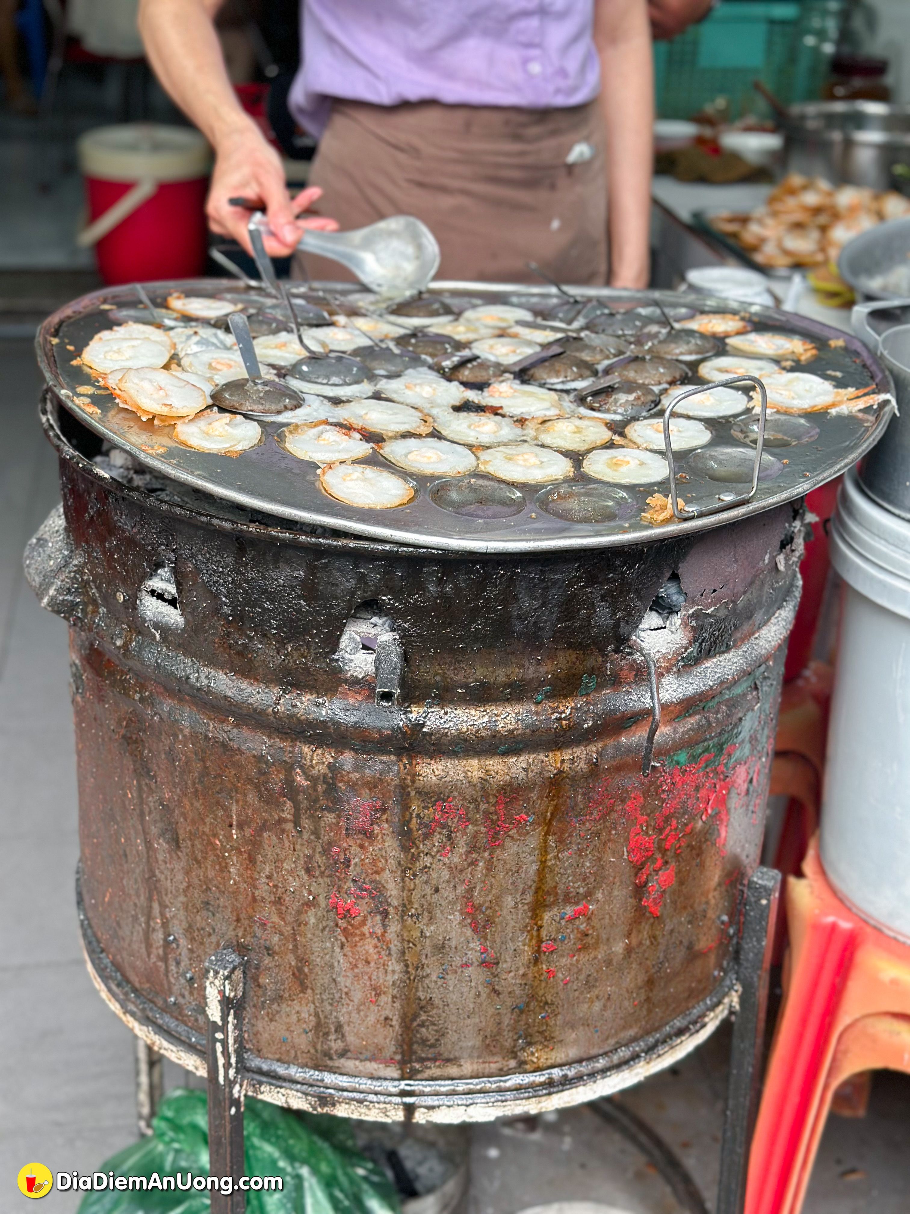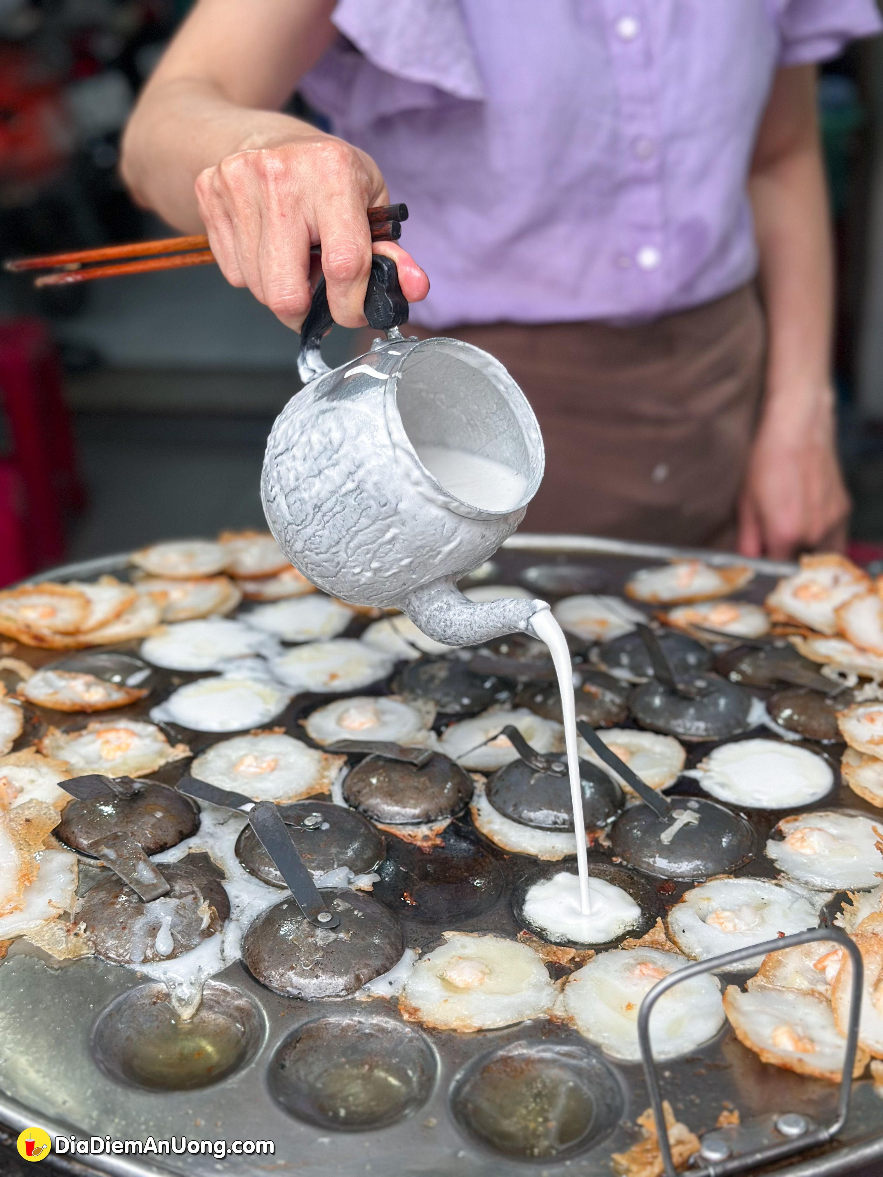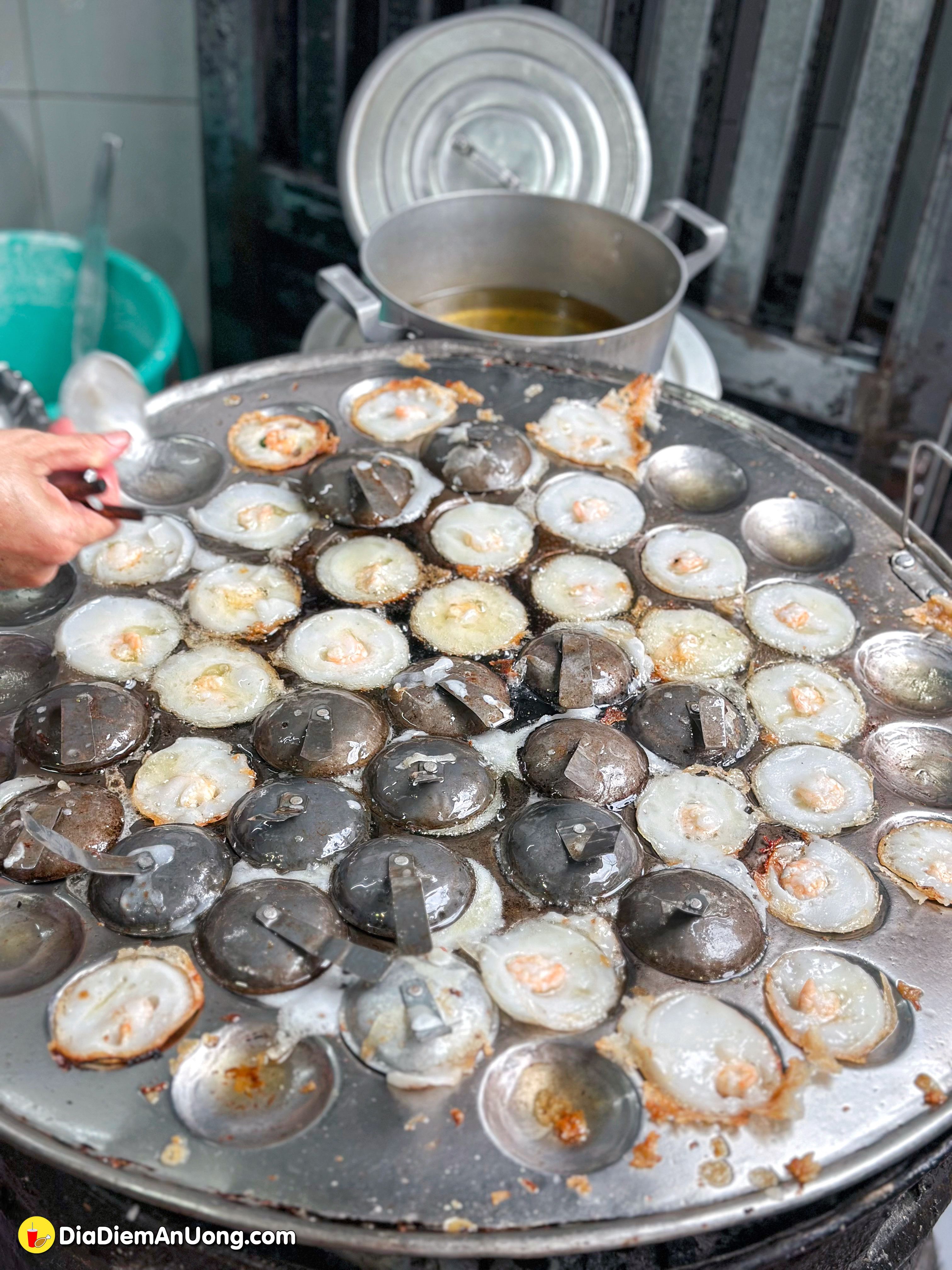 Ở đây vẫn đổ bánh bằng bếp than truyền thống, sử dụng rất ít dầu nên bánh khi ăn không có cảm giác tứa dầu hay gắt dầu khó chịu. Khi ăn lớp vỏ ngoài giòn tan mà bên trong vẫn mềm dẻo, béo nhẹ vị nước cốt dừa.