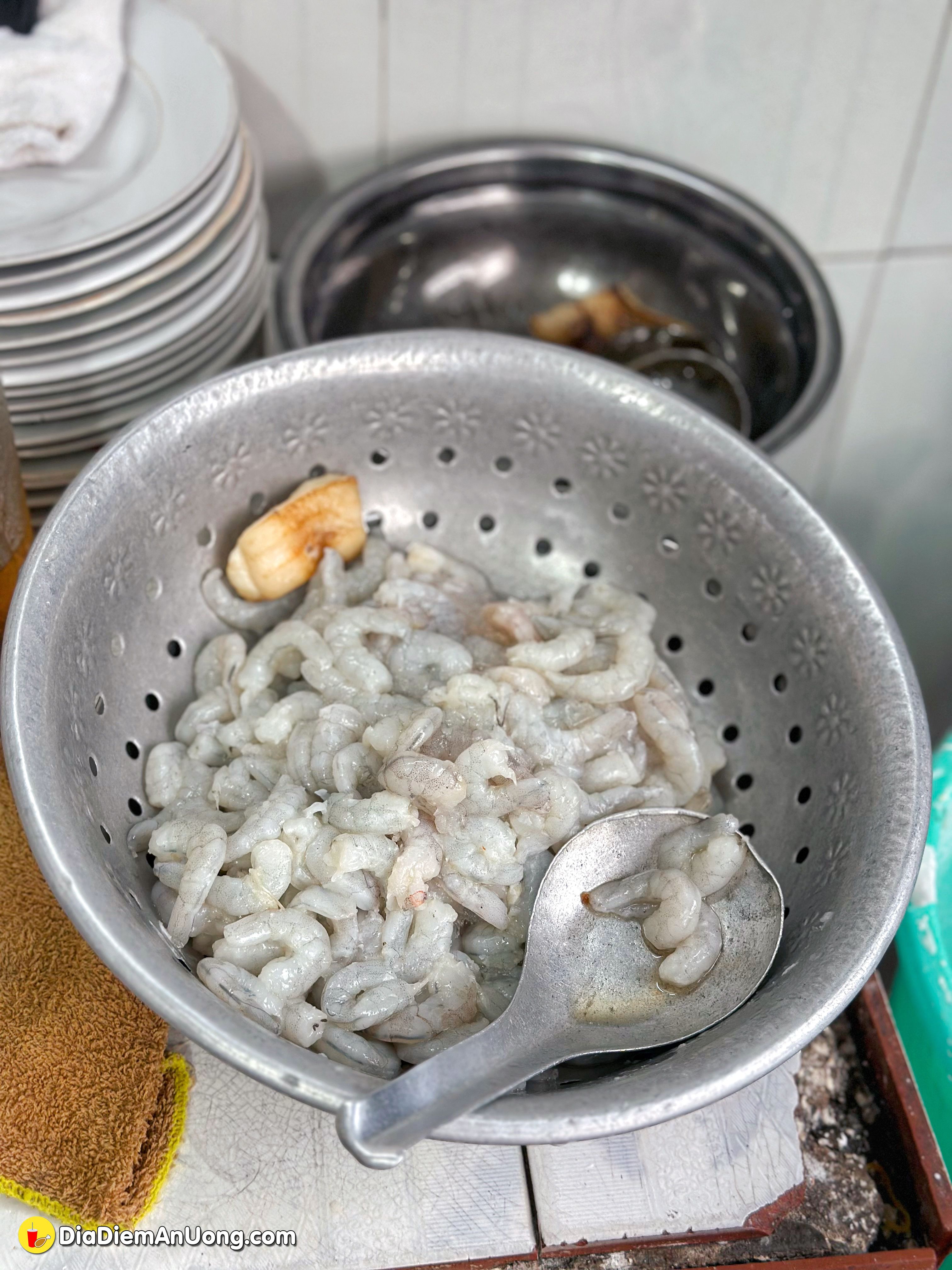 Điểm "độc quyền" nữa là quán chỉ có DUY NHẤT một loại nhân là nhân tôm. Tôm tươi rói được bóc vỏ, làm sạch, rồi đặt khéo léo vào giữa chiếc bánh. Khi bánh chín, con tôm đỏ au nổi bật trên nền bánh trắng ngà, nhìn rất hấp dẫn.