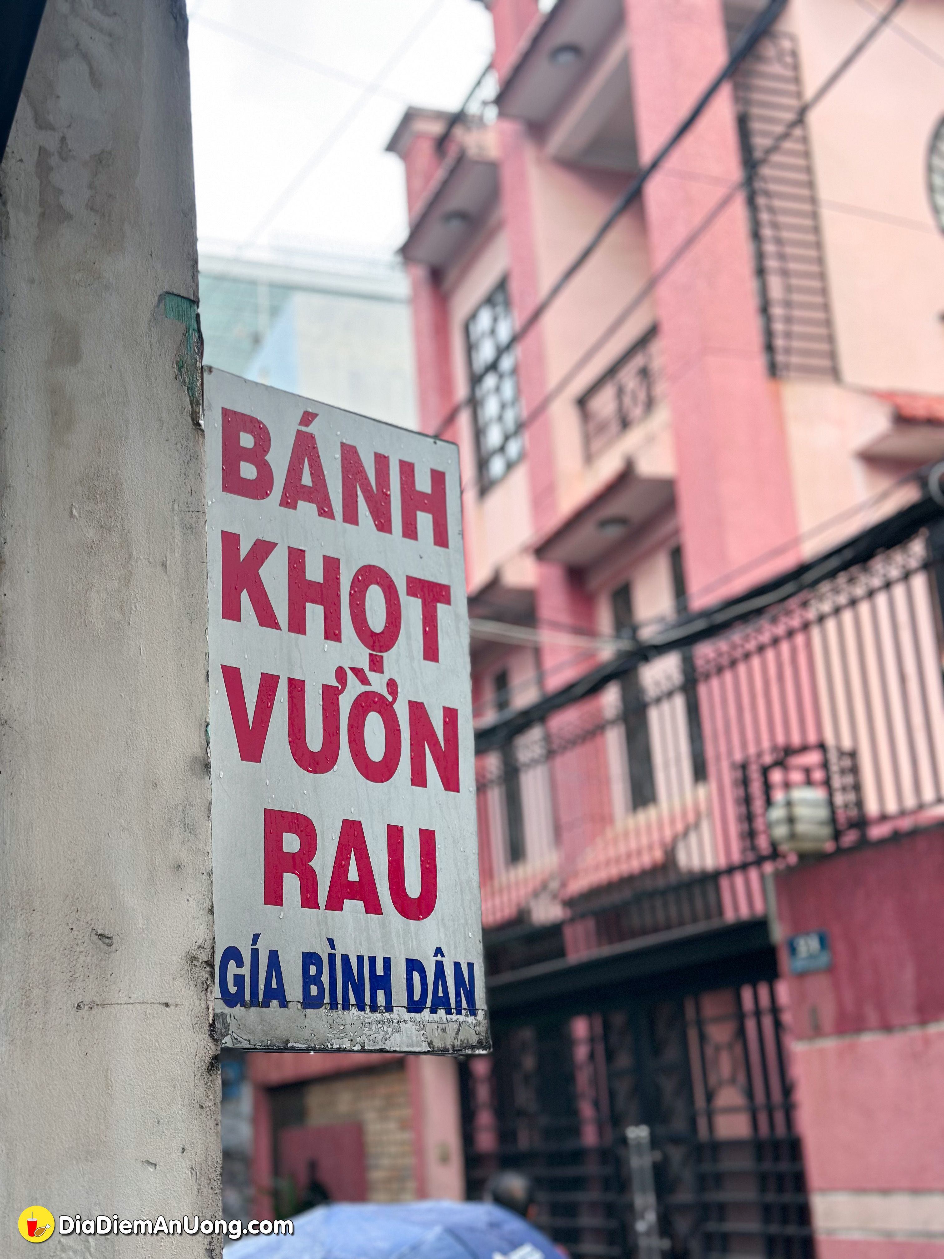 Bánh khọt Vườn Rau ăn kèm với đủ loại rau sống tươi xanh mơn mởn như xà lách, cải xanh, rau thơm... Đặc biệt, không thể thiếu chén nước mắm chua ngọt được pha chế theo công thức riêng của quán. Nước mắm có vị chua, cay, mặn, ngọt hài hòa, thêm chút ớt băm và đồ chua, chấm miếng bánh khọt vào là chuẩn vị luôn!