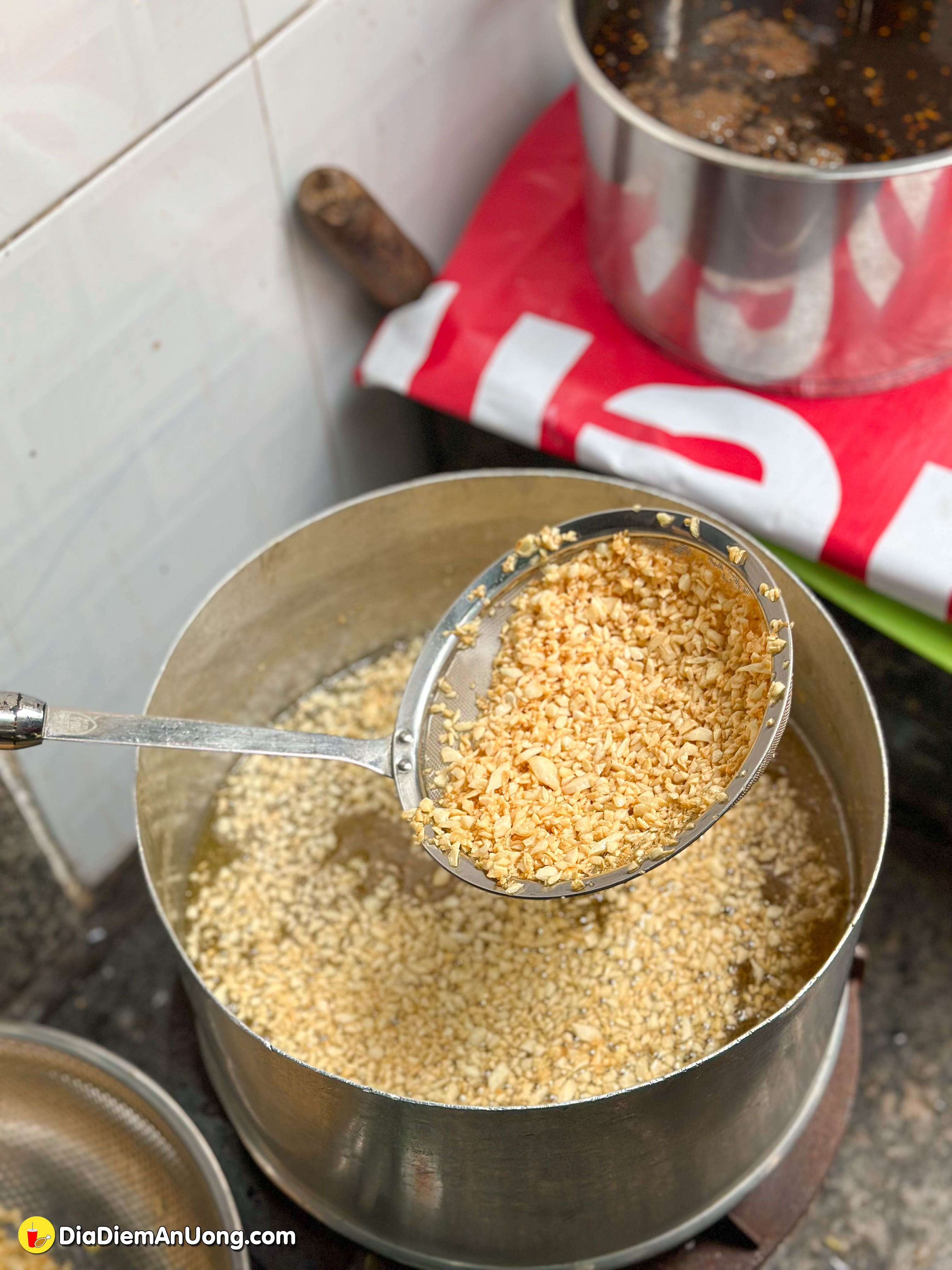 Bà phi tỏi nhà nên tỏi ăn thơm giòn không bị gắt dầu rất ngon, nhưng làm dân tình ghiền thì lại là nước bò được bà nêm nếm vừa vị khi trộn với bánh tráng hòa quyện ăn thích lắm.