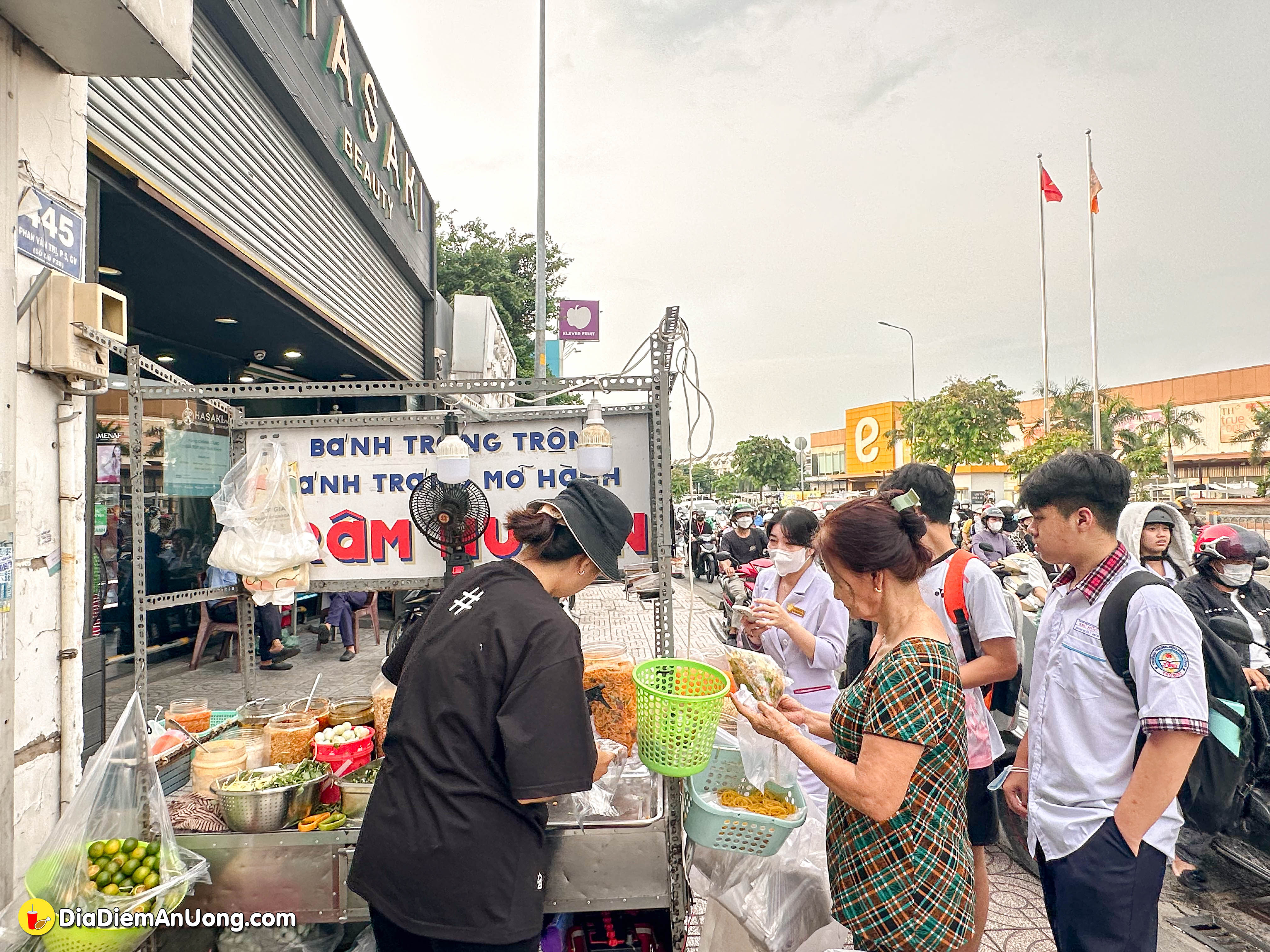 Tín đồ mê bánh tráng trộn cay "tê tái" thì ghé ủng hộ xe bánh tráng của bà ngoại trên vỉa hè Phan Văn Trị nha. Phần sa tế tỏi được làm rất chất lượng, với vị cay nồng đặc trưng.