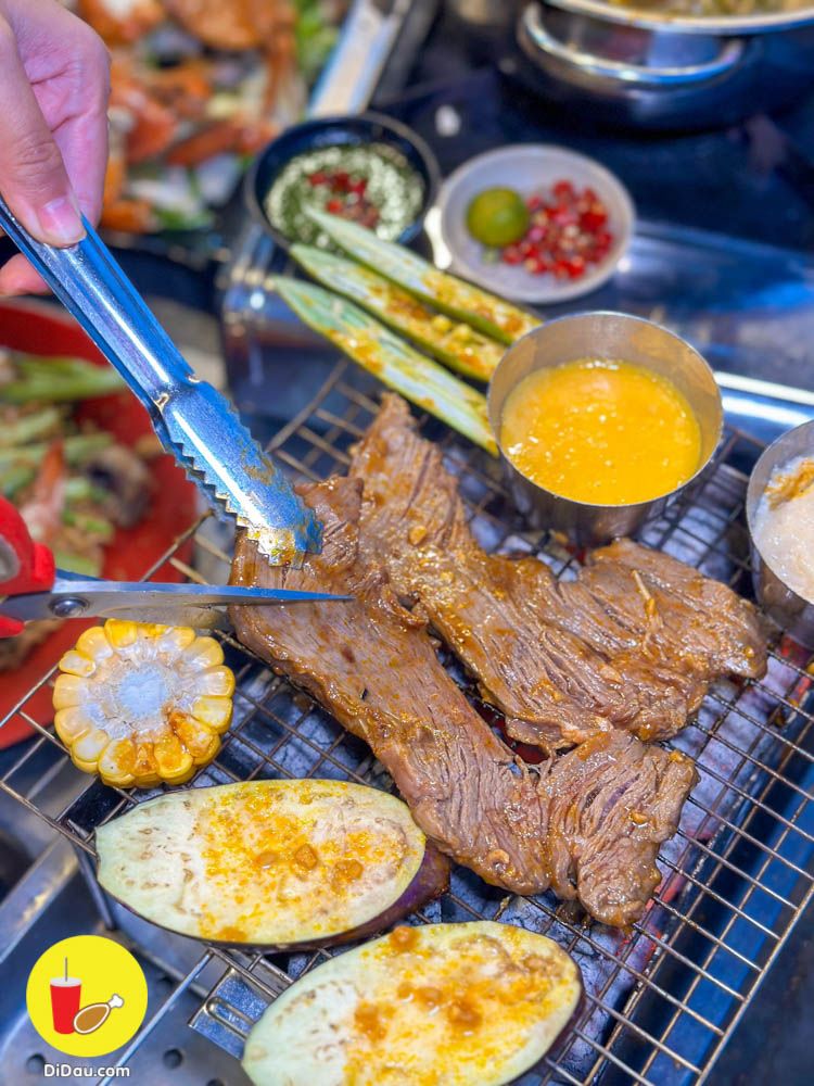 Có món bò tảng nướng chấm sốt phô mai, trứng muối cũng nhiều bạn ưa thích lắm.
