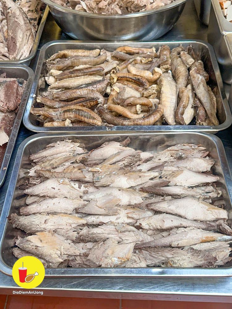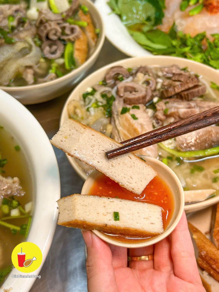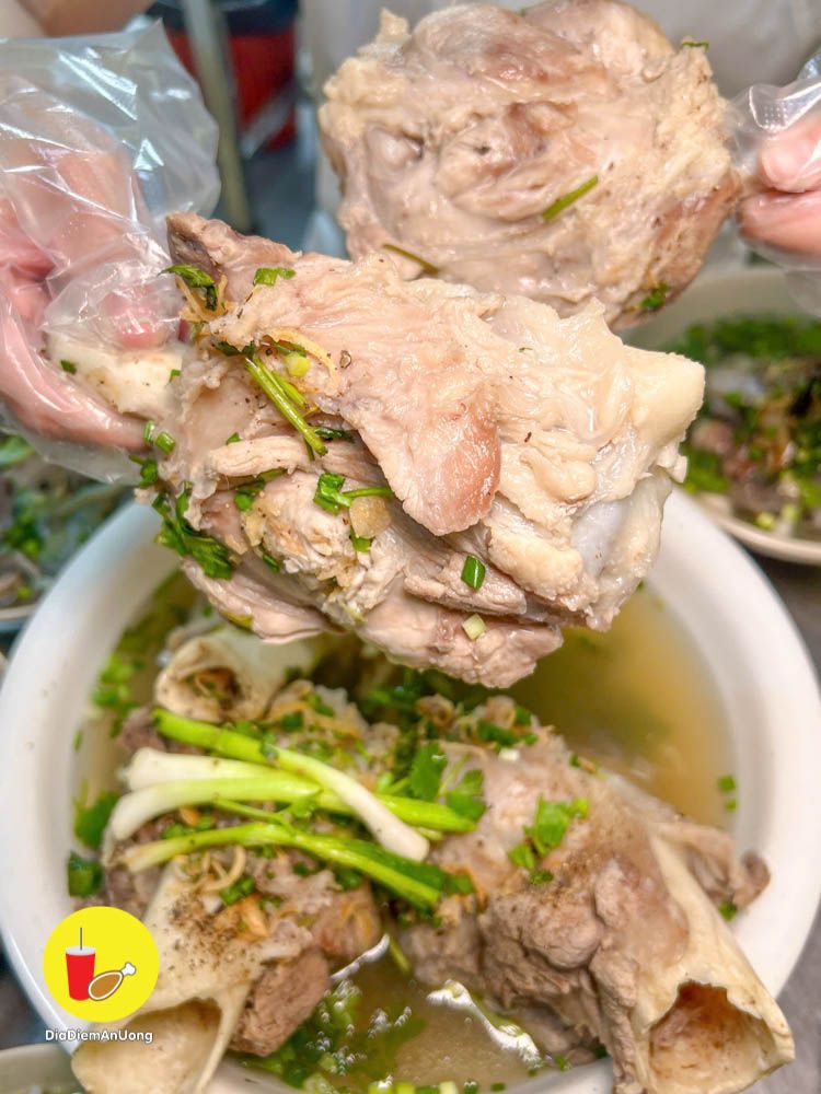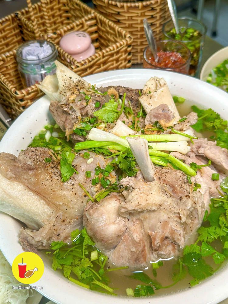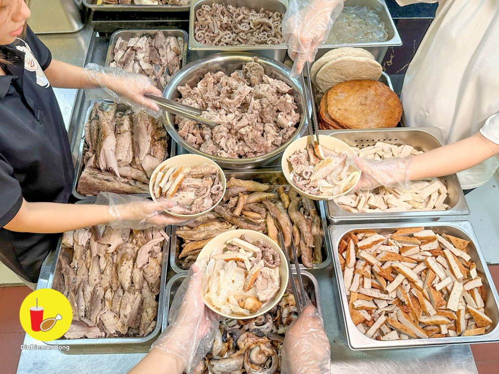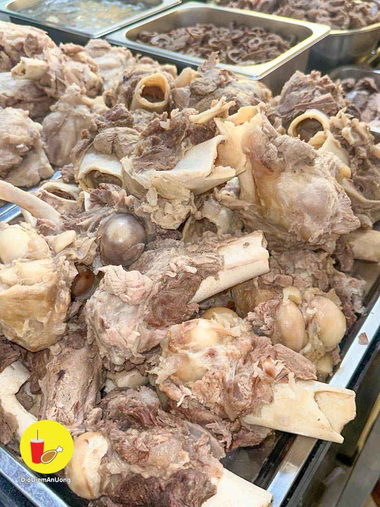 Thịt quán hầm mềm, thơm, ăn vào là biết thịt nóng chứ không phải hàng đông lạnh. Chấm kèm với nước chấm quán pha mặn mặn ngọt ngọt the the ăn ngon á.