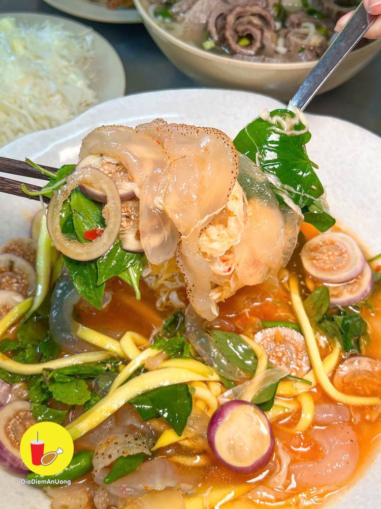 Ai thích ăn sứa thì order một phần Gỏi sứa - 69K, quán trộn cũng đậm đà chua cay ăn dính cực. Một phần siêu to, sứa miếng nào cũng to và dày, trộn với sốt chua cay, đậm đà ta nói ăn siêu cuốn.