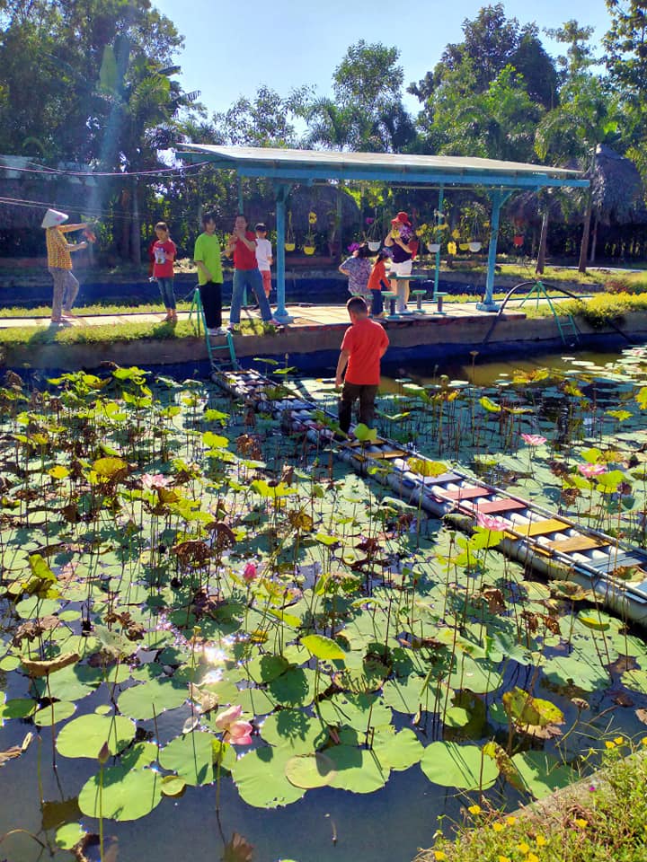 Chưa hết bạn có thể tham gia trải nghiệm hoạt động thú vị như chèo thuyền thúng, câu cá, thu hoạch trái cây, hái sen ngay tại vườn.