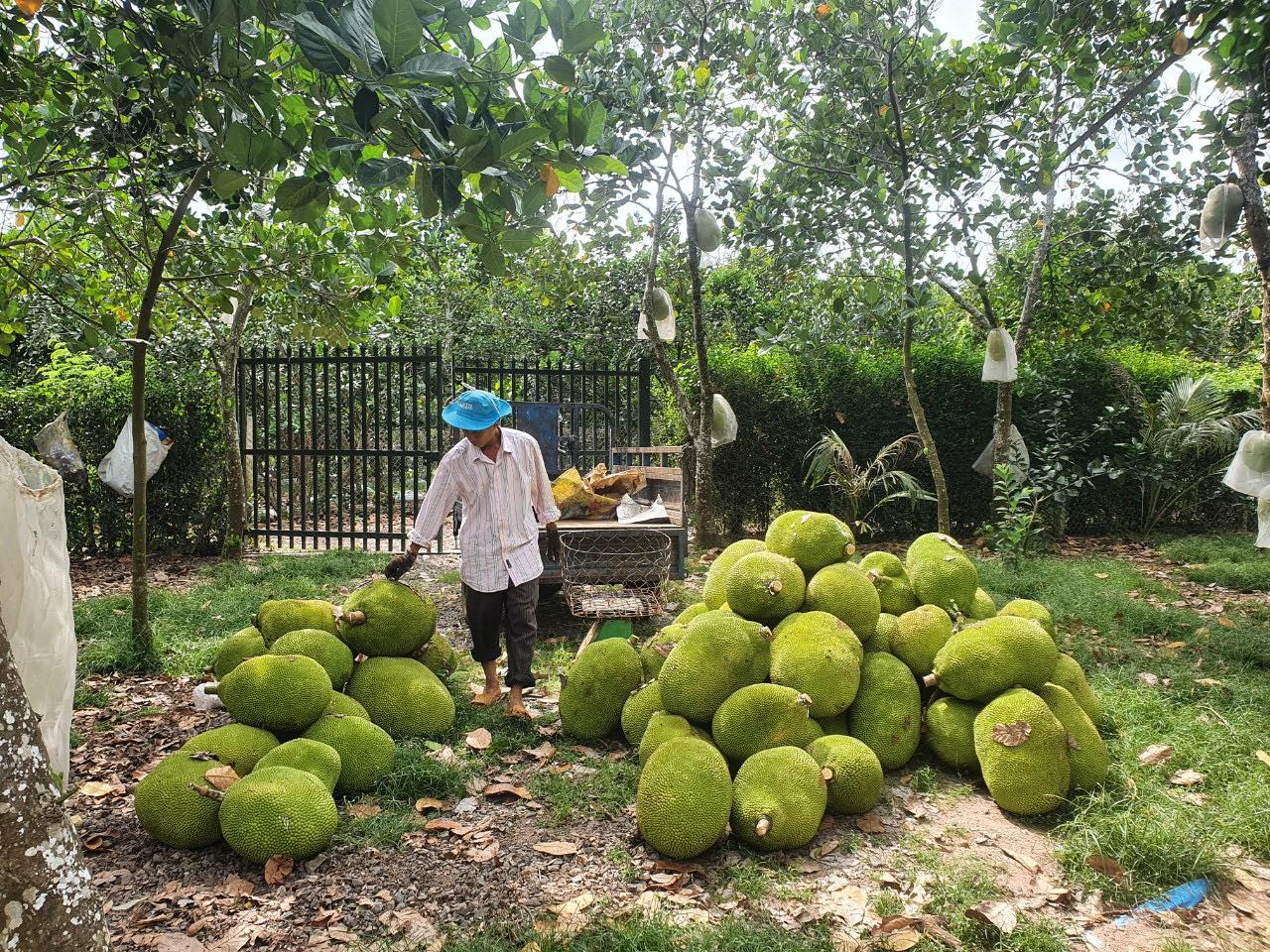 Nhiều người ví von vựa trái cây Dì 2 như một vườn sinh thái vậy bởi không gian vườn vô cùng rộng lớn với đa dạng các loại trái cây như: chôm chôm, nhãn, măng cụt, thanh long, còn có cả sầu riêng, mít, bòn bon.
