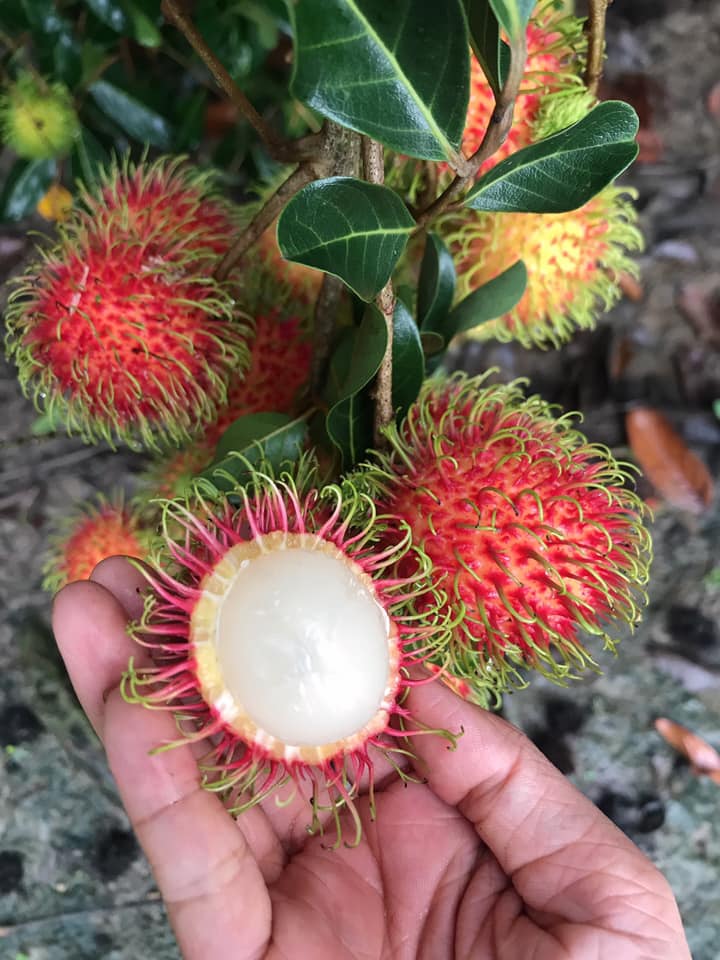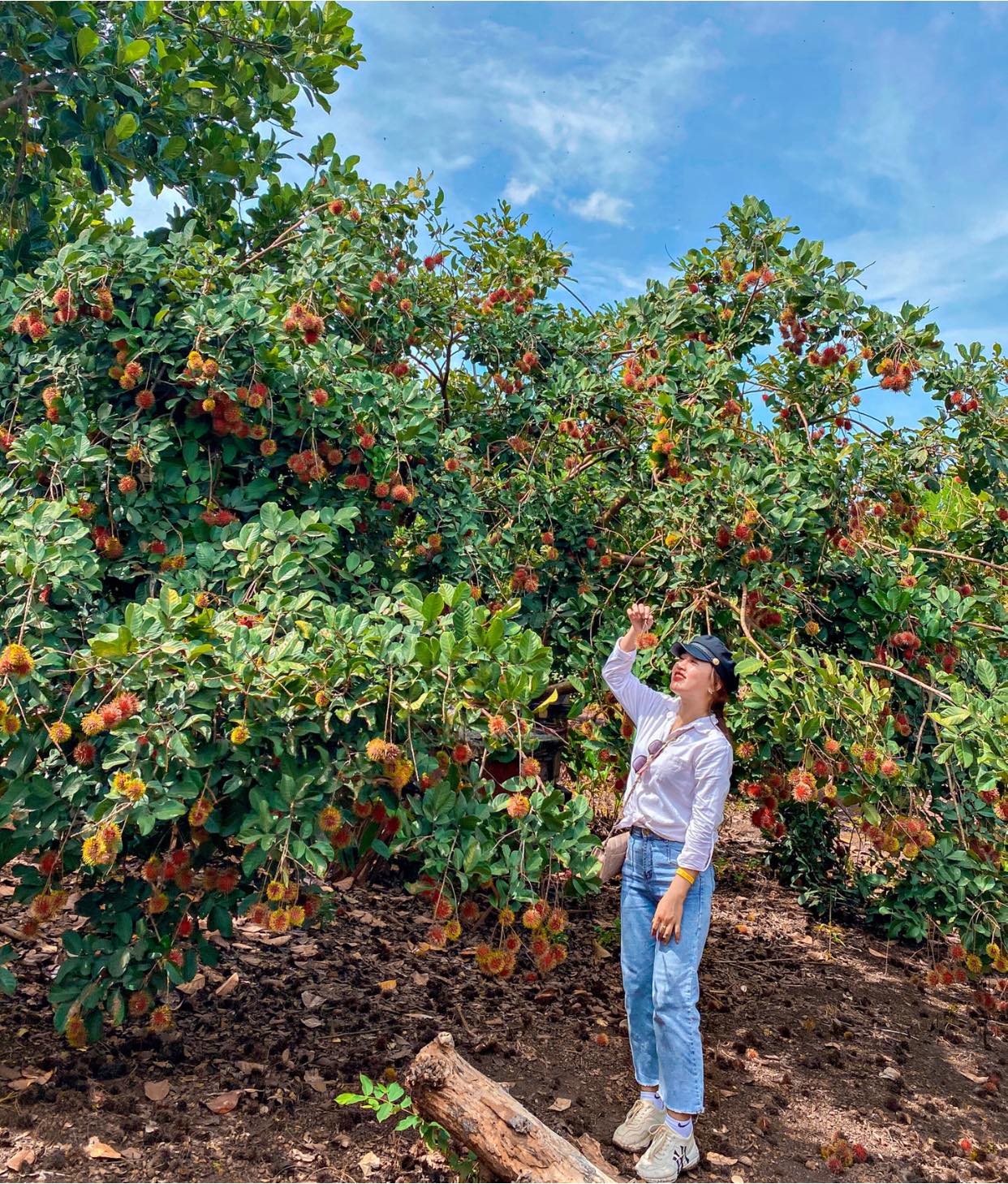 Vườn có đa dạng các loại trái cây như quýt, cam, bưởi, sầu riêng, sầu riêng. Nhất là chôm chôm chín đỏ sai trĩu quả nhìn thích mê. Theo như kinh nghệm của các tín đồ ẩm thực đi trước chia sẻ, nếu đi nhóm đông bạn có thể mua bao cây, vừa ăn thỏa thích lại được mang về giá cả cũng khá hợp lý.