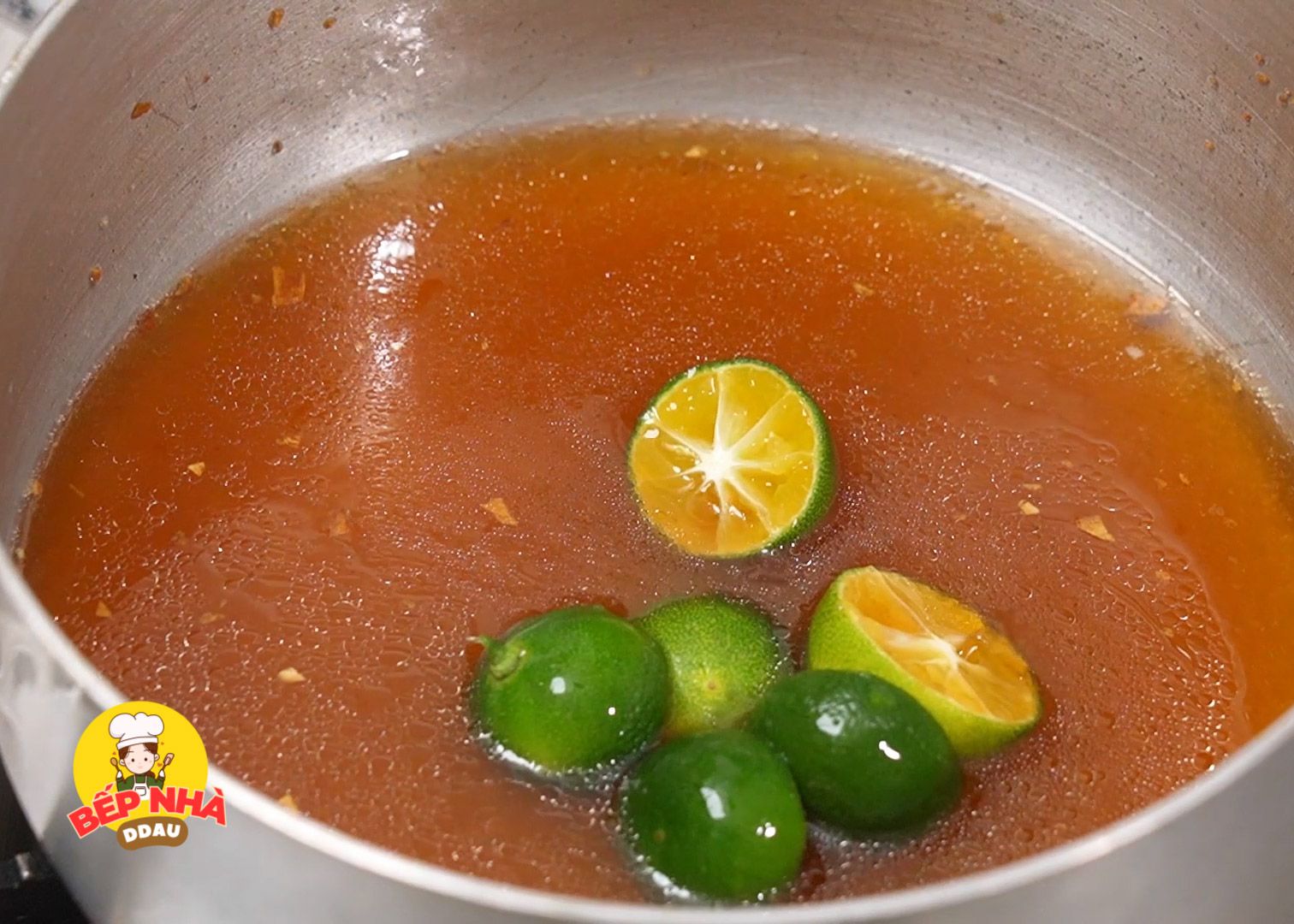 Để làm nước mắm trộn gỏi, đầu tiên các bạn phi vàng 10 tép tỏi băm nhuyễn rồi vớt phần tỏi ra để riêng trộn cùng gỏi ở bước cuối. Còn phần dầu tỏi trong nồi, các bạn tiếp tục cho vào 1/c chén nước mắm ngon, ½mcp bột ngọt, ⅔ chén đường vàng và 3 trái tắc cắt đôi bỏ hột. Chúng ta sẽ nấu lửa nhỏ trong khoảng 10 phút cho hỗn hợp thật tan đường và lưu ý là vớt bọt thường xuyên để nước mắm sau khi hoàn tất được trong và để được lâu. Sau đó sẽ để thật nguội và cất trong tủ lạnh để dùng dần trong khoảng 1-2 tháng.