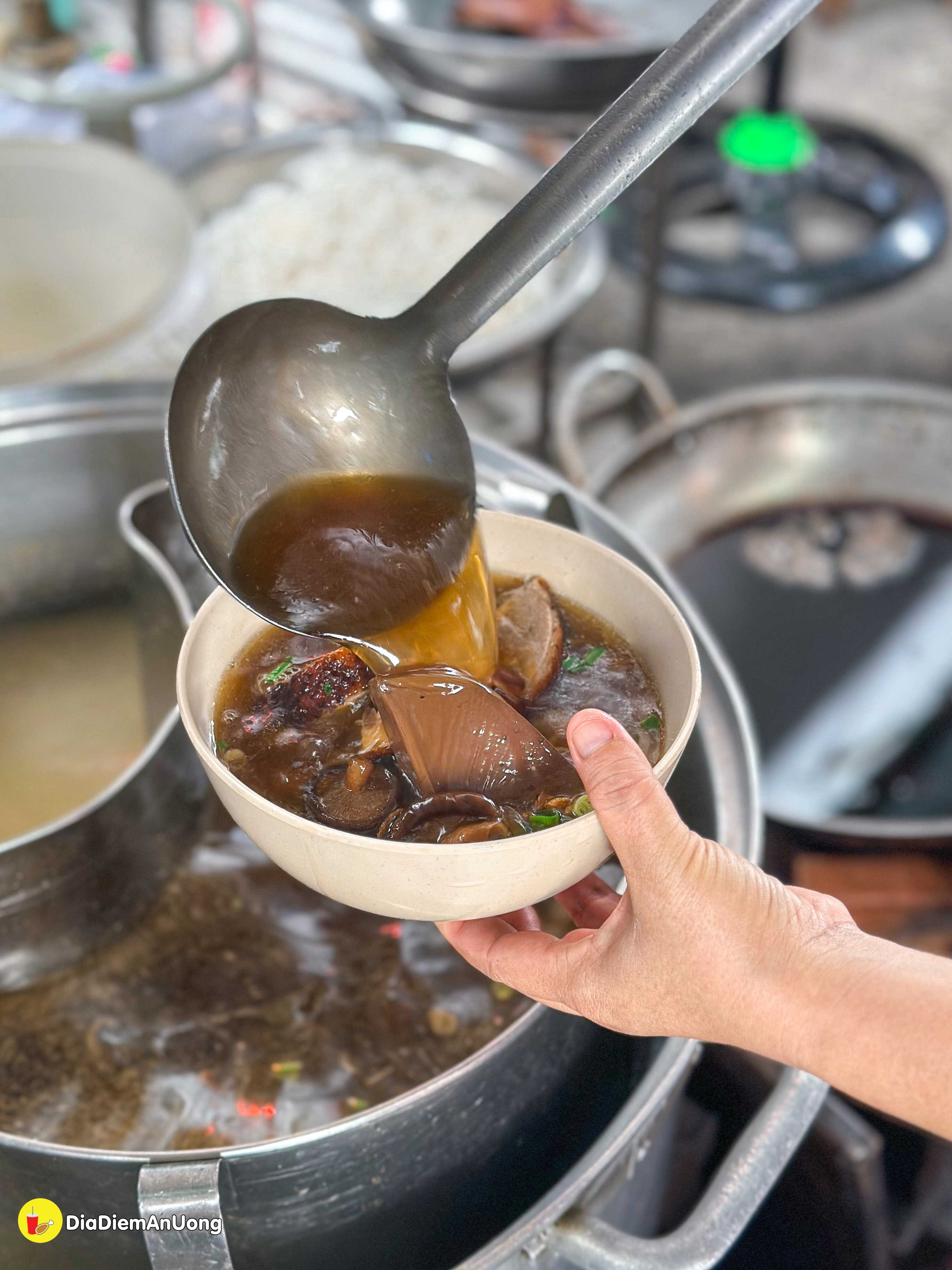 Nước lèo được nấu với xương ống cho ngọt nước, thêm gia vị tiềm đậm đà, thơm lừng. Mê nhất chắc là Nấm Đông Cô hầm với dầu hào, cắn vào mềm thơm đậm vị ngon dữ lắm.
