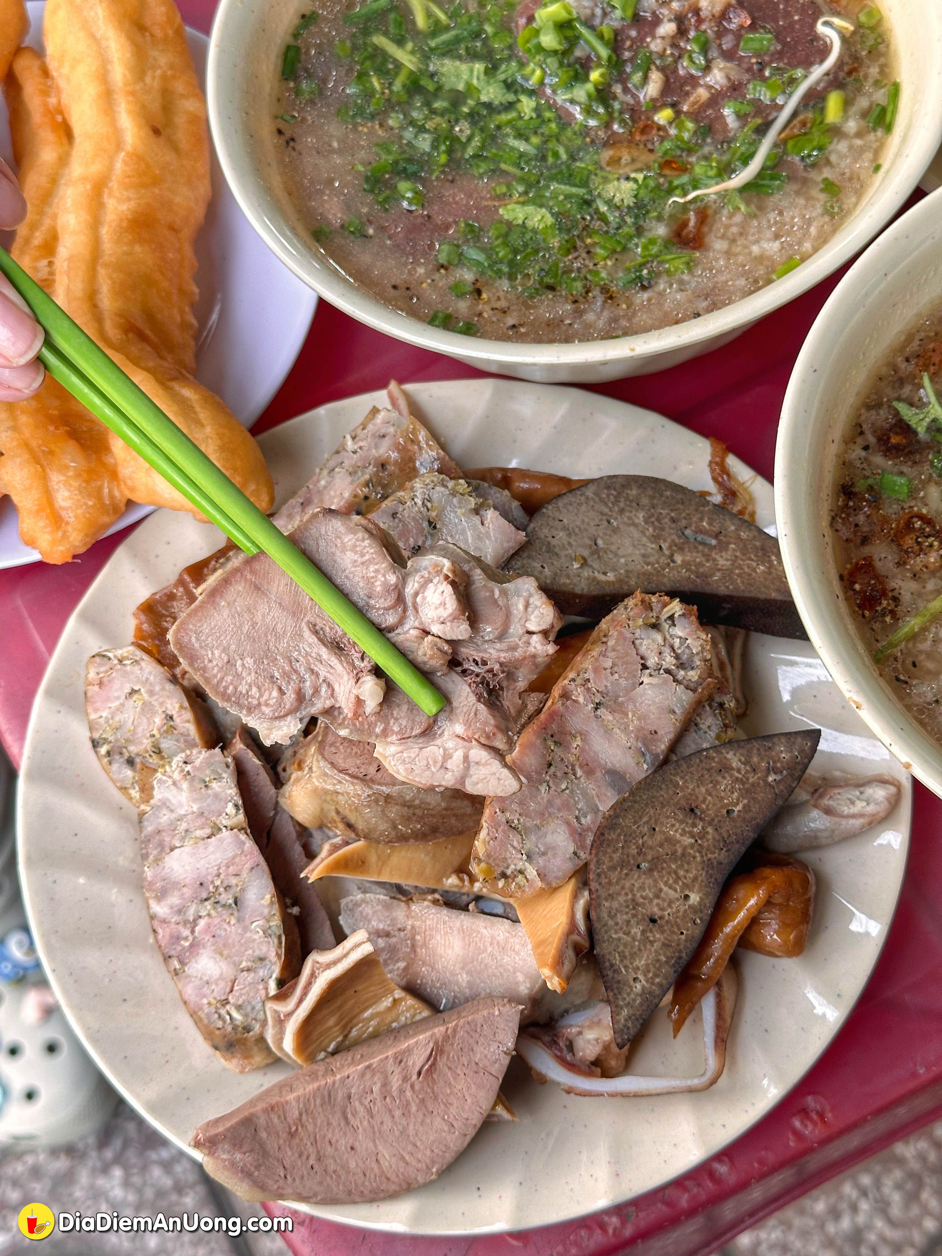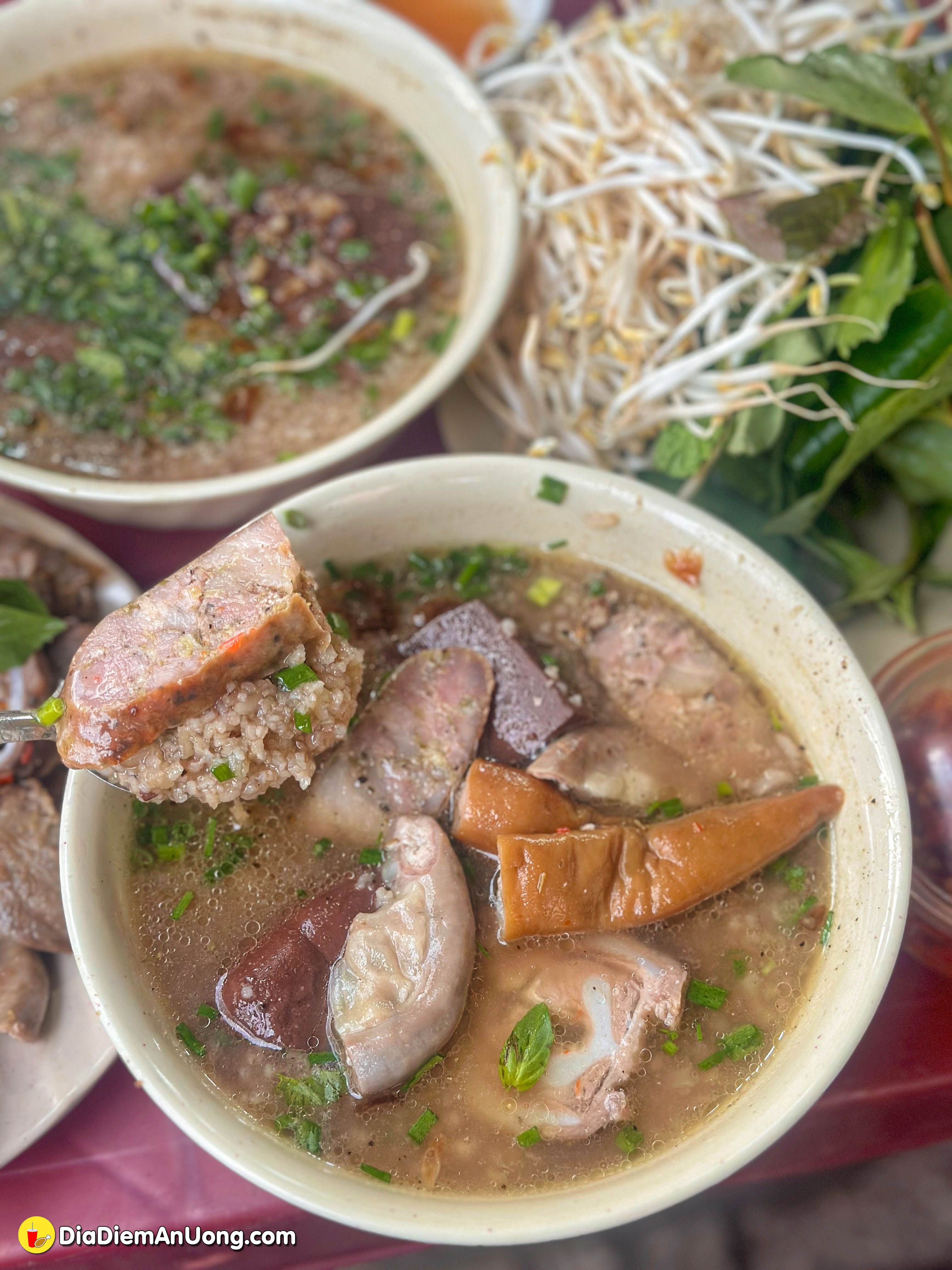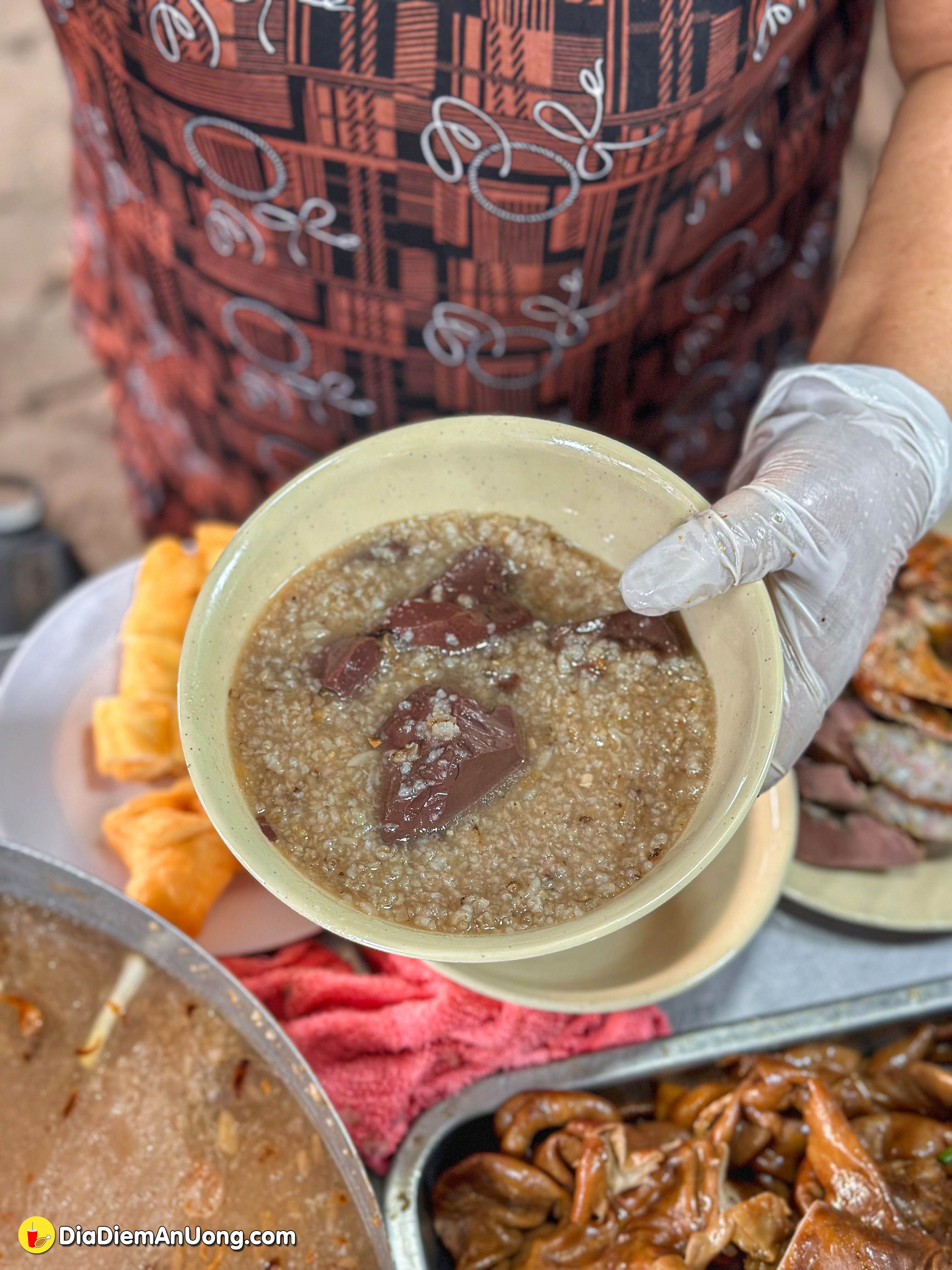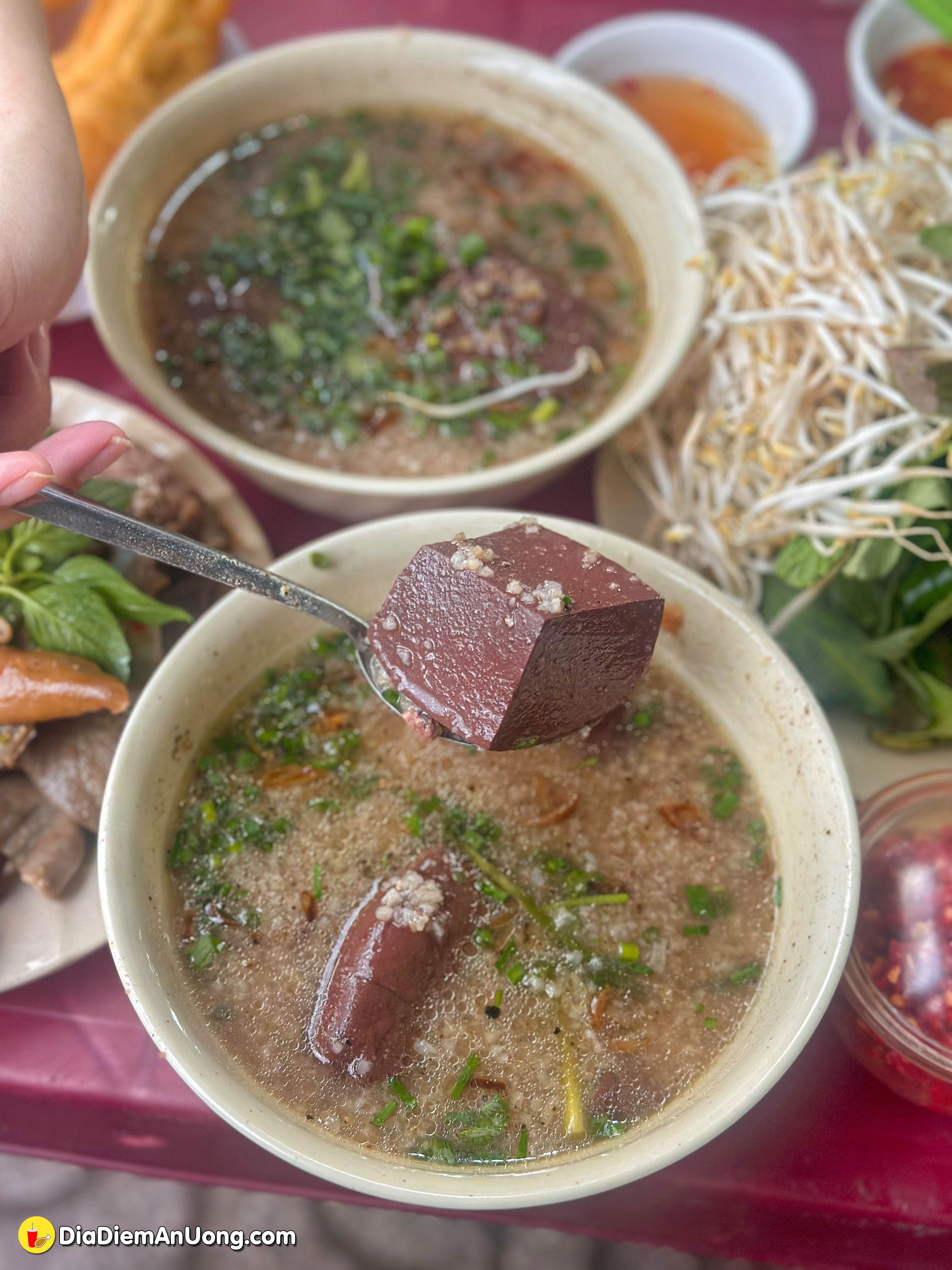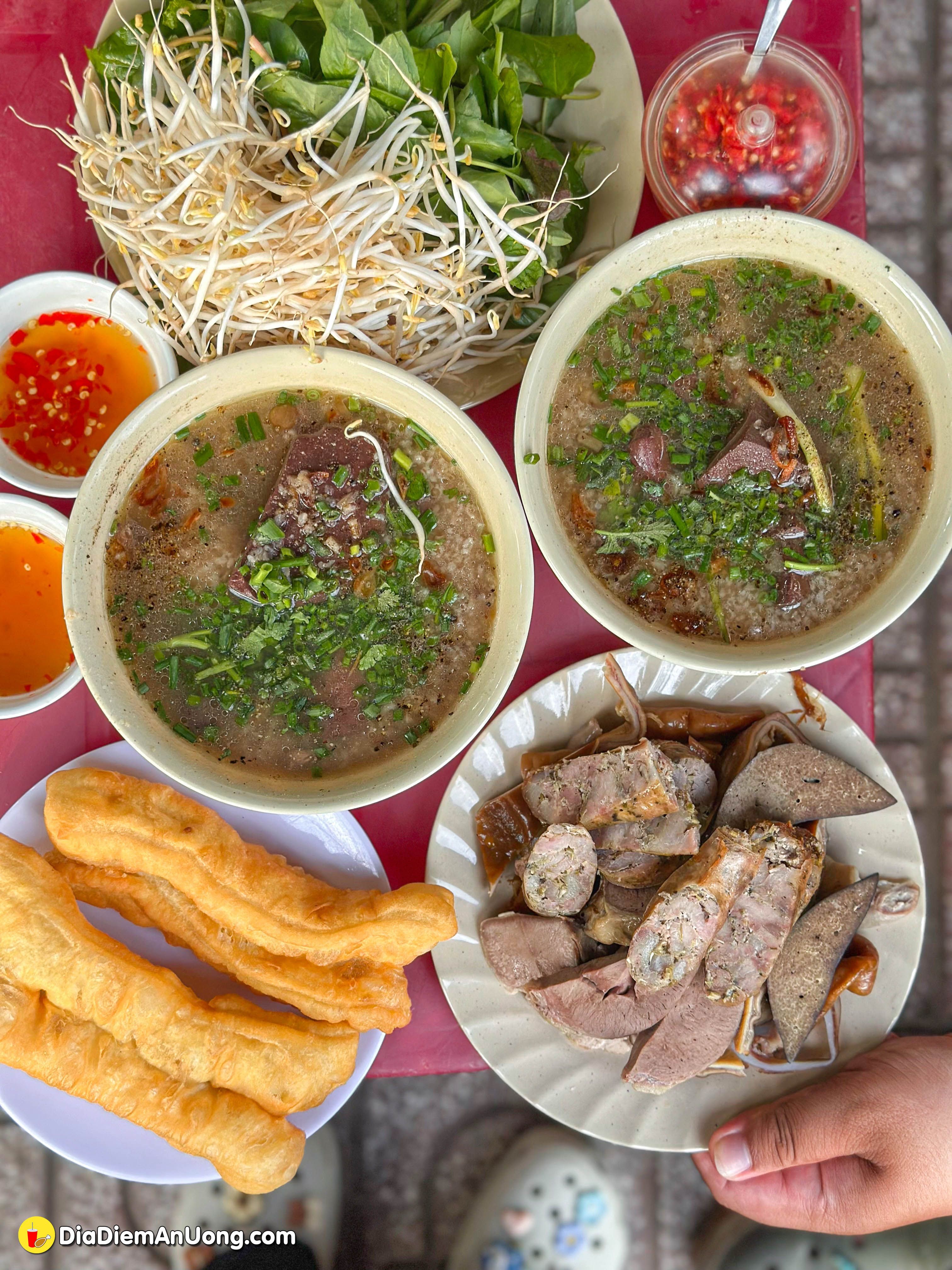 Mình gọi phần như hình là 150k, bao gồm đĩa lòng đầy ụ và 2 tô cháo huyết nóng hổi.