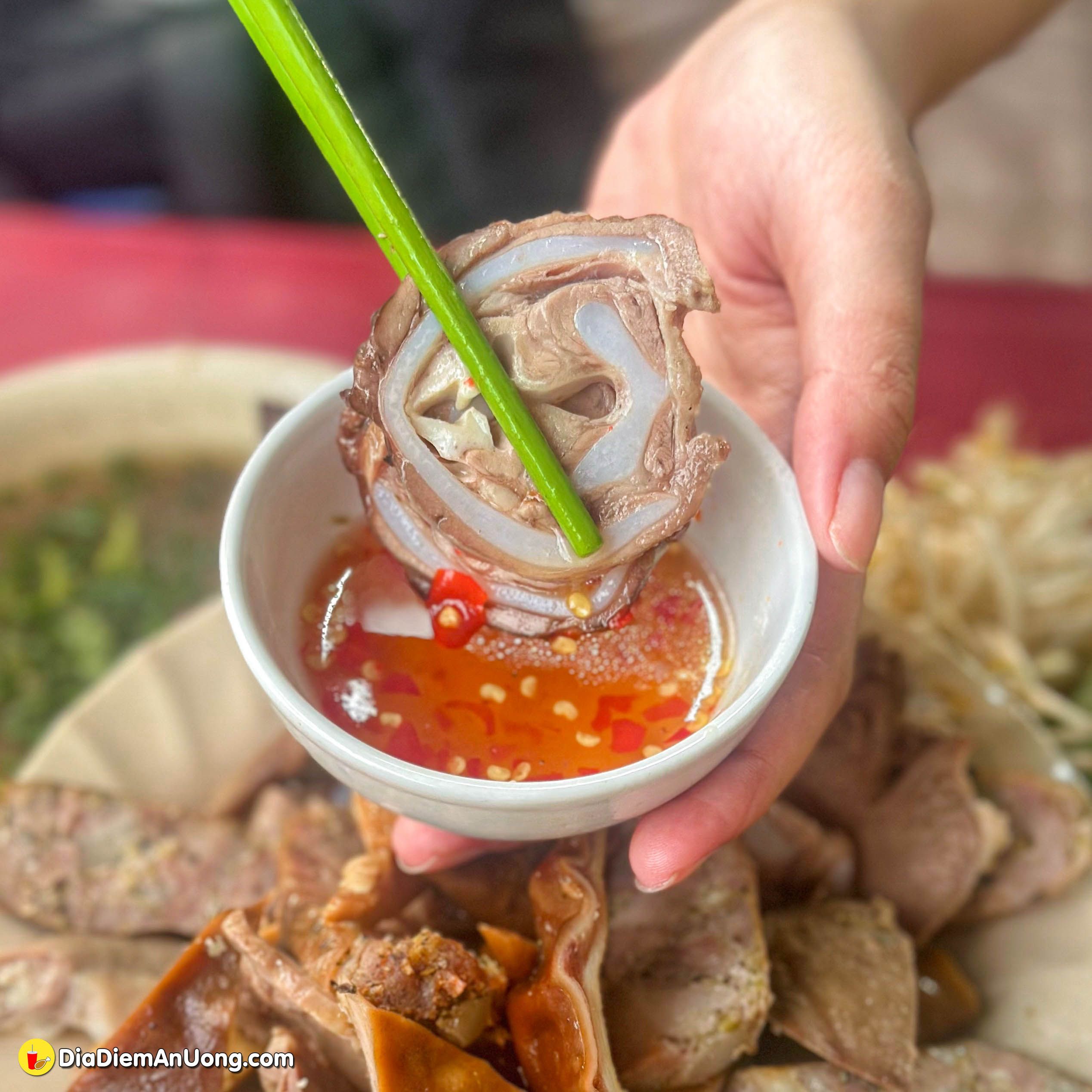 Lòng luộc ở đây được làm sạch sẽ, luộc chín tới nên vẫn giữ được độ giòn sần sật. Khi ăn, bạn sẽ cảm nhận được vị ngọt tự nhiên, không hề bị hôi. Chấm một miếng vào nước mắm gừng chua ngọt, vị ngon cứ thế mà "bùng nổ" trong miệng.