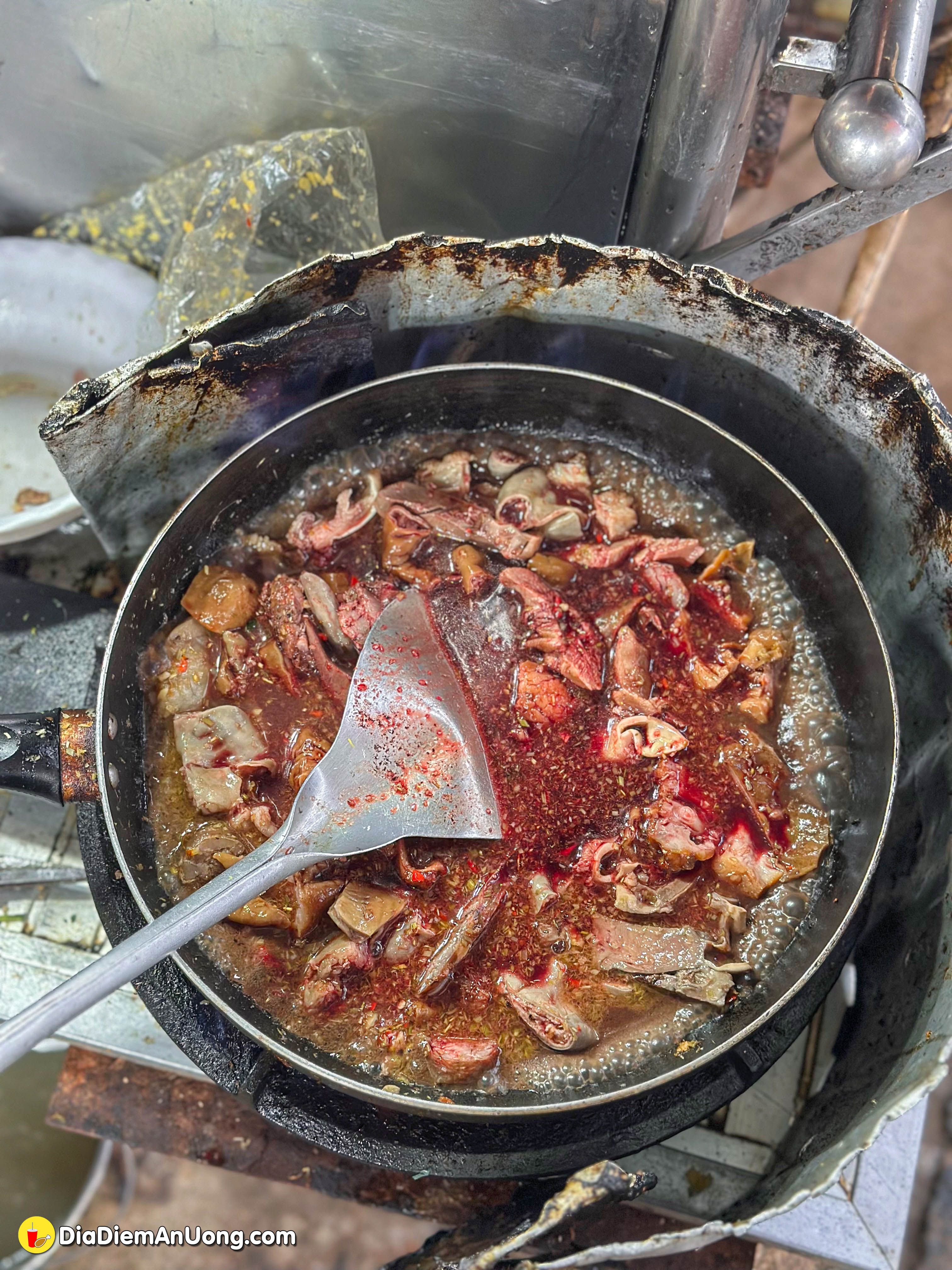Quán còn "chiêu đãi" thực khách một món ăn vô cùng đặc biệt, thậm chí có thể nói là "hiếm có khó tìm": món lòng lanh. Mình cũng không biết tại sao gọi là lòng lanh, sau khi cho sả tỏi vào phi thơm thì cô sẽ cho lòng vào xào dậy mùi ra cho thêm chén tiết sống vào xào cho đến khi nước tiết rút, sệt lại. Nghe nói đây là mồi bén của dân “nhâm nhi”.