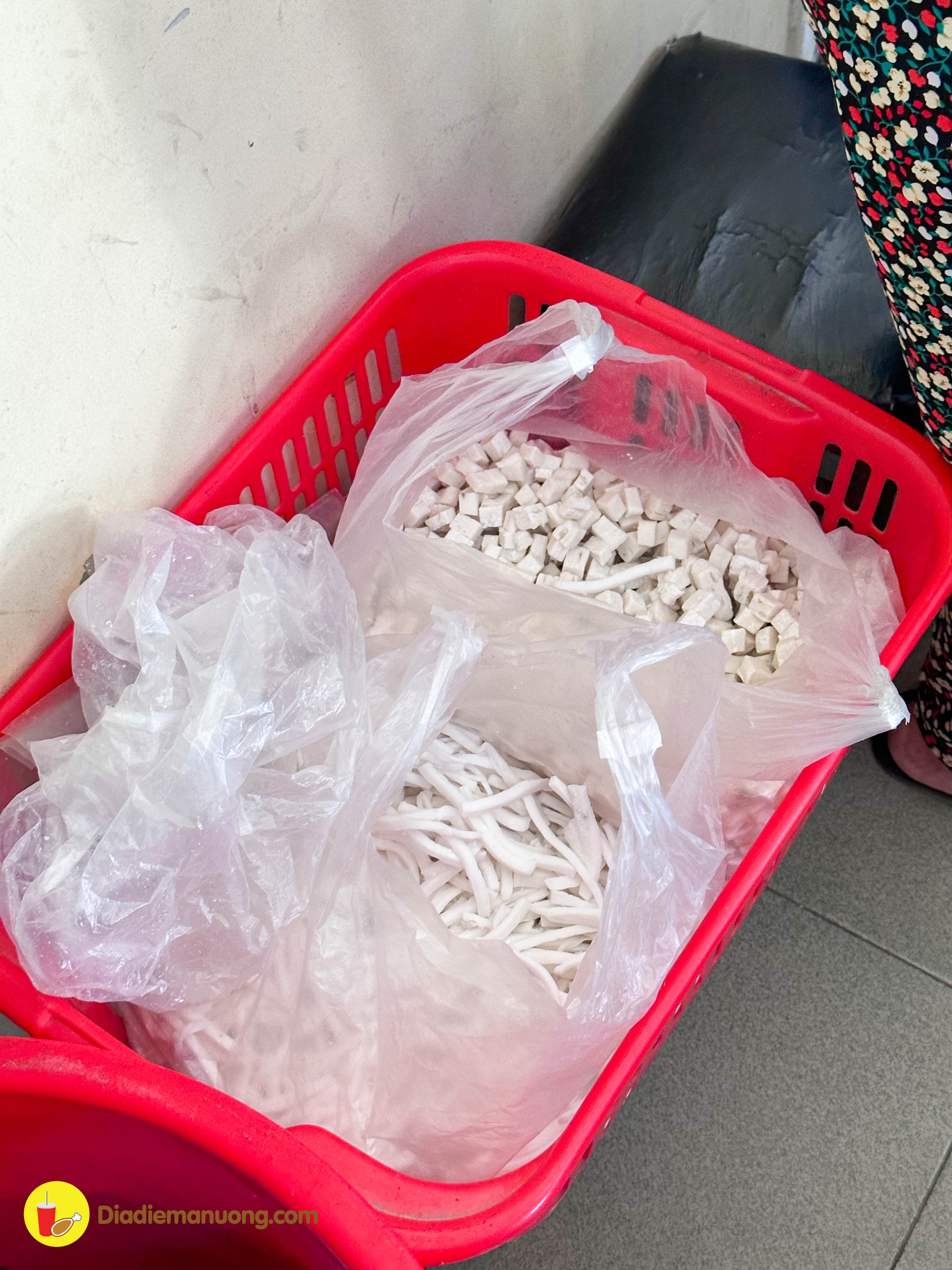 Còn bột lộn thì tui ra đây rồi tui cũng mới biết đến món này á chứ không phải là bột lọc đâu nhe… Bột lộn với bột lọc không chỉ ở màu sắc mà còn hương vị chua chua, bột lộn cũng dai hơn và được cắt thành những hình vuông nhỏ chứ không để sợi dài.