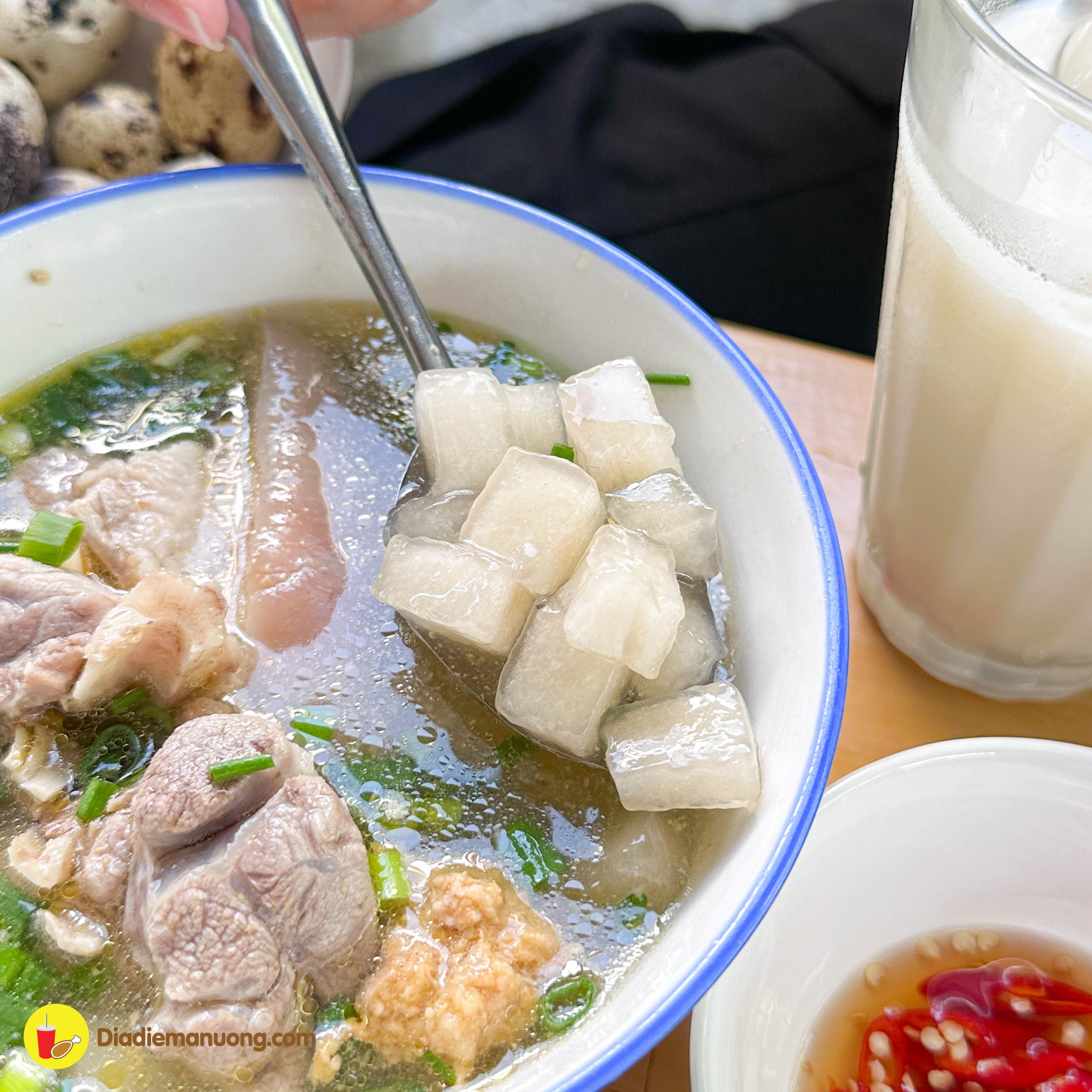 Bột lộn của quán ăn vào thì nó dai nhai đã miệng lắm… đúng gu tui luôn tịa tui thích ăn mấy món dai dai vầy nè…. vị chua nhè nhẹ nhưng không gây ảnh hưởng gì hết á…. nói chung là dễ ăn cực kì.