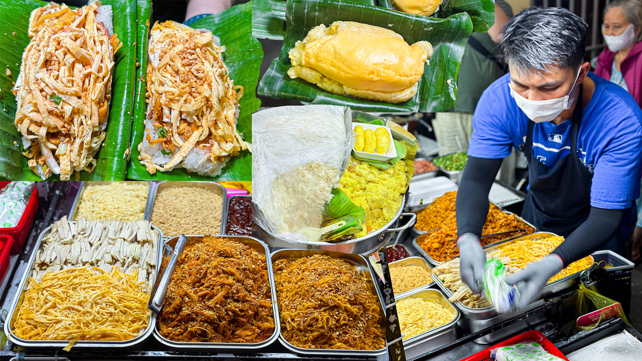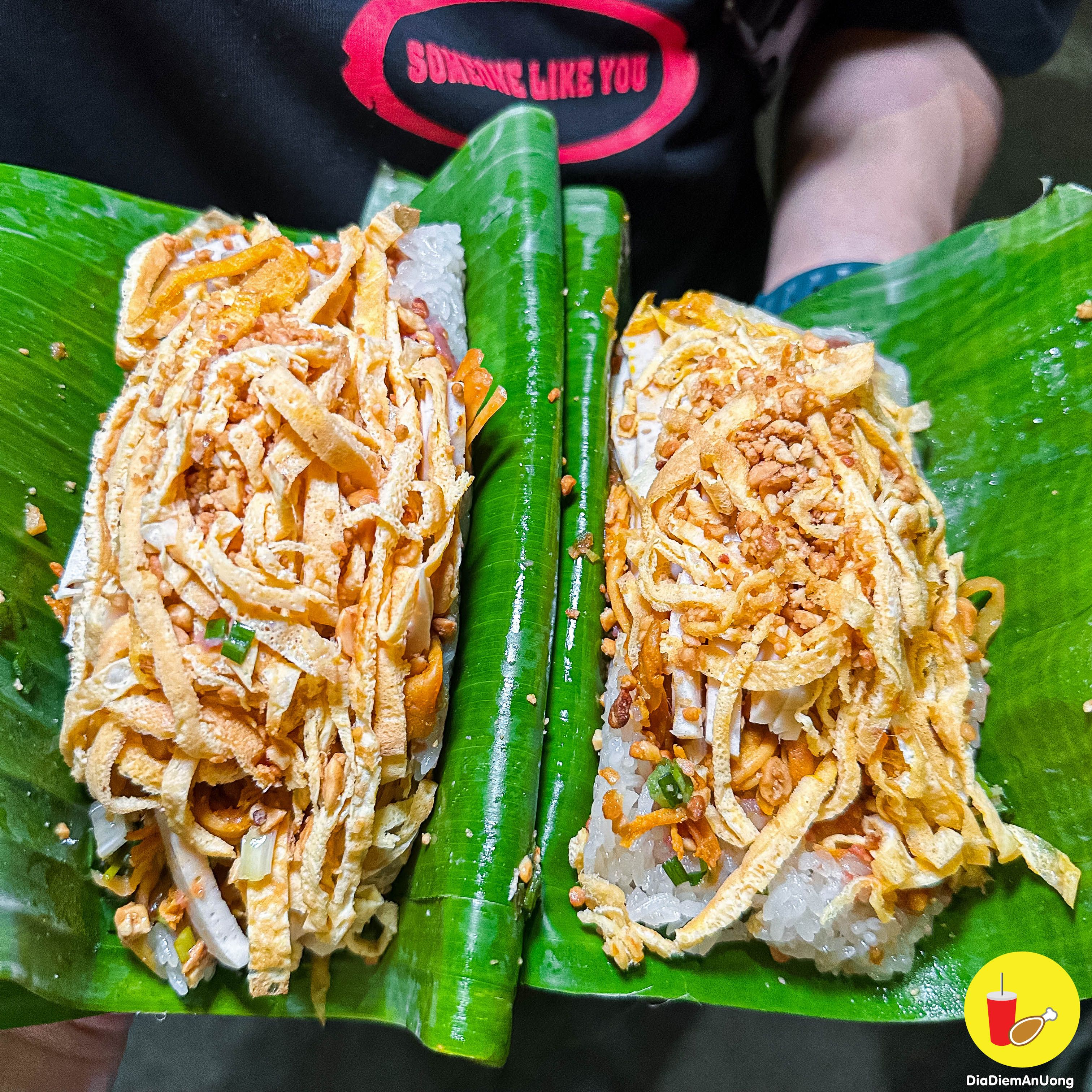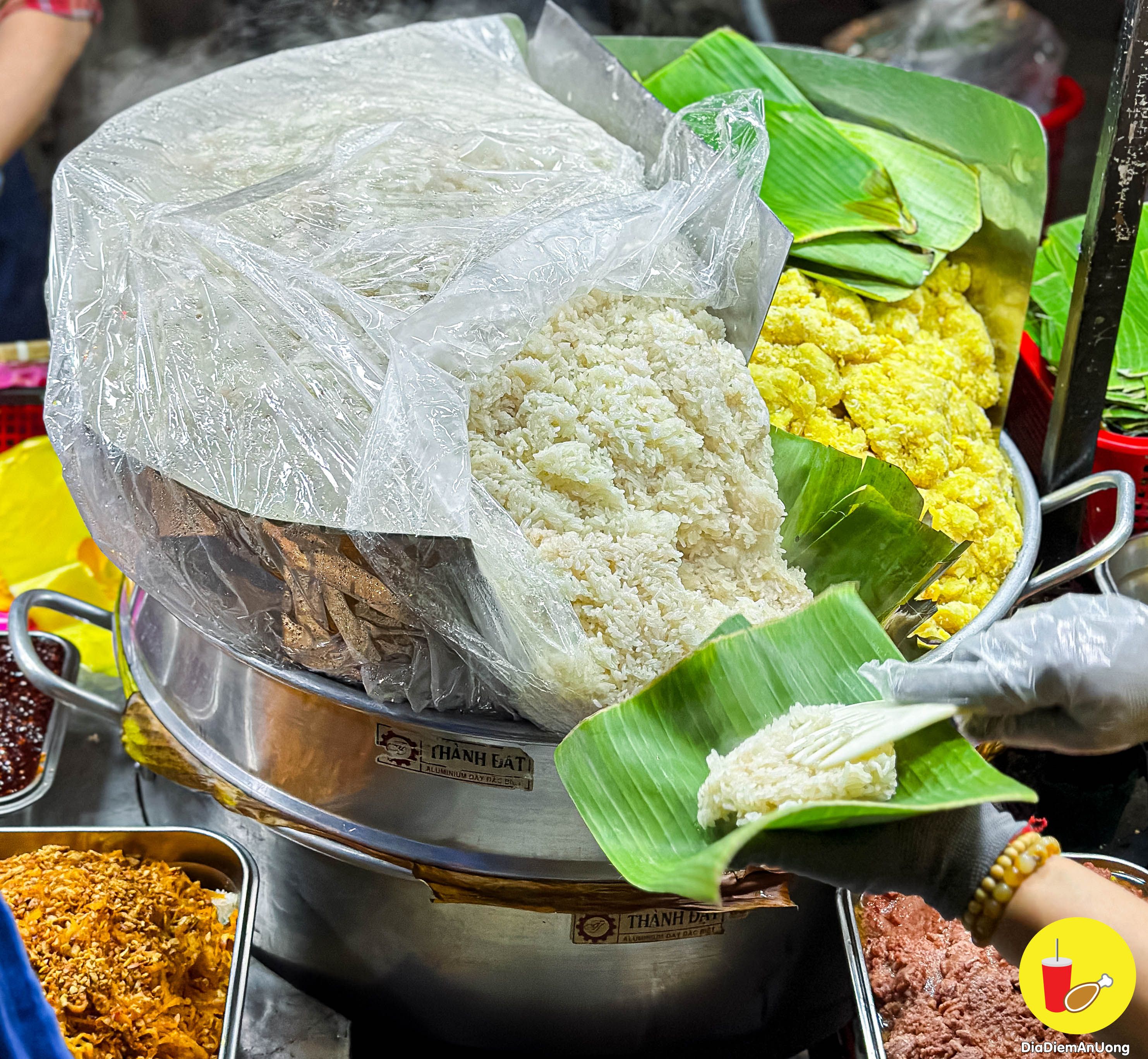 Lớp xôi vò dẻo hột, vị ngọt dịu, bên trong vừa có đậu xanh mà còn có thêm cơm sầu riêng vừa phải, luôn được giữ nóng hổi xong gói thêm lá chuối nữa nên càng làm tăng thêm vị thơm ngon.