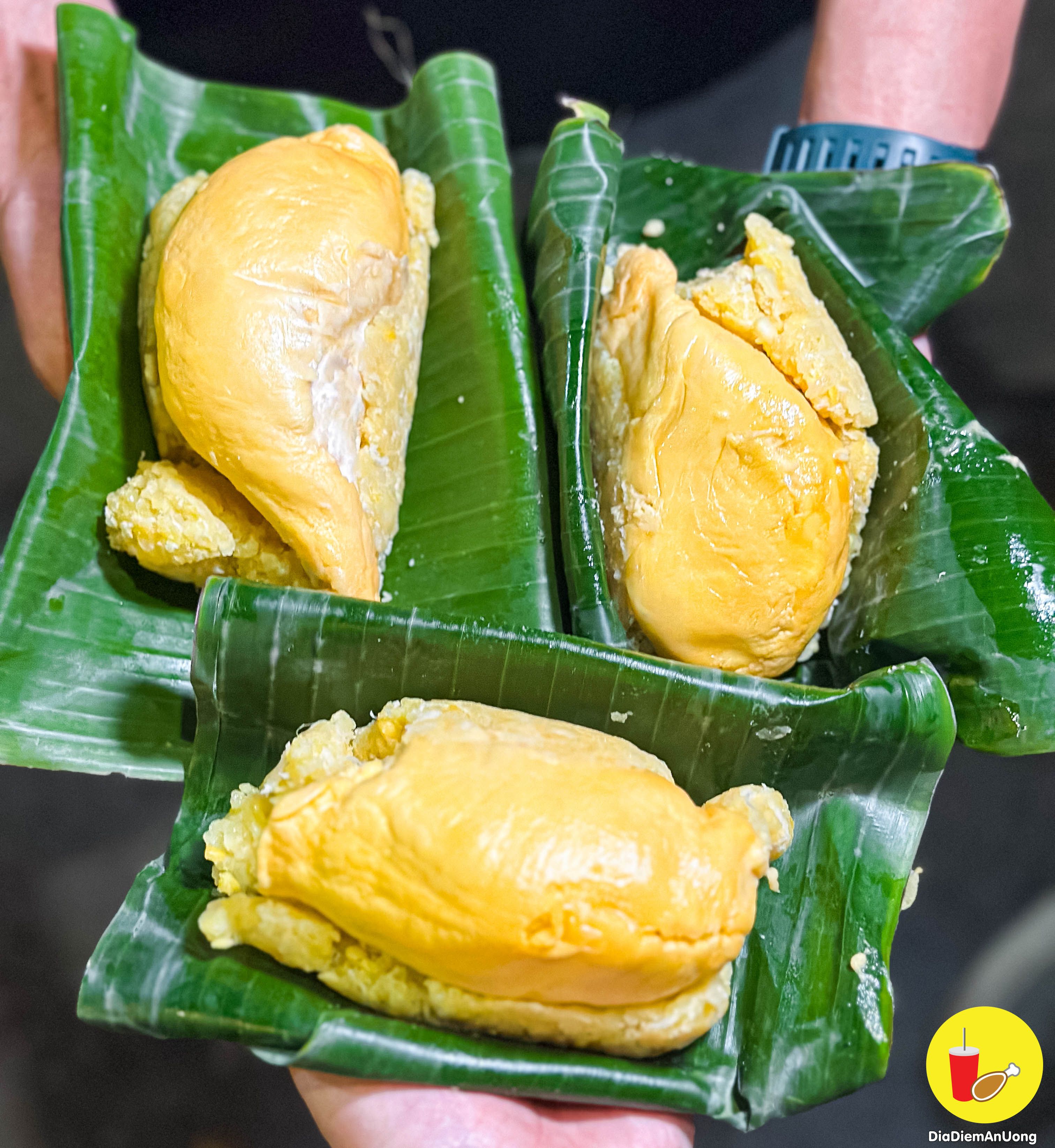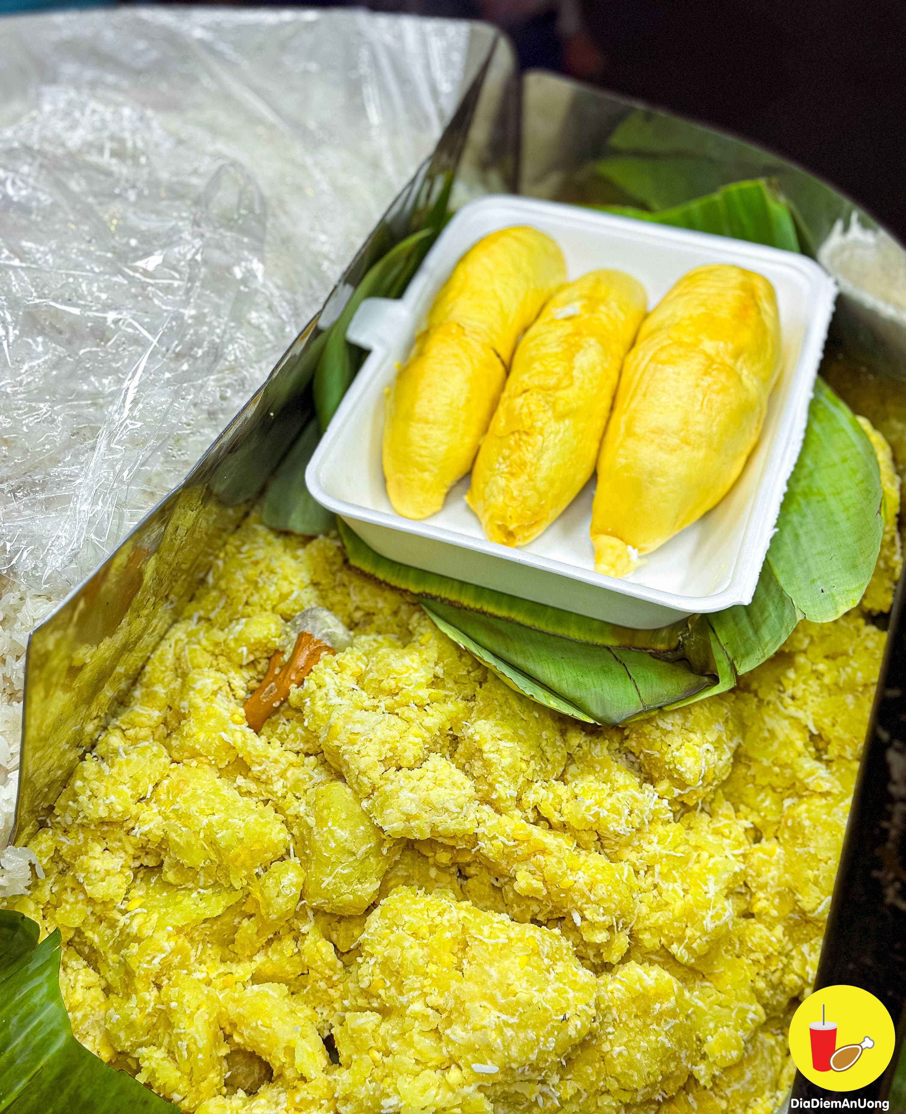 Xôi sầu riêng nguyên múi giá dao động từ 30k - 120k tùy theo múi sầu riêng to hay nhỏ.