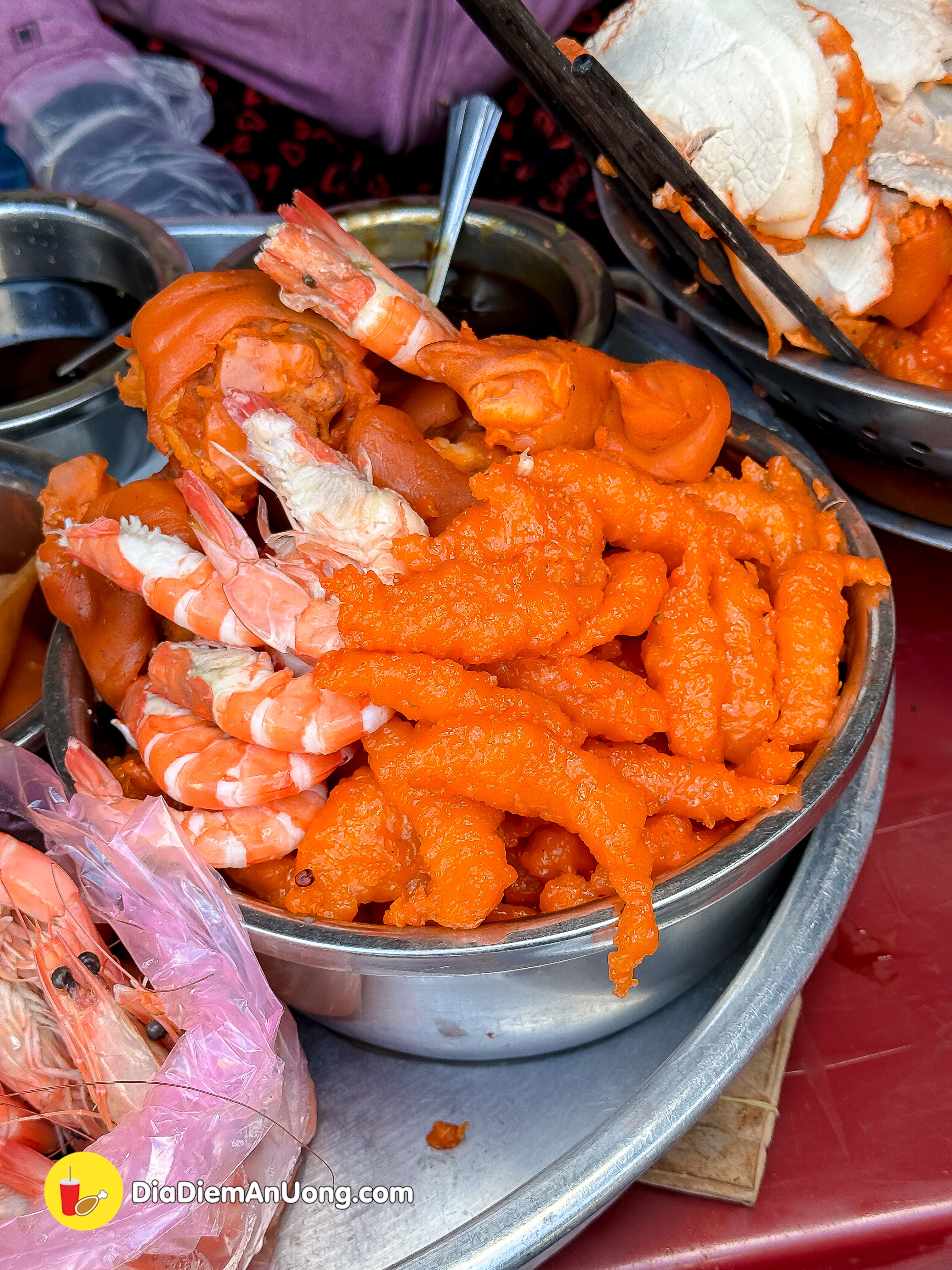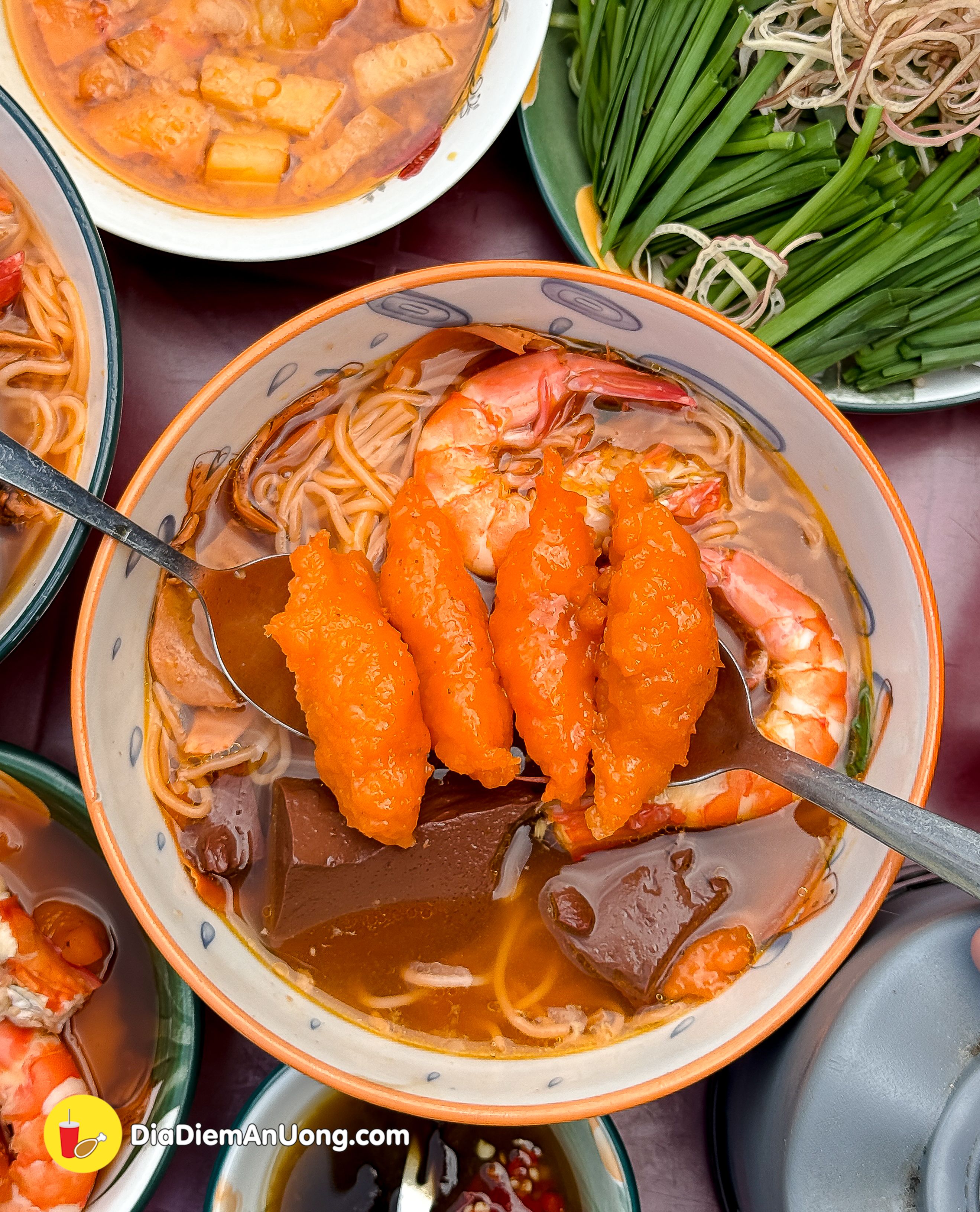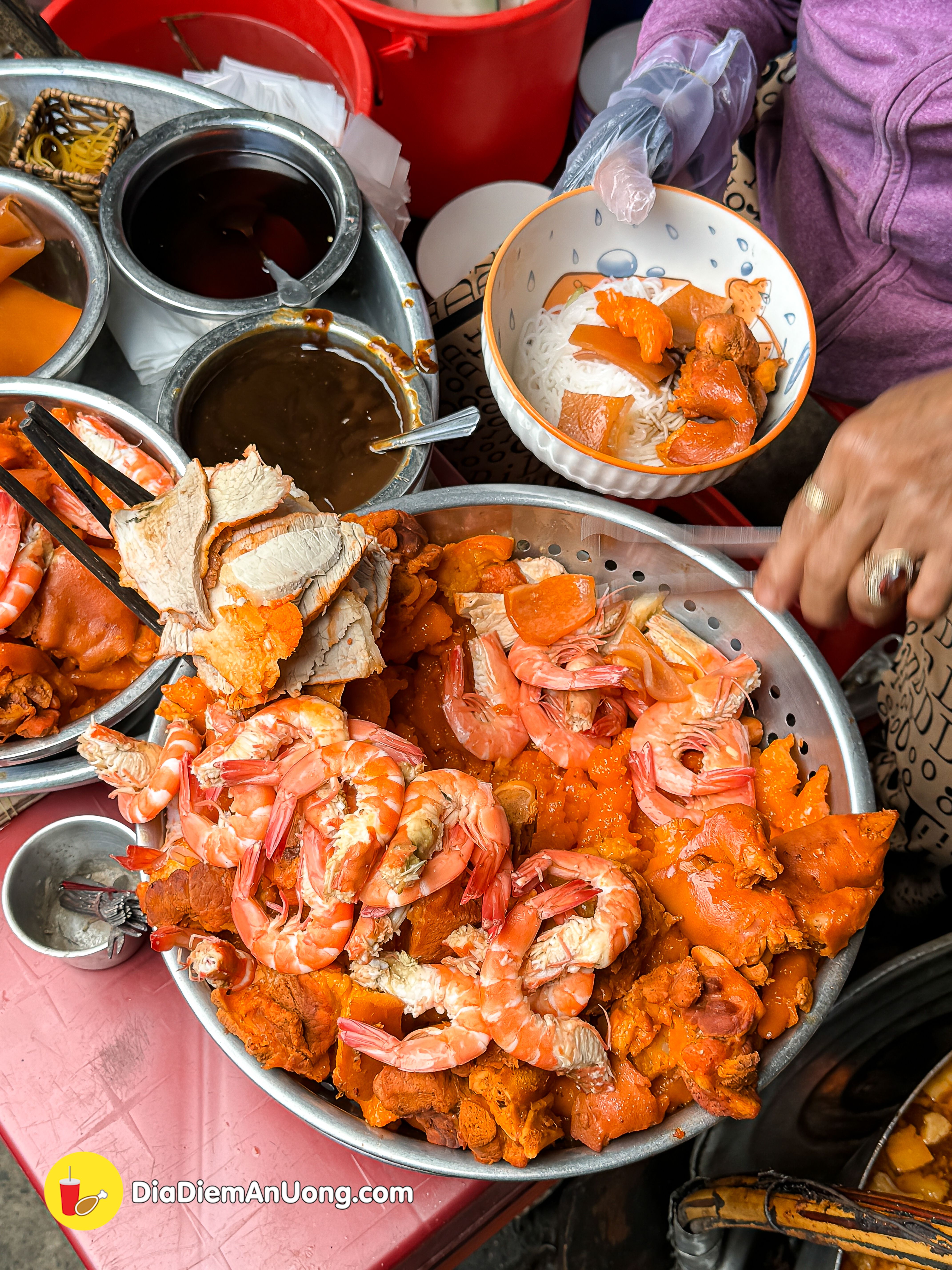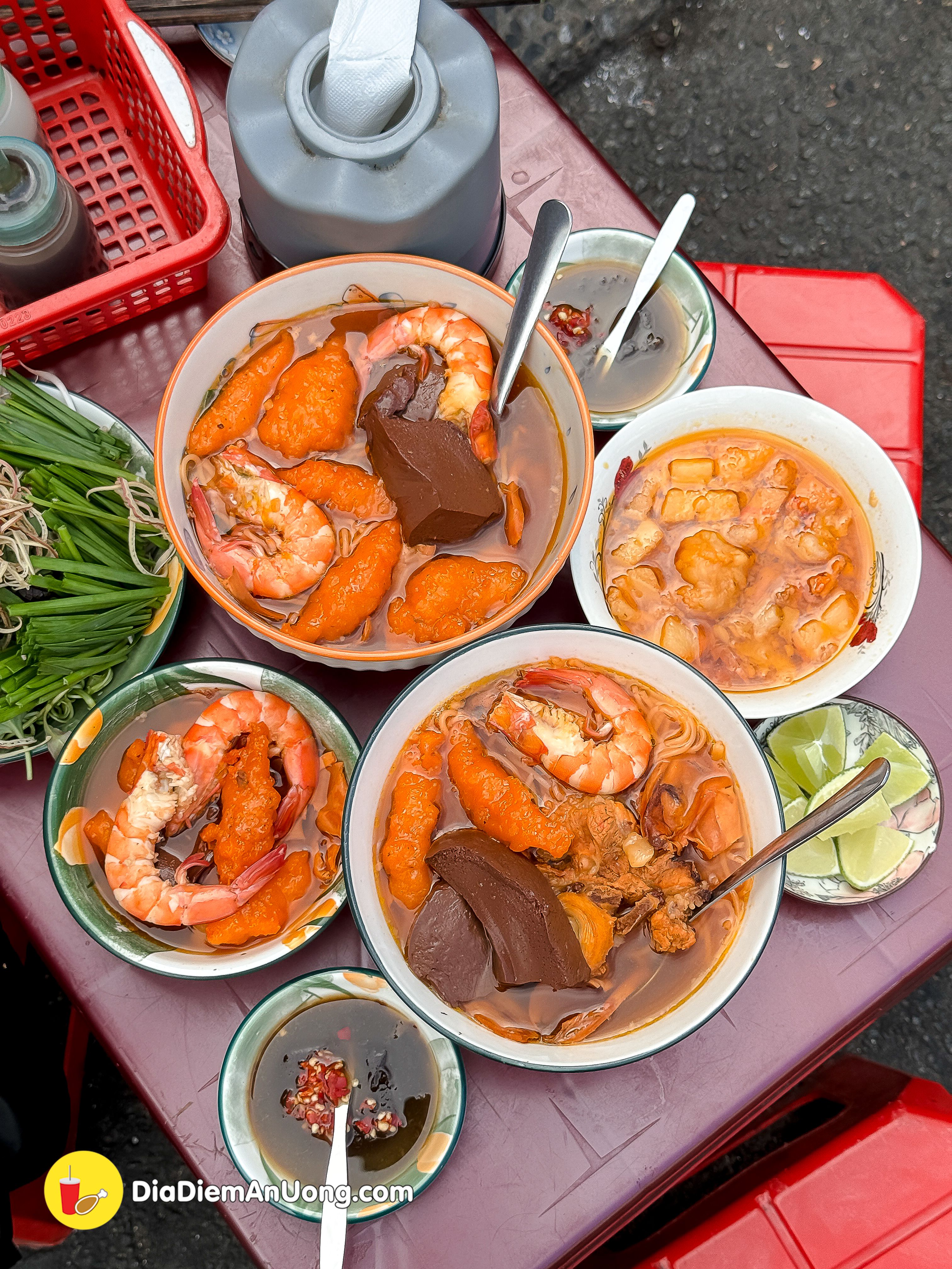 Một tô ở đây có giá 50K, mấy bồ có thể chọn món mình yêu thích để ăn ví dụ kết hợp Suông, Tôm, Giò hoặc Tôm, Suông, Thịt Heo Nạc.