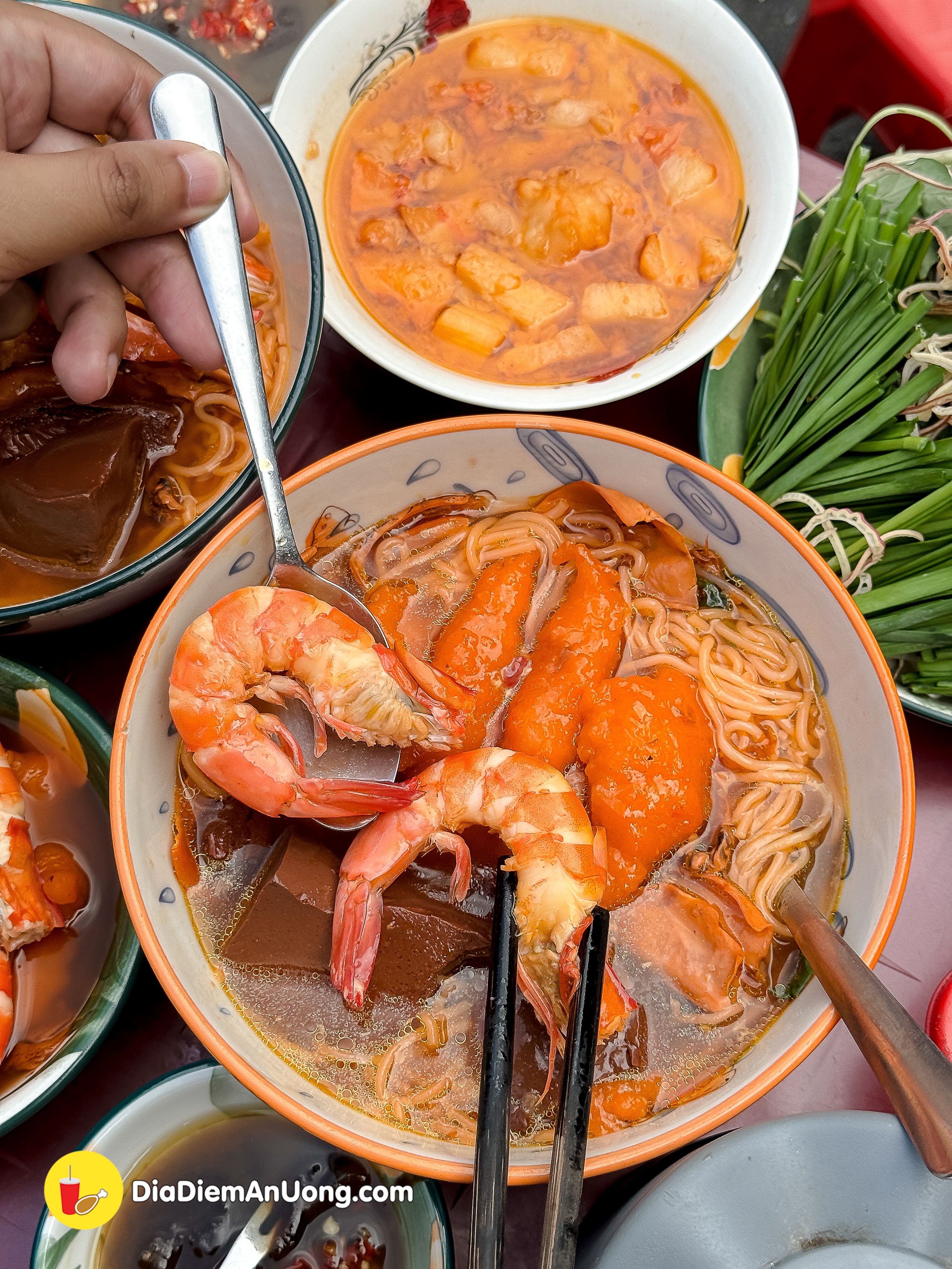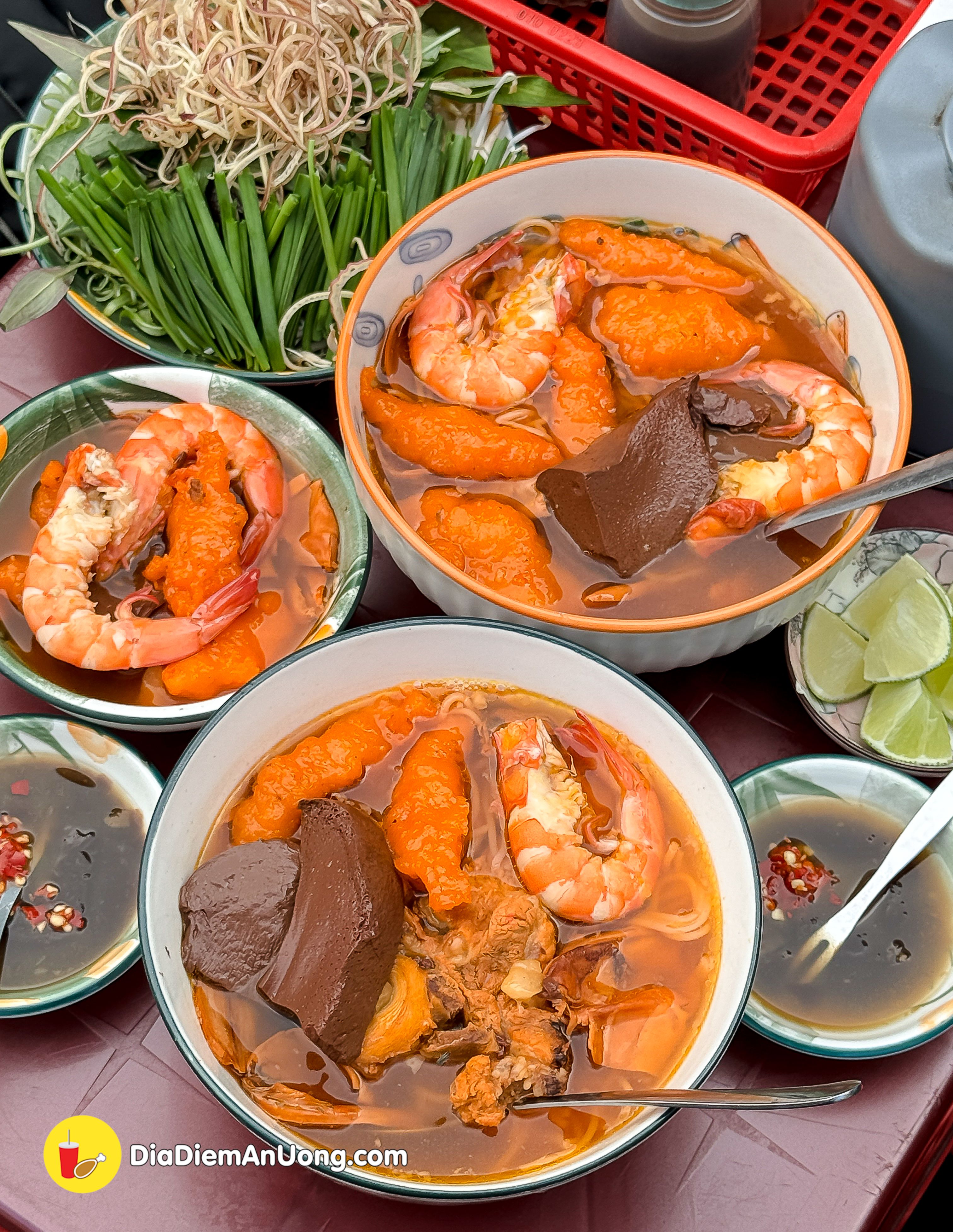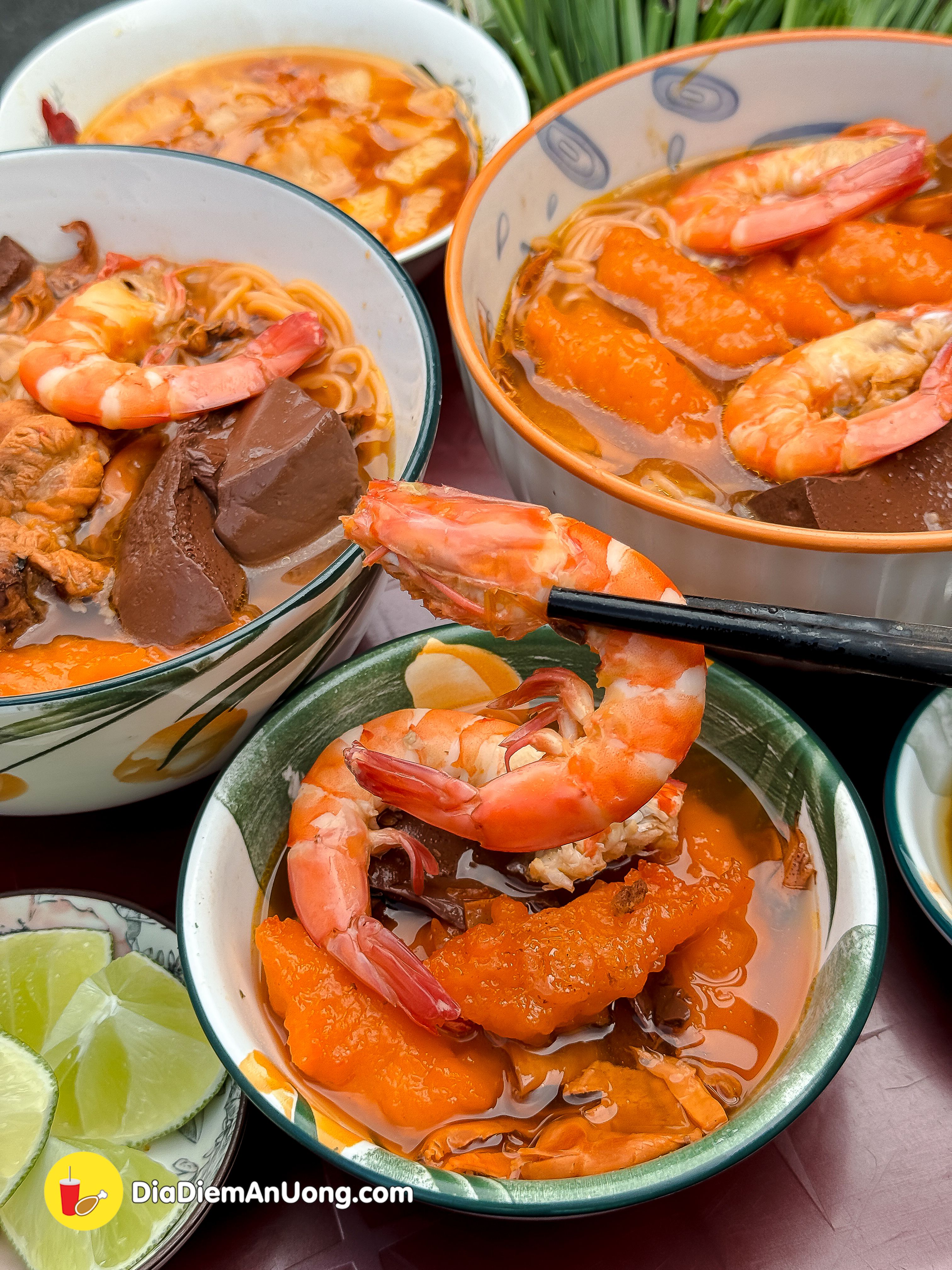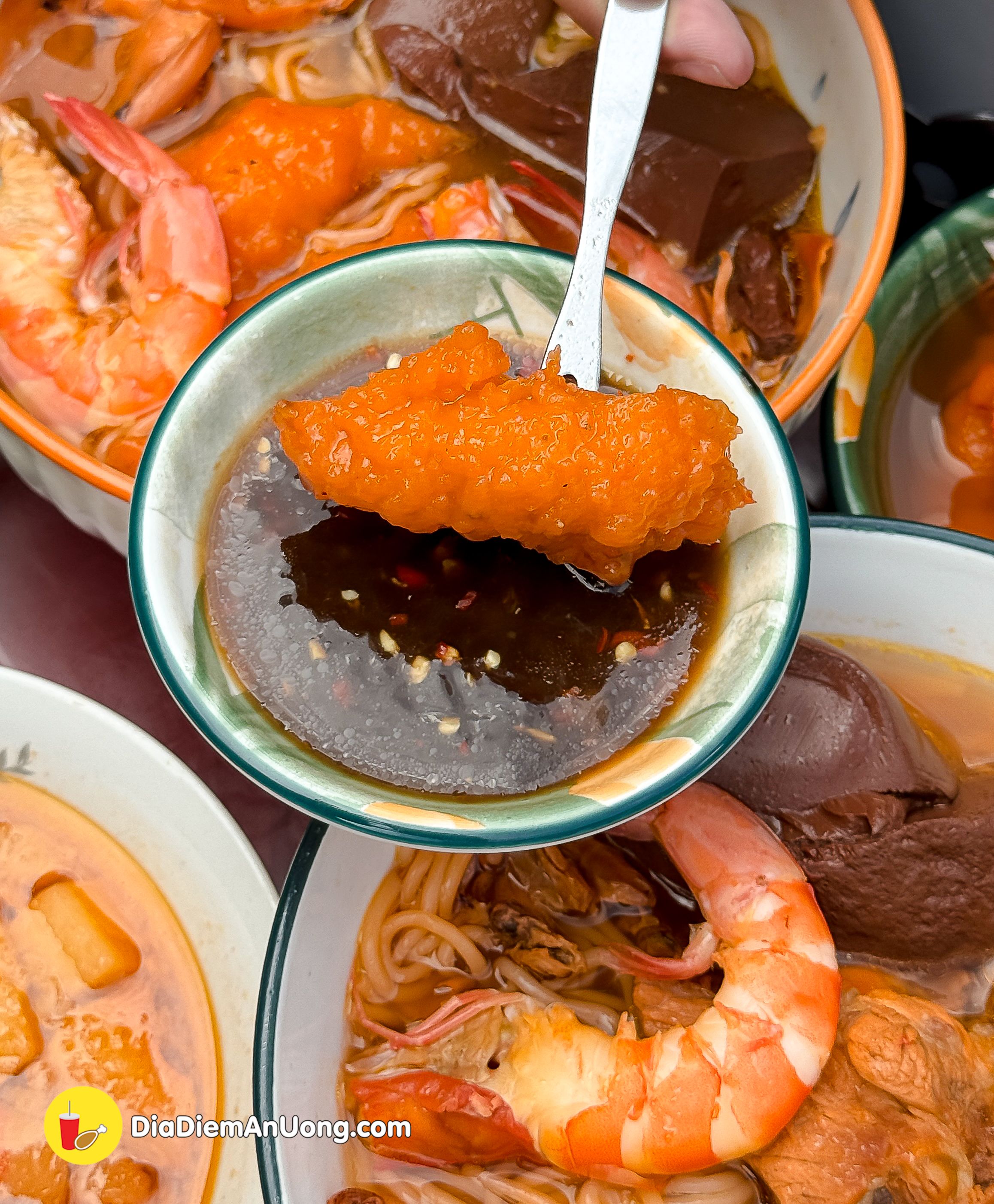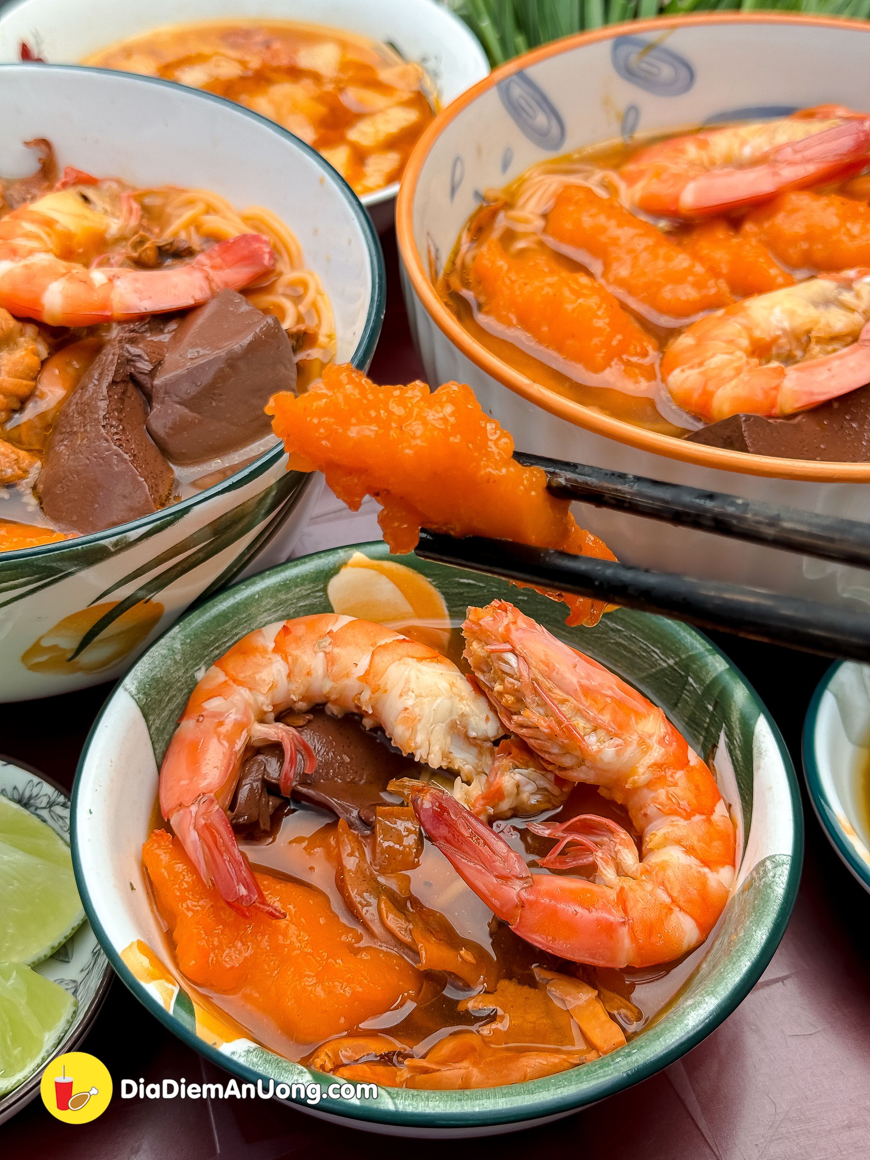 Tôm ở đây cô chủ quán dùng hẳn tôm sú cho chất lượng, miếng tôm tươi ngọt ăn sướng miệng lắm cả nhà.