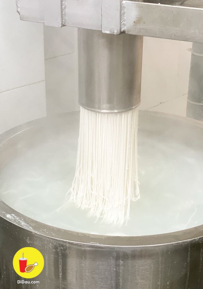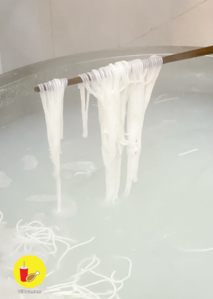 Ở đây có đặc điểm là những sợi bún được làm ngay tại quán. Đảm bảo không có chất phụ gia. Sợi bún làm từ bột gạo mỏng, mềm vừa phải. Khách ăn tới đâu sẽ được luộc sôi bún ngay tại lúc đó.