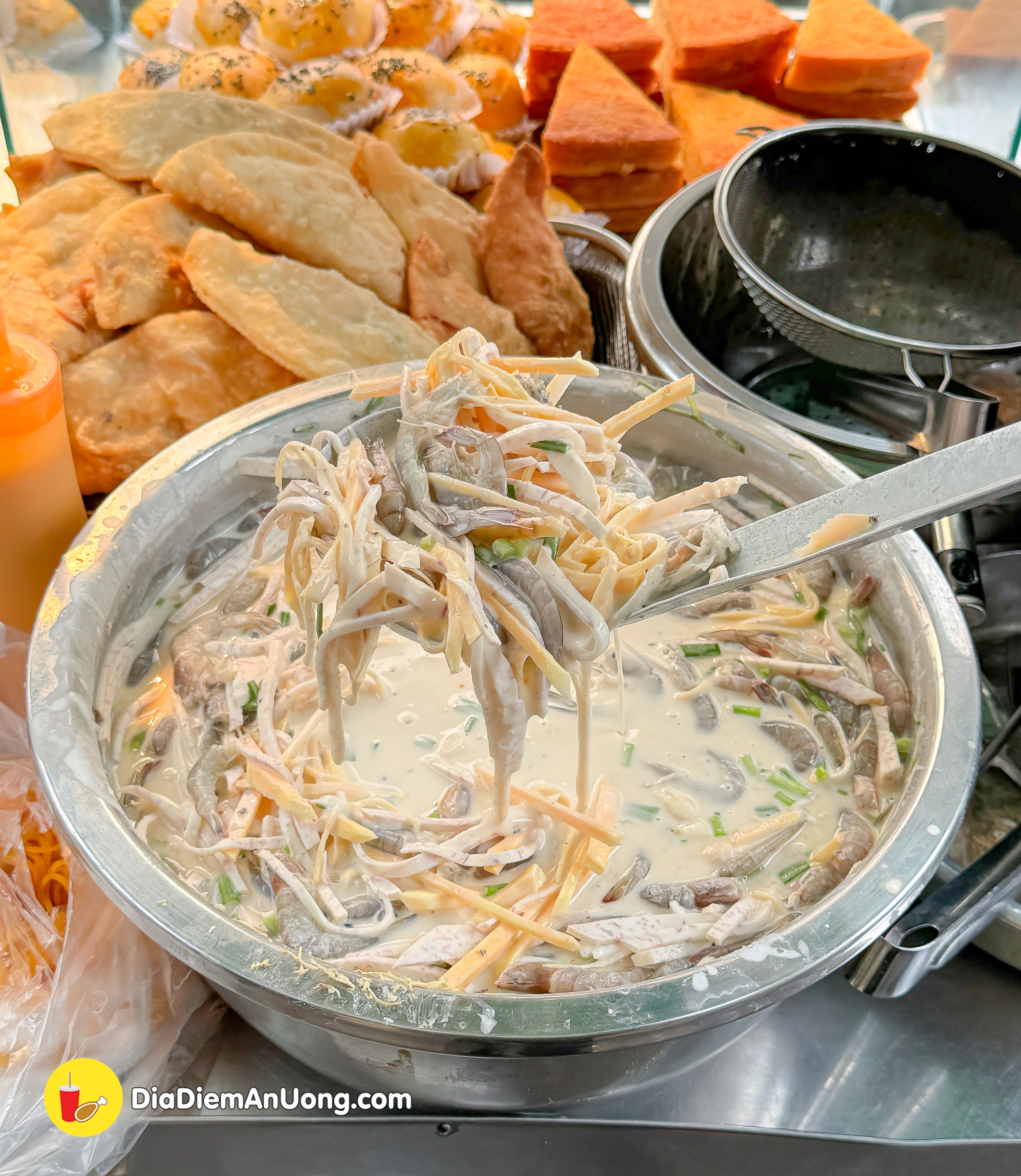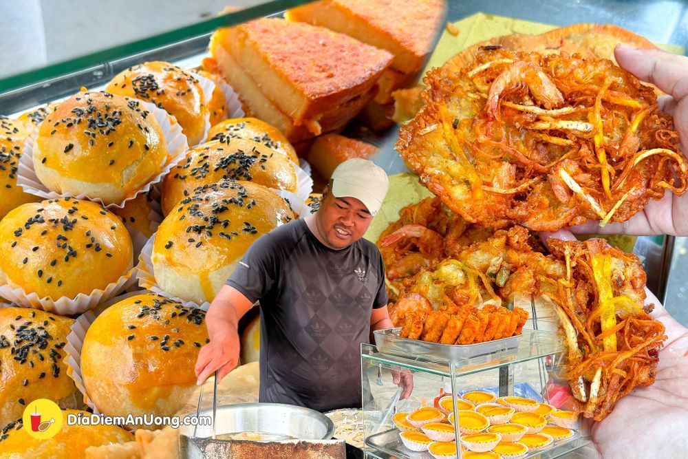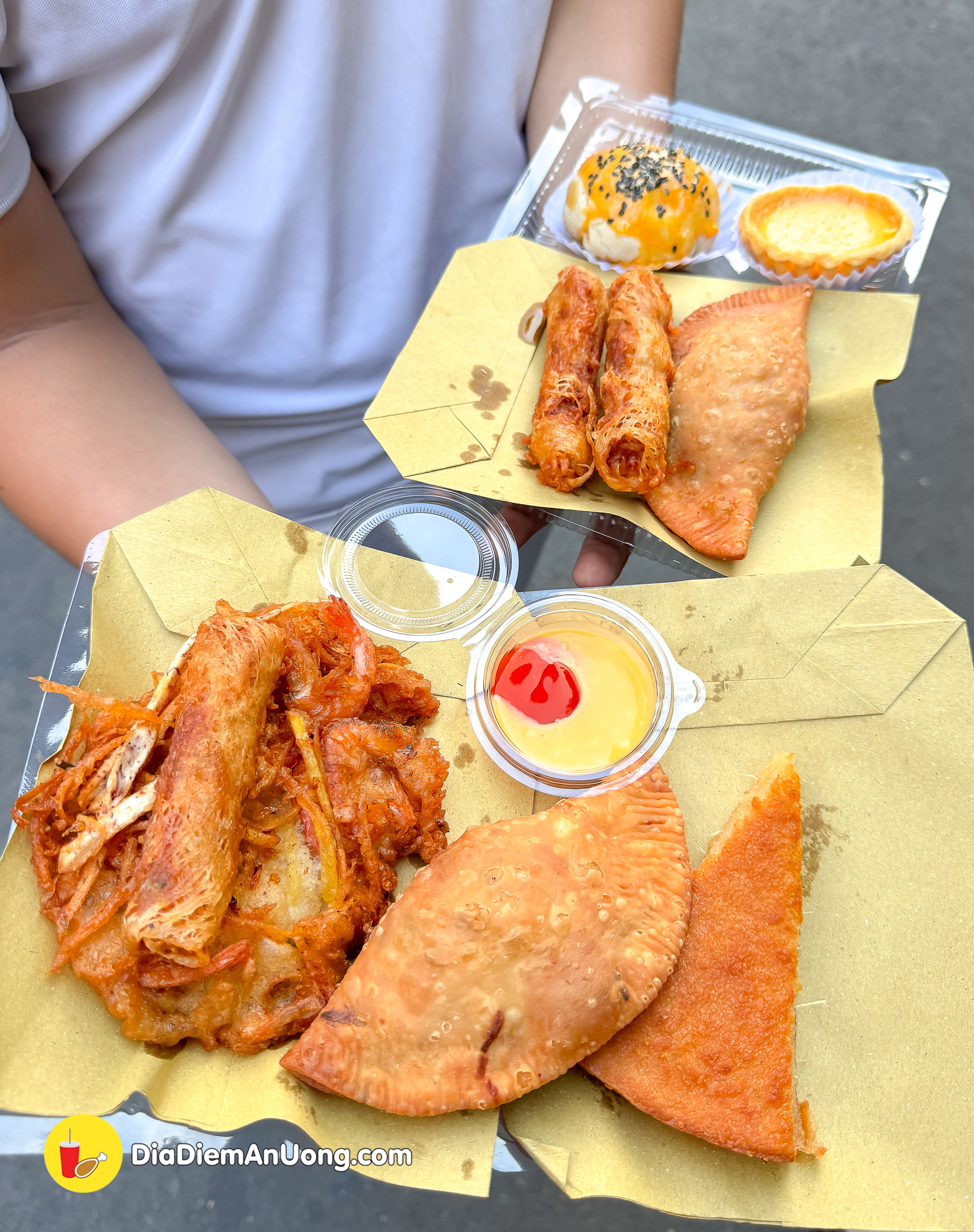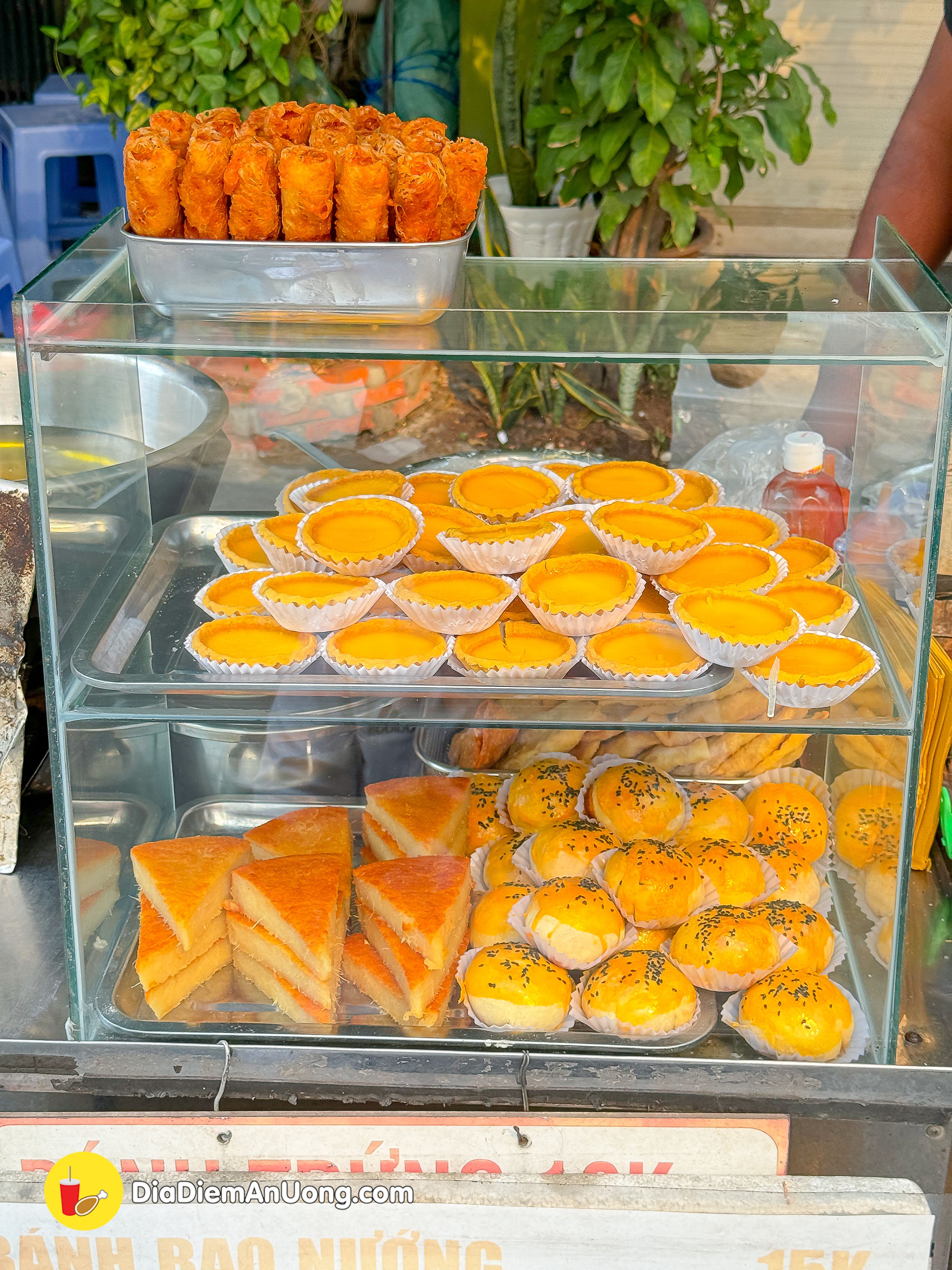 Ở đây người ta có tổng cộng 6 món, bao gồm Bánh Trứng, Bánh Khoai Mì, Bánh Bao Xíu, Bánh Tôm Chiên, Bánh Quai Vạc và Chả Giò.