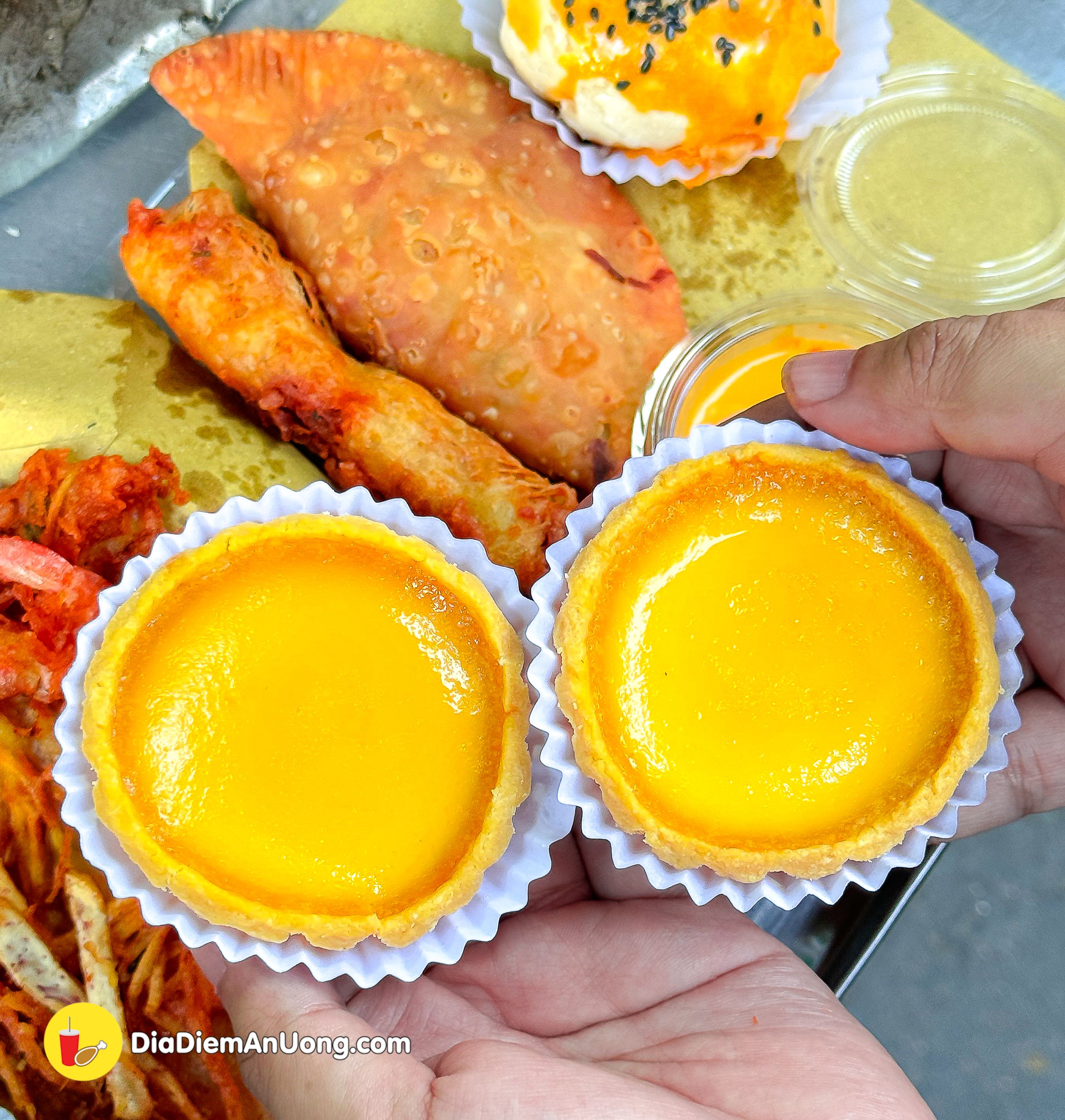 Đây là Bánh Trứng với lớp vỏ giòn bao bọc chiếc nhân béo mềm thơm ngon. Mọi người có thể ăn tại chỗ, tui thì đem về cất tủ lạnh ăn cũng ngon không kém đâu nhé.