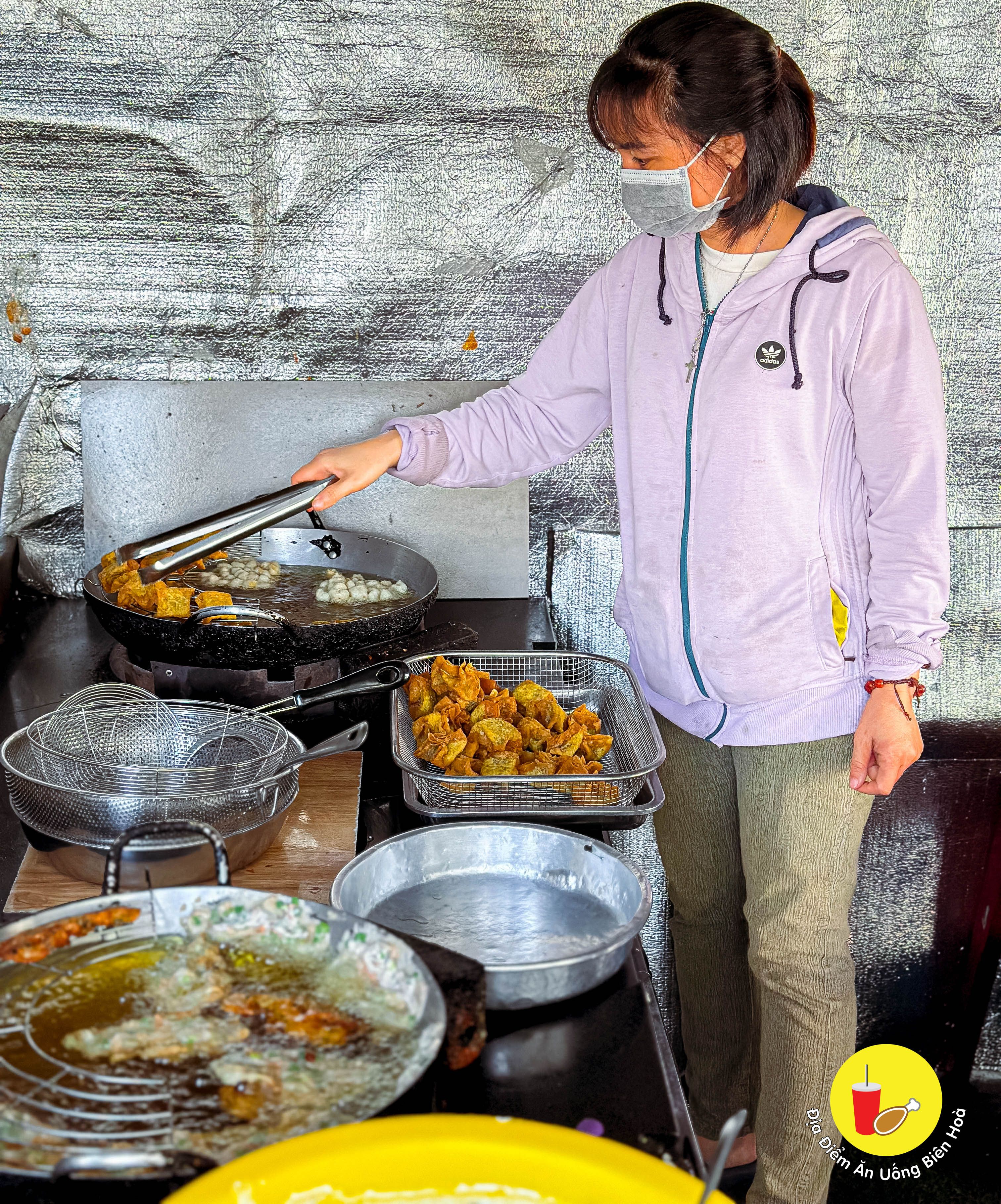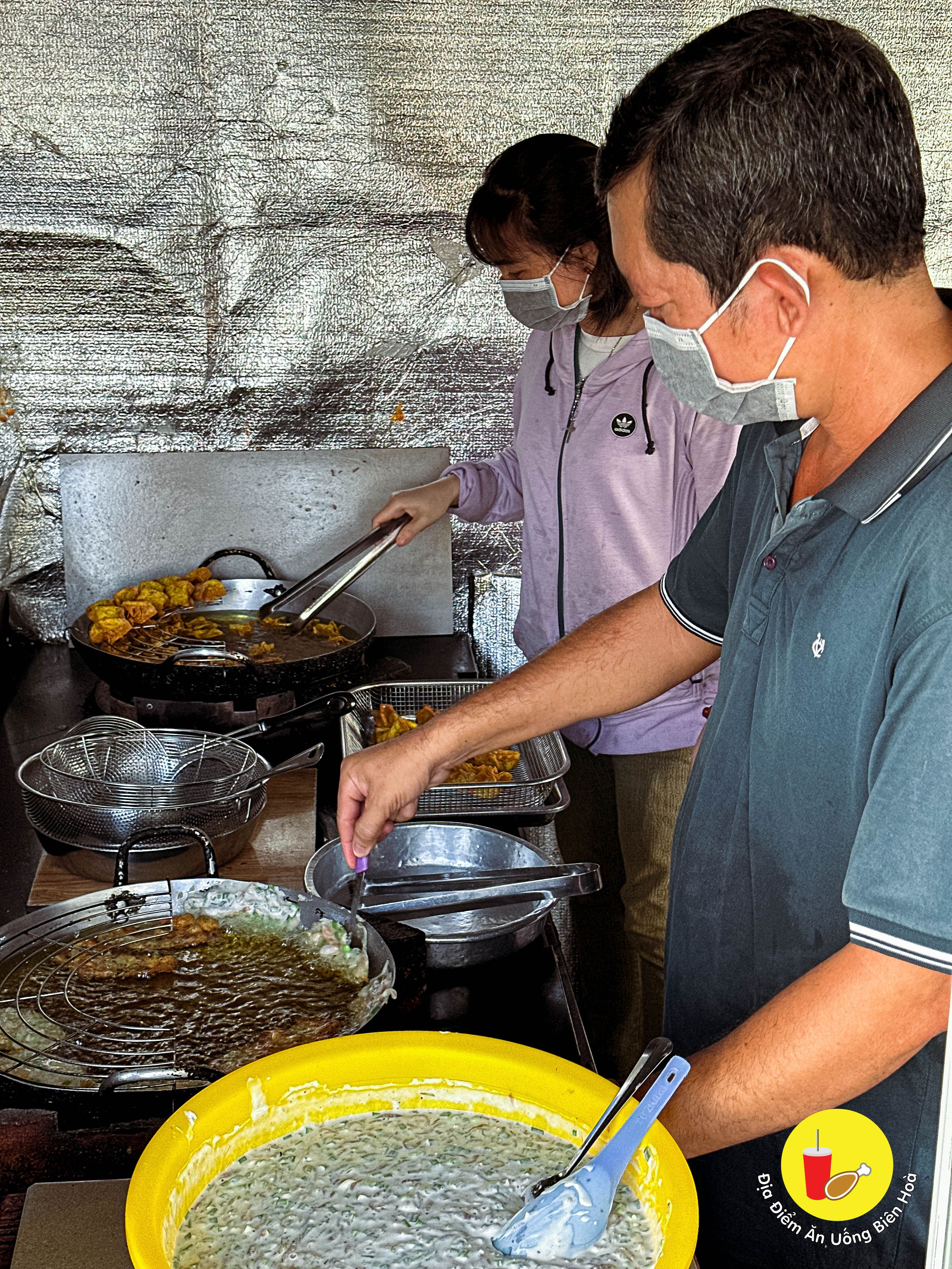 Một trong những hàng đồ chiên cá viên, topping đủ loại mà dân Biên Hòa thuộc nằm lòng mỗi khi thèm là theo thói quen cứ tấp. Đông đúc chiên không kịp bán, người ăn tấp nập mà mua về cũng nhiều.