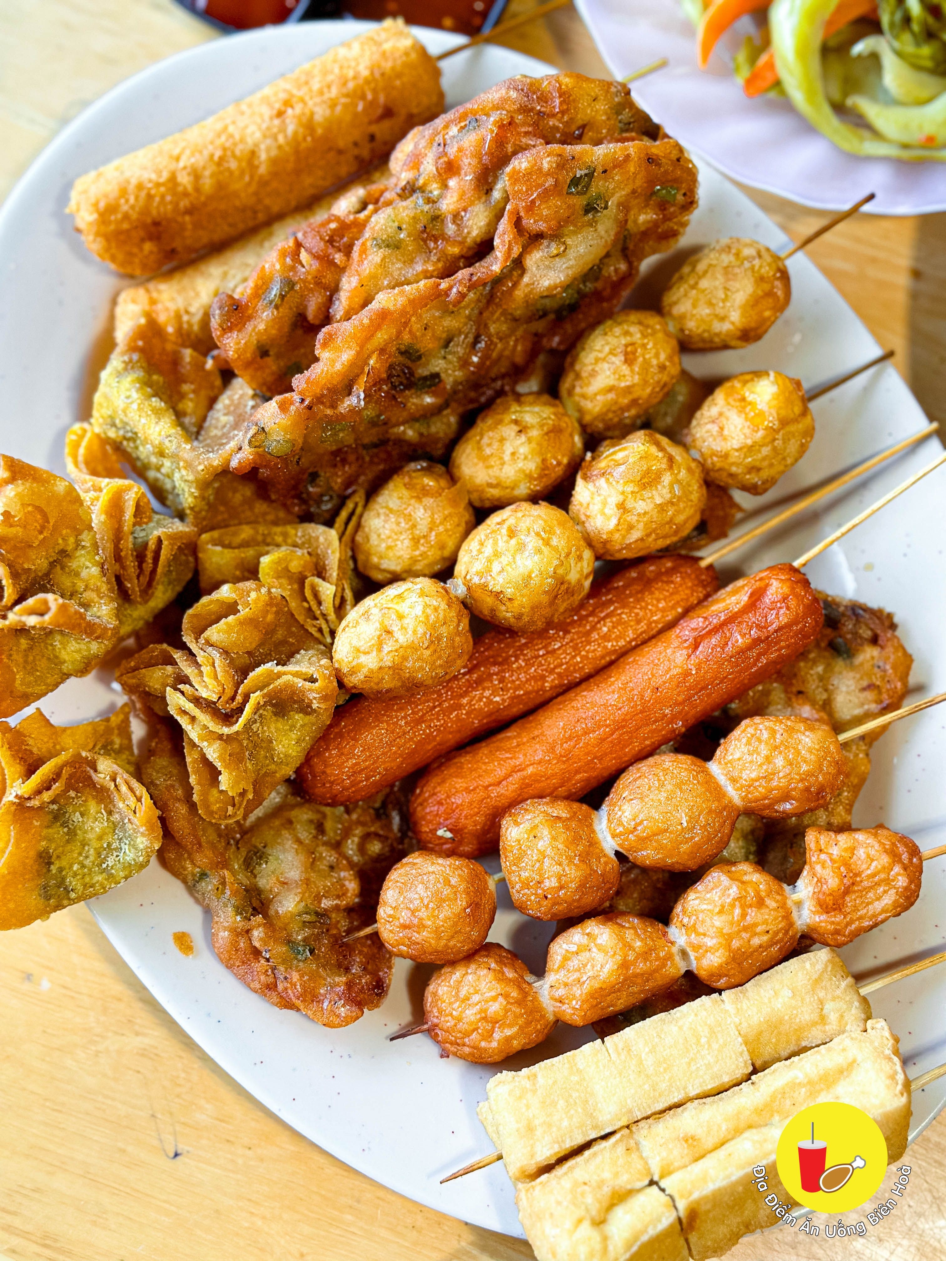 Điểm mình thích là có rất nhiều loại cho dân tình mình có thể chọn: cá lớn, xúc xích, bò viên, trứng cút, hoành thánh, bánh tôm, đậu hũ, chả giò, hải sản phô mai, xúc xích phô mai, xúc xích hồ lô, phô mai que, khoai tây chiên, cá hồi, xôi gà chiên, thanh cua, chả mực, đậu hũ phô mai,...
