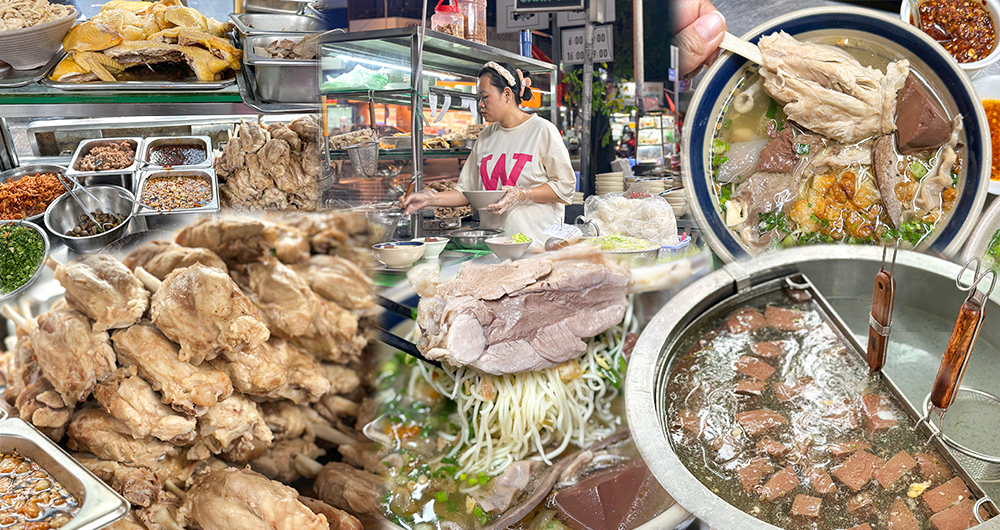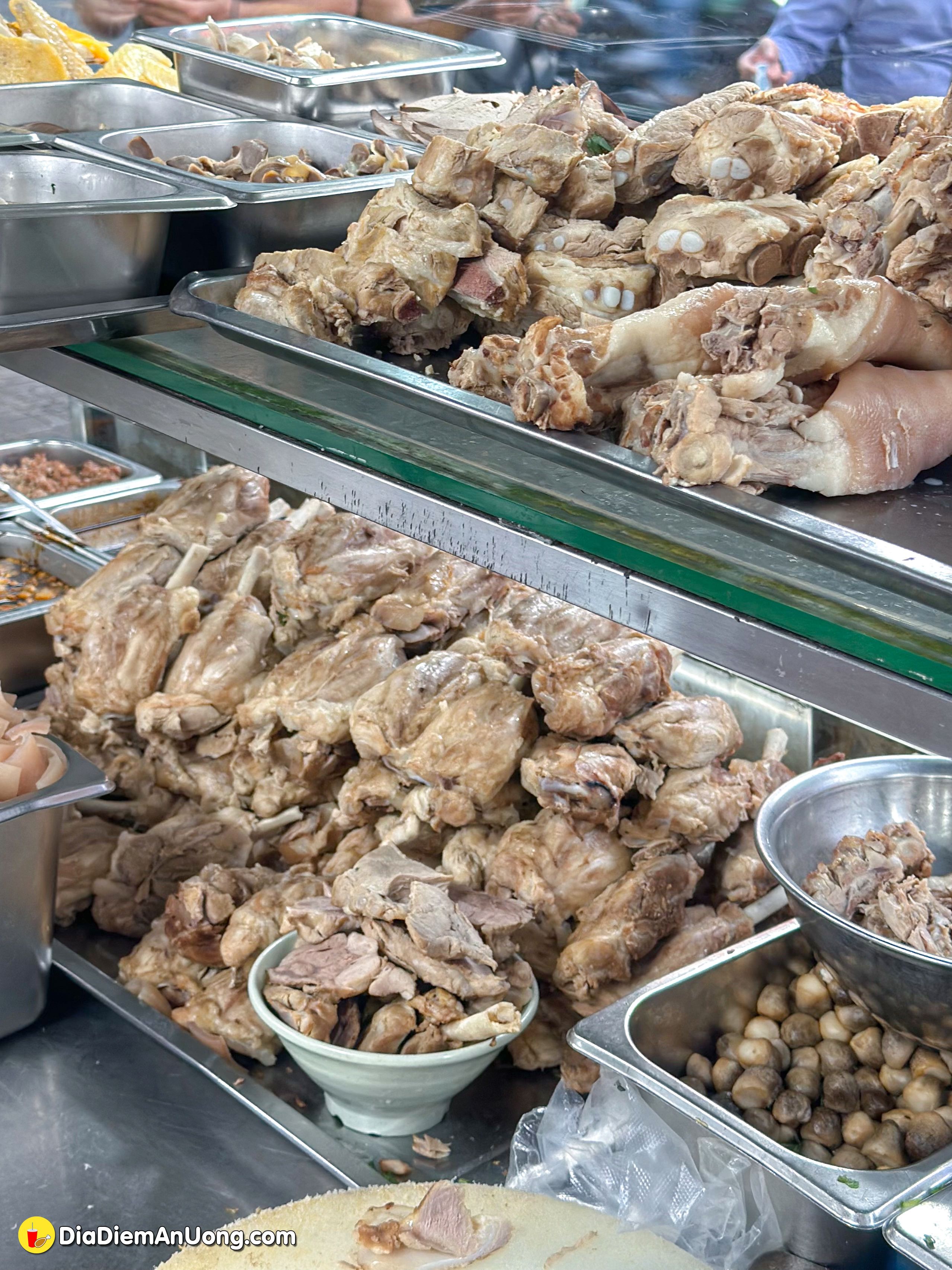 Dàn topping thì ê hề: đồ lòng, sườn cọng, xí quách, đuôi heo, rồi gà, trứng non,….