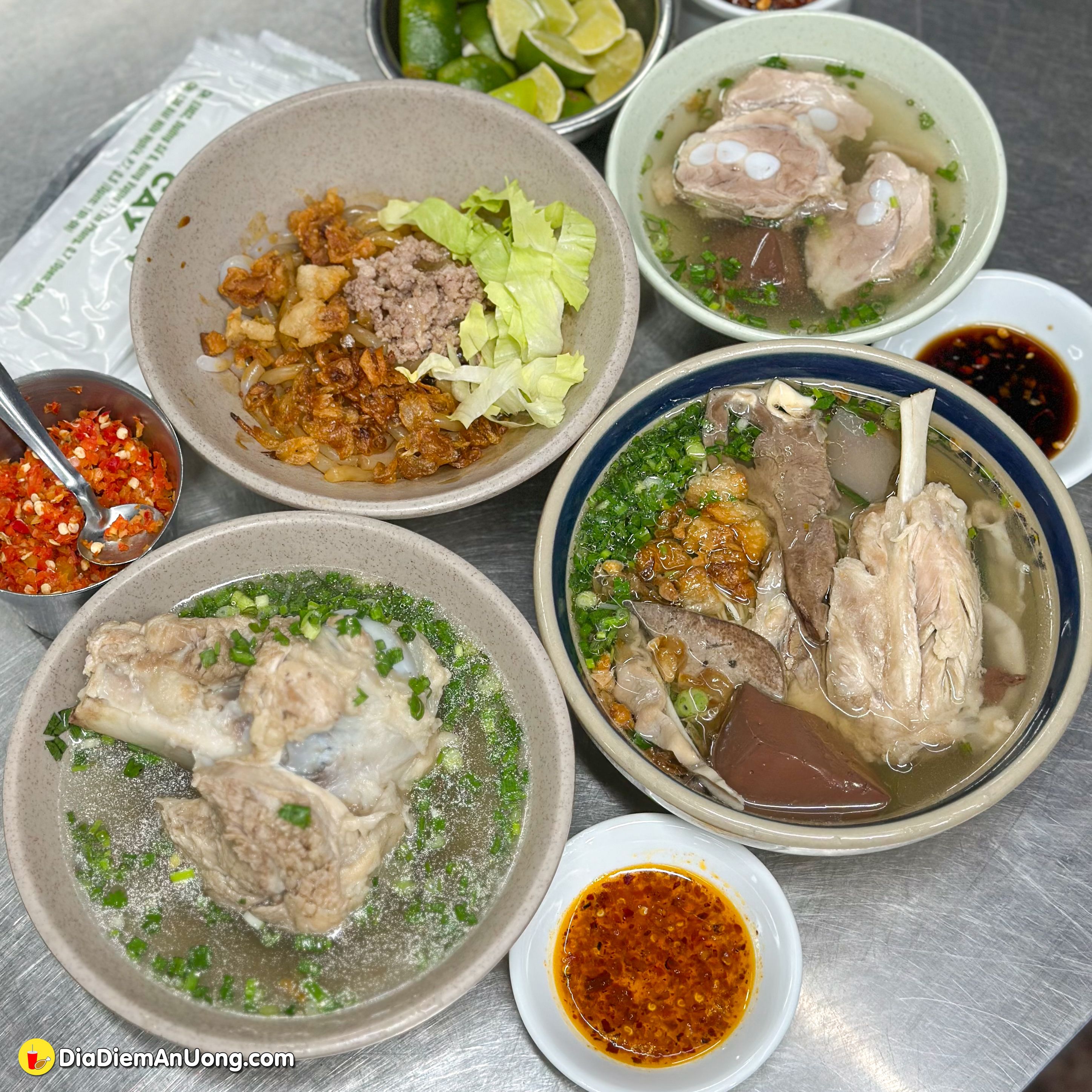 Dàn topping nhìn là muốn ăn liền, món nào cũng hấp dẫn và sạch sẽ. Tô đặc biệt như hình có giá 75k bao gồm: sườn cây và lòng nè. Quán có hành phi tóp mữ nahf làm thơm phức ăn ghiền lắm á.