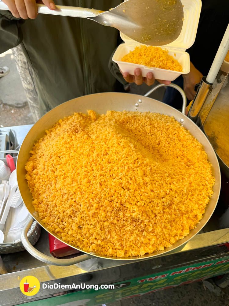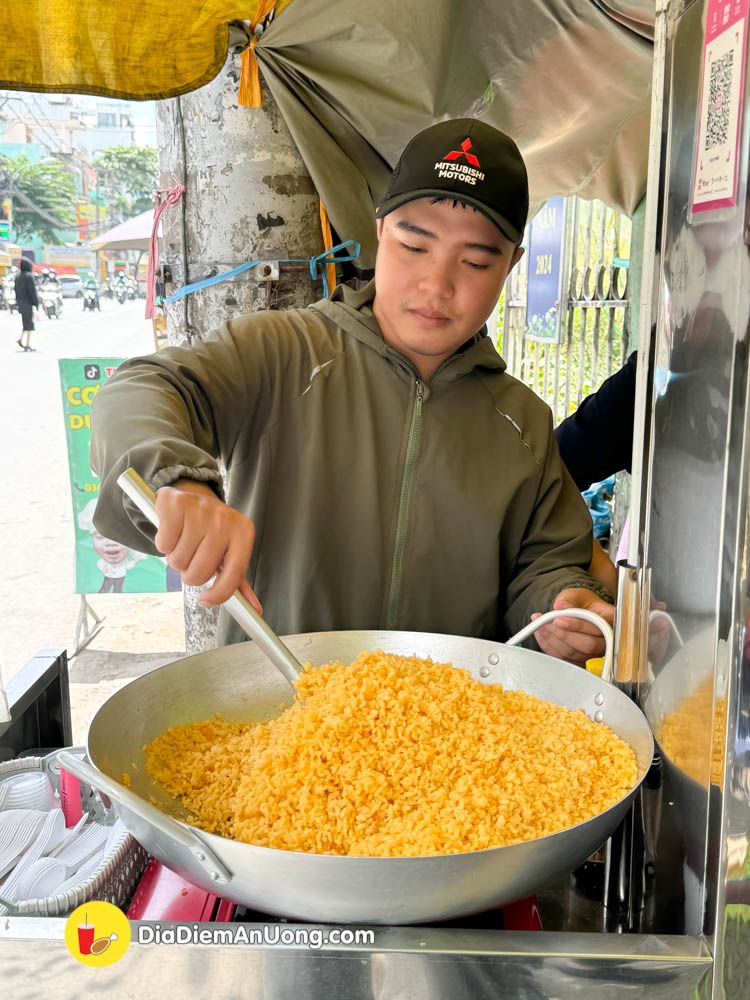 Chiếc xe nhỏ bán ở Lê Đức Thọ, không có địa chỉ cụ thể nhưng hằng ngày bán liên tục hơn. Chảo chiên cơm không kịp bán, đa phần khách mua đều là các bạn sinh viên hoặc dân cư lân cận.