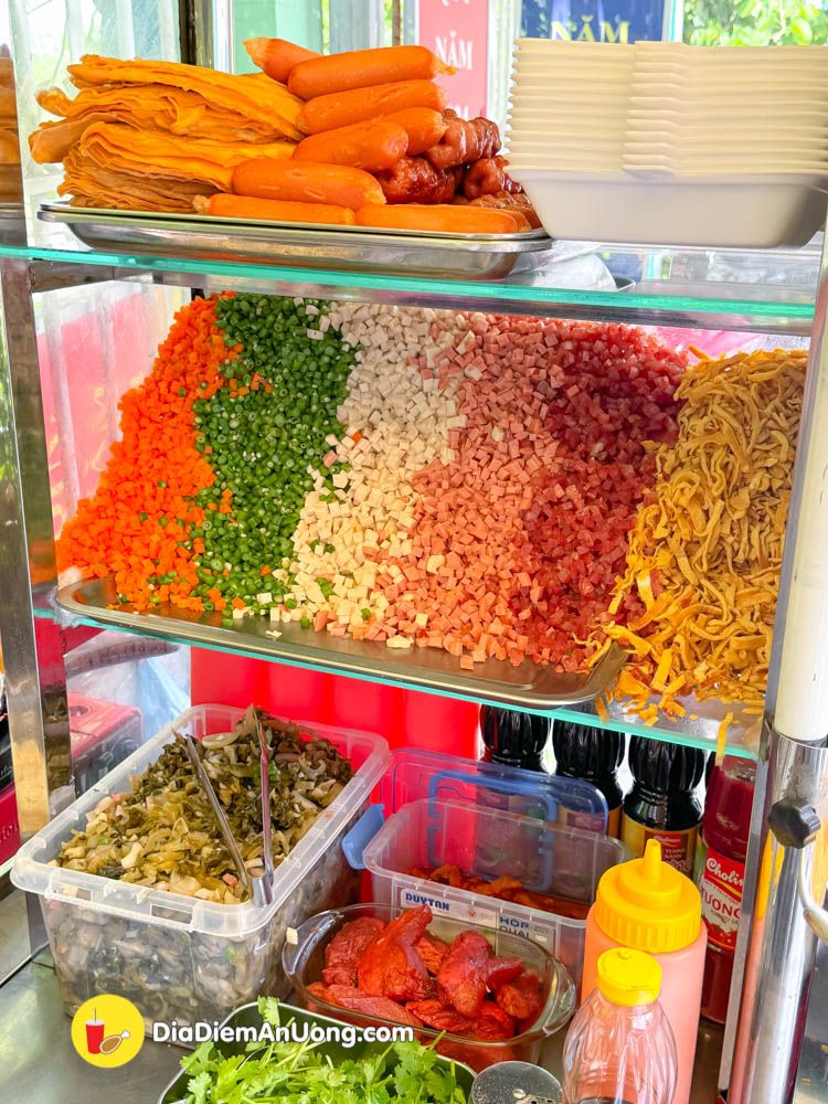 Tất cả đồ ăn ở đây đều do các bạn trẻ tự làm, từ thịt xá xíu, nem nướng, trứng chiên và những nguyên liệu còn lại cũng do các bạn ngày đêm cắt mới được tủ đồ ăn chất lượng.