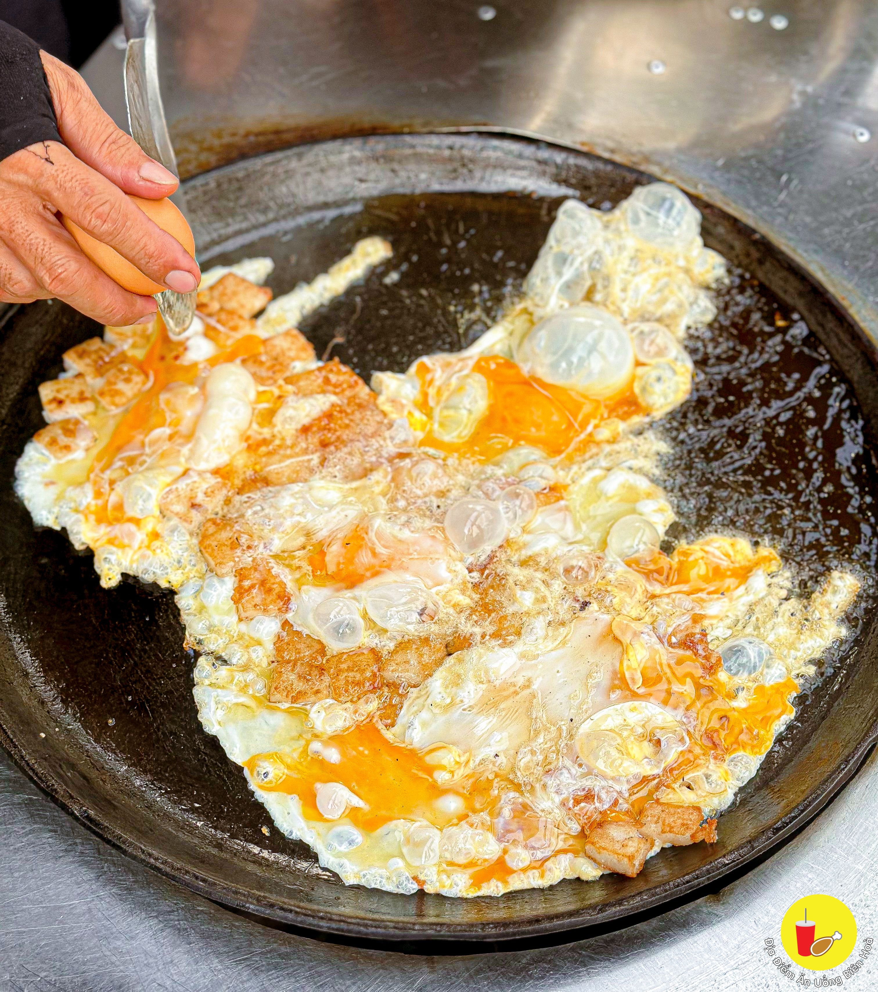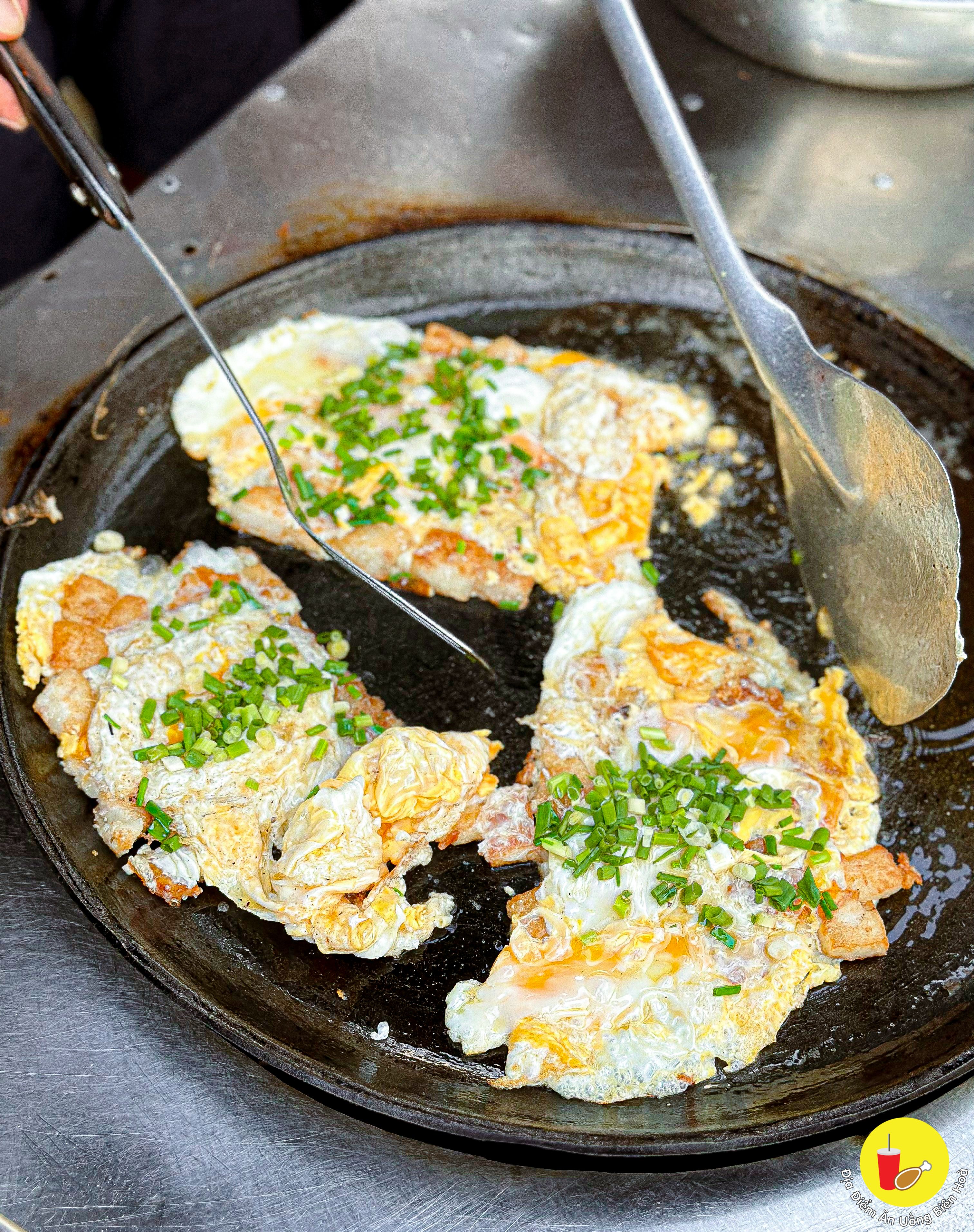 Chảo nóng hổi xèo xèo, mới ra lò. Mặc định bột chiên có hành nên bạn nào không ăn thì nhớ dặn chú nha cả nhà!
