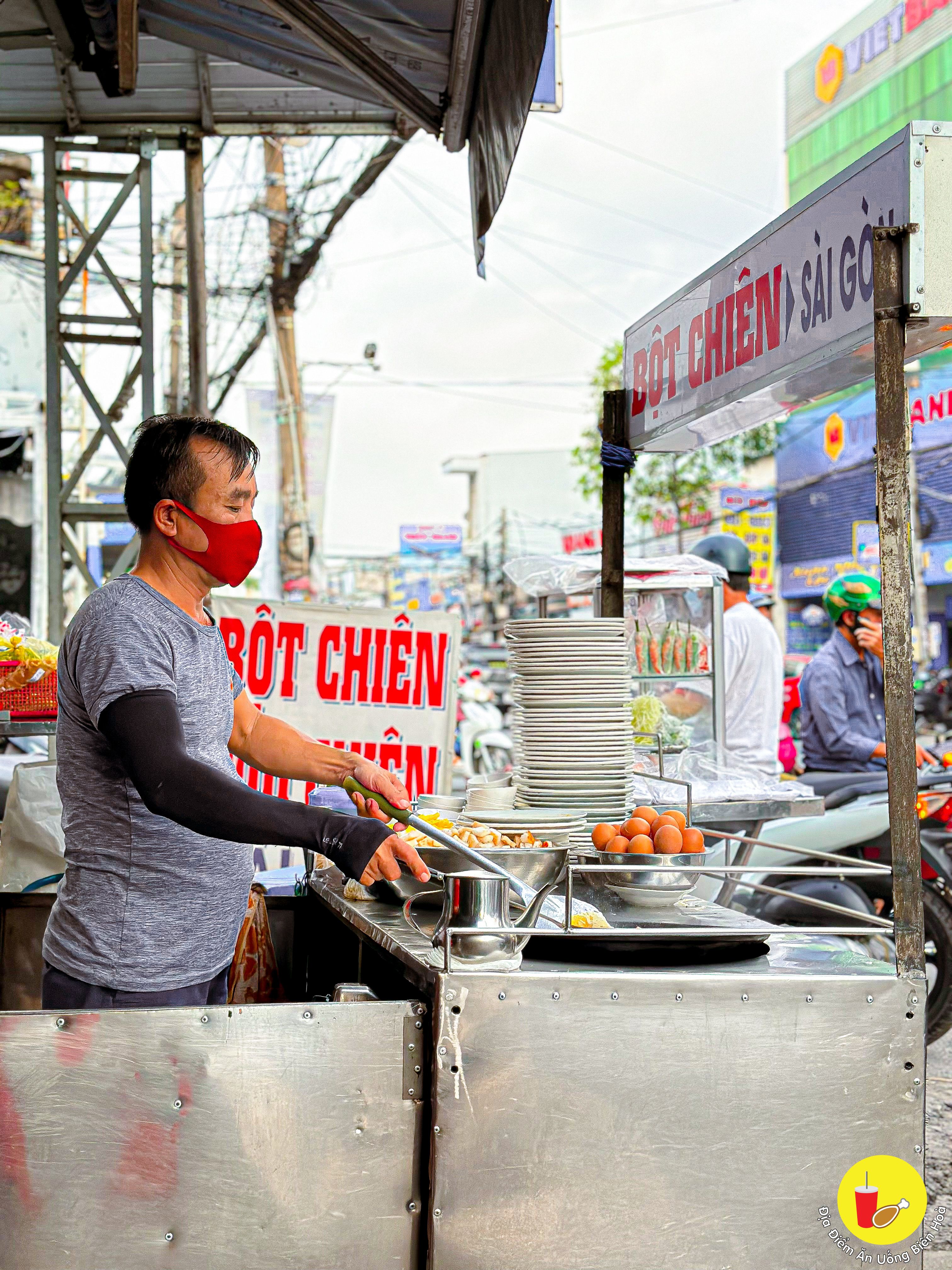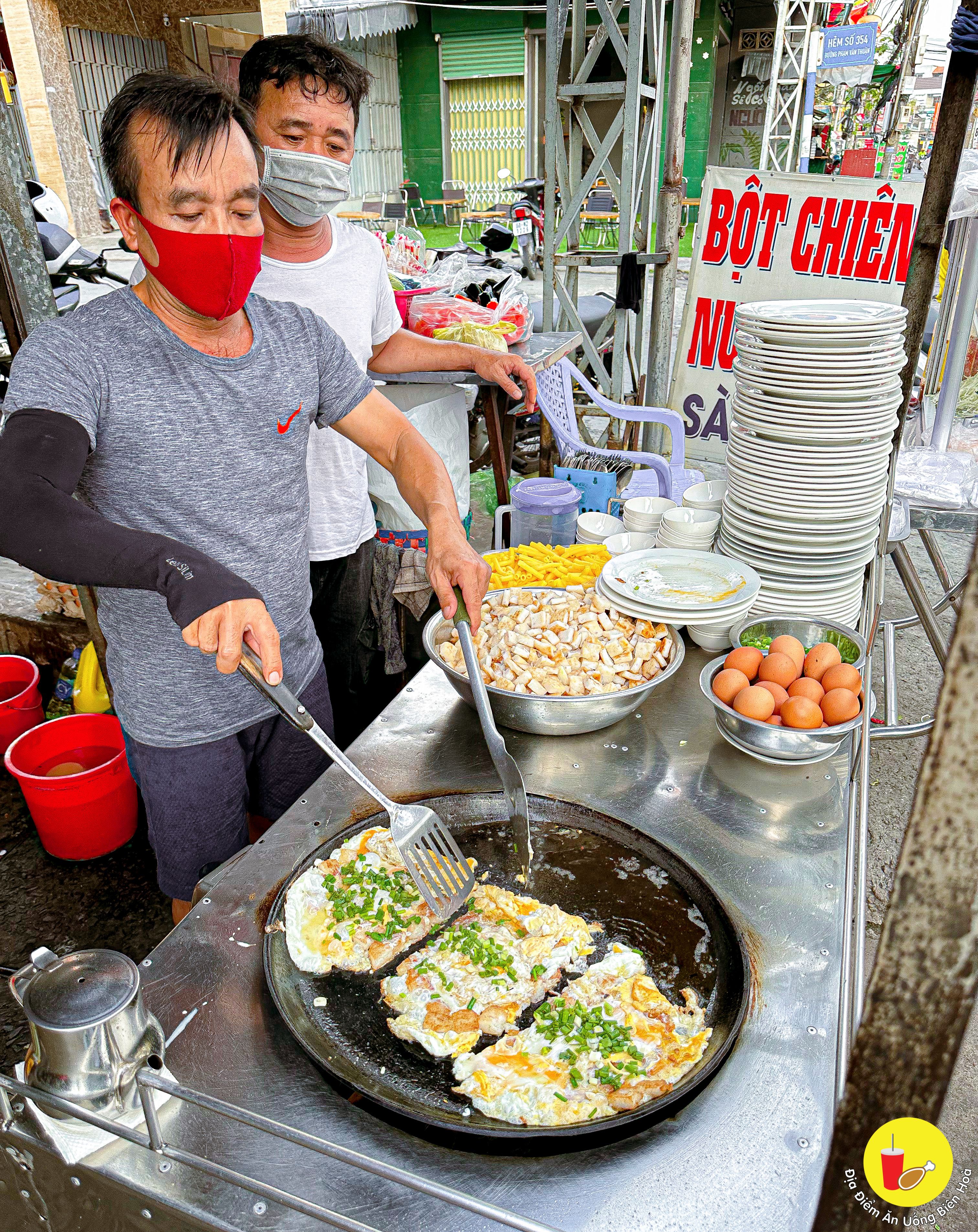 Đi ngang qua thấy ông chú đổ bột chiên xèo xèo, nhìn vào là muốn mê nên phải tấp vào liền.