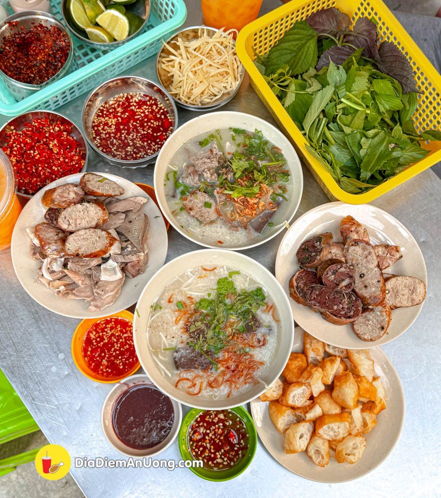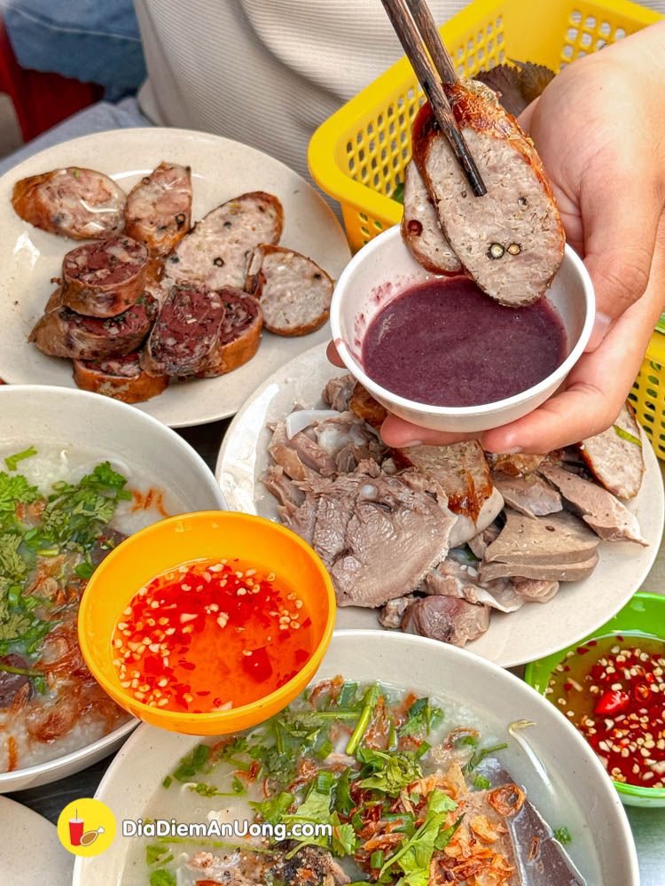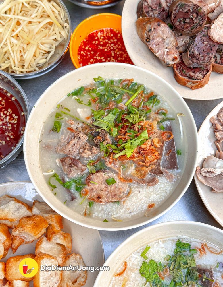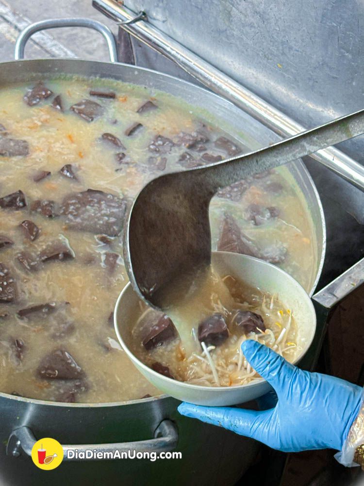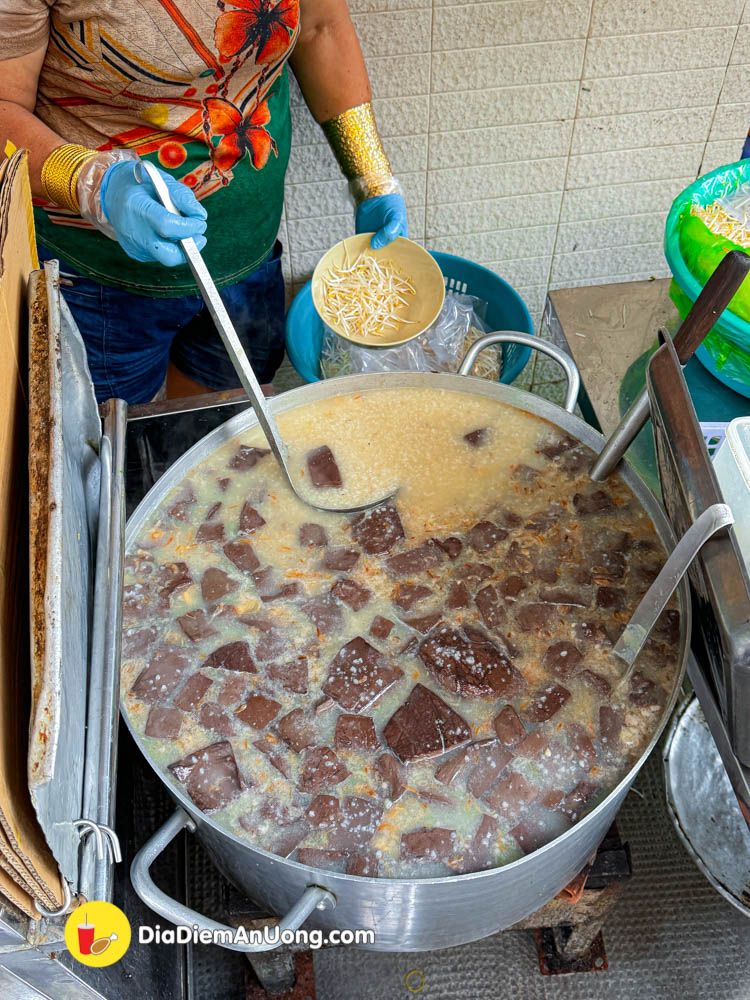 Nồi cháo nấu cùng huyết, gia vị vừa ăn. Kết hợp cùng các loại dồi, lòng, phèo ăn ngon lắm đó nha.