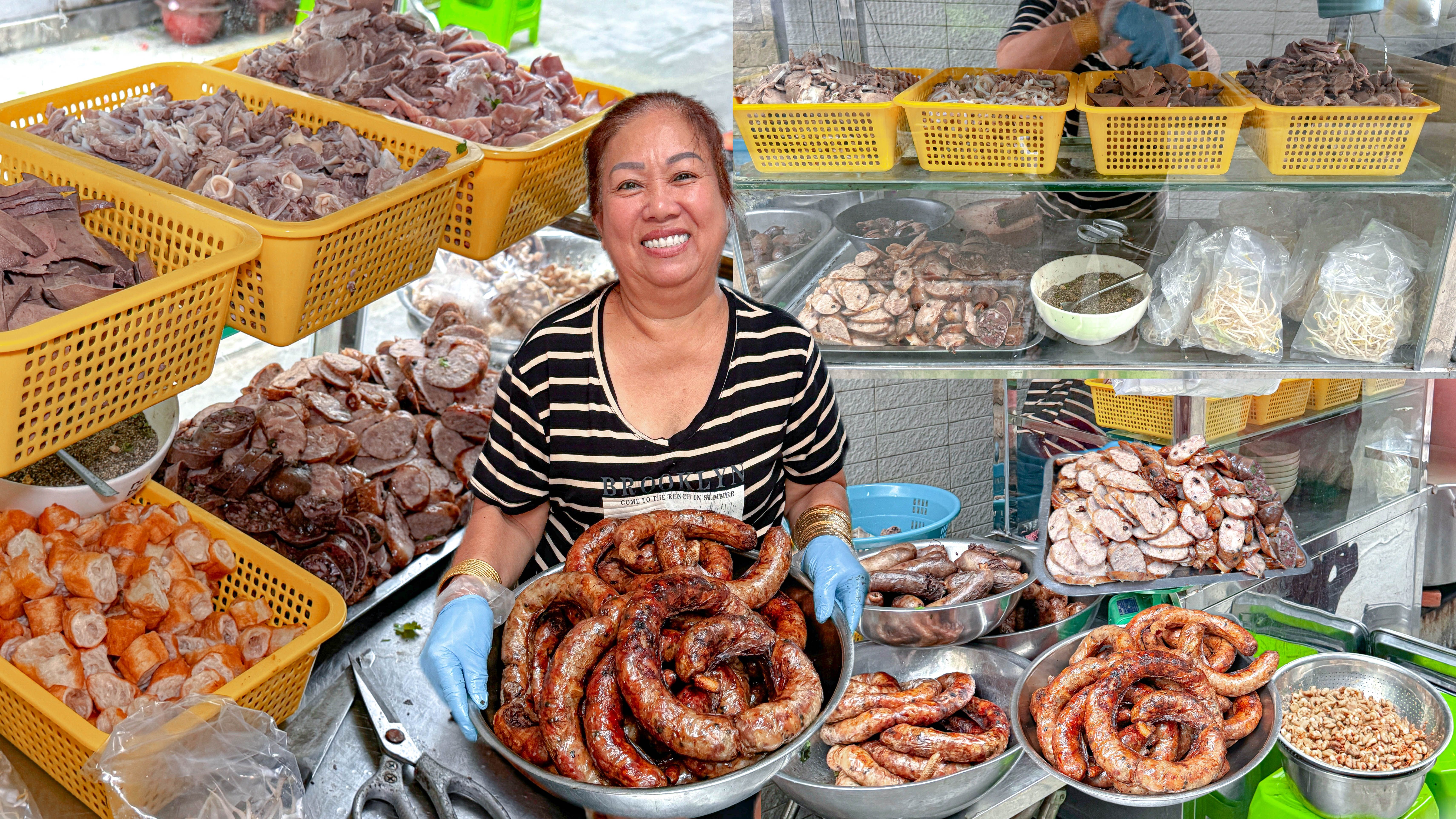 Có 3 loại dồi mà khách ưa chuộng và cũng là 3 món chính mà cô bán chạy nhất đó chính là Dồi Bì, Dồi Huyết và Dồi Gân. Nghe lạ ha, ăn một lần là ghiền luôn đó cả nhà.