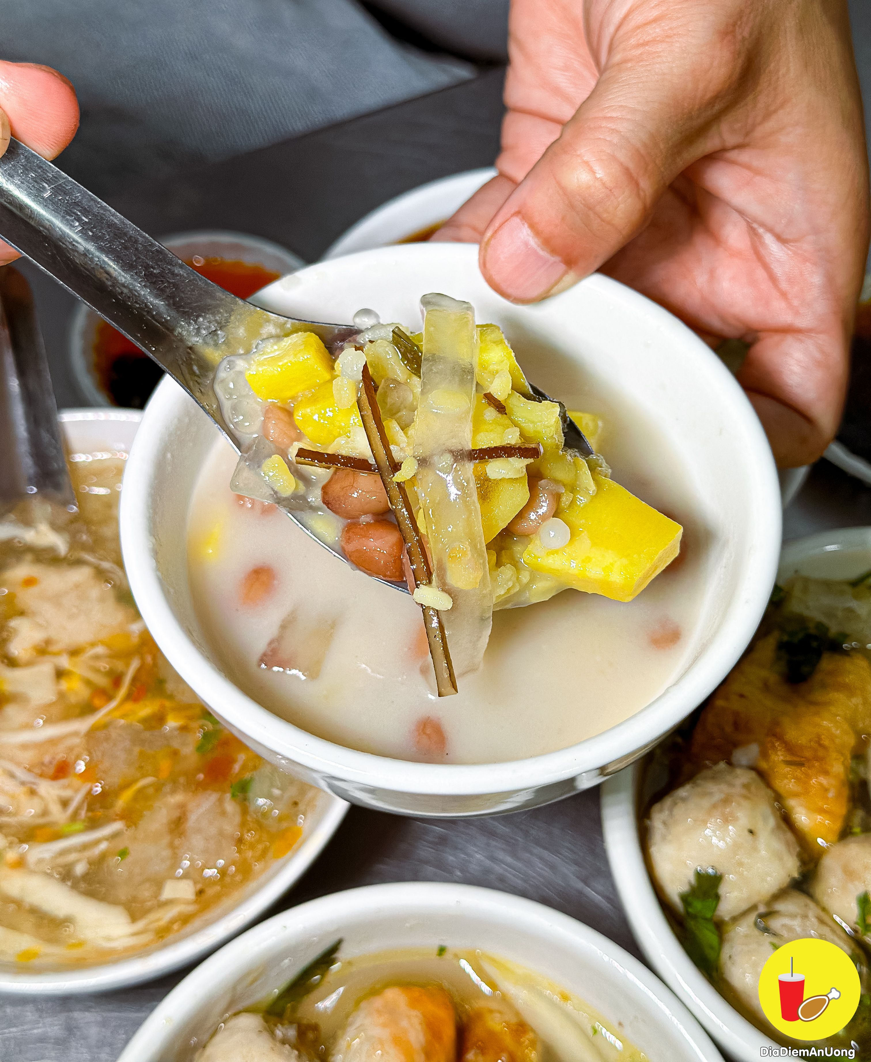 Còn chè ngọt tưởng chừng đơn giản nhưng khi ăn vào hút lắm nha, vị nước dừa ngọt, loãng chứ không đặc nên ăn không dễ ngán. Có chè thưng và chè chuối, các phần nguyên liệu được nấu mềm vừa tới không bị nhũn.