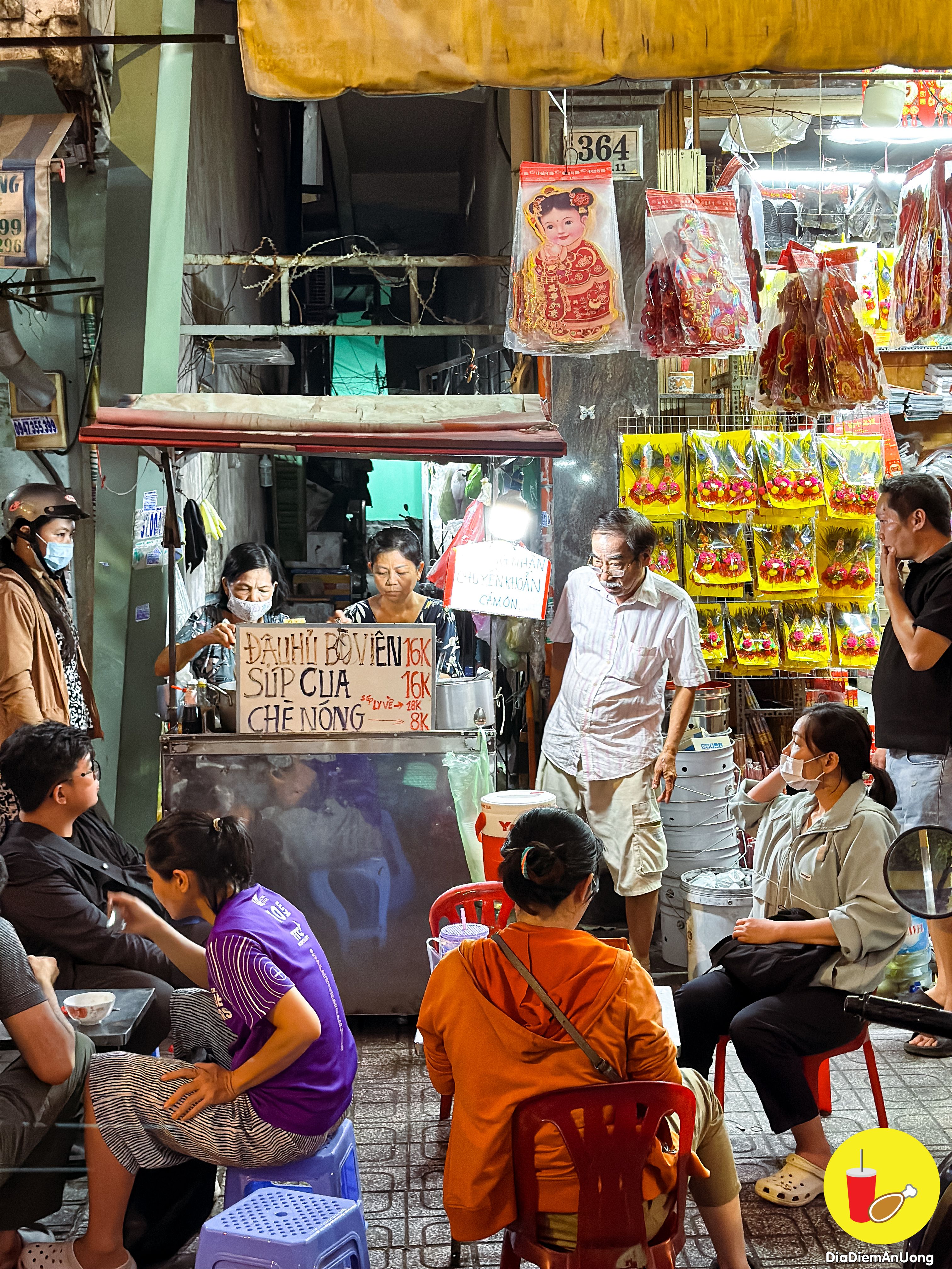 Nay bật mí cho cả nhà 1 xe đậu hũ bò viên người Hoa có thêm món súp cua, chè nóng nhỏ mà có võ, đi ngang qua nếu không biết tới sẽ không để ý thấy, chỉ thấy đông đúc là biết độ uy tín liền.