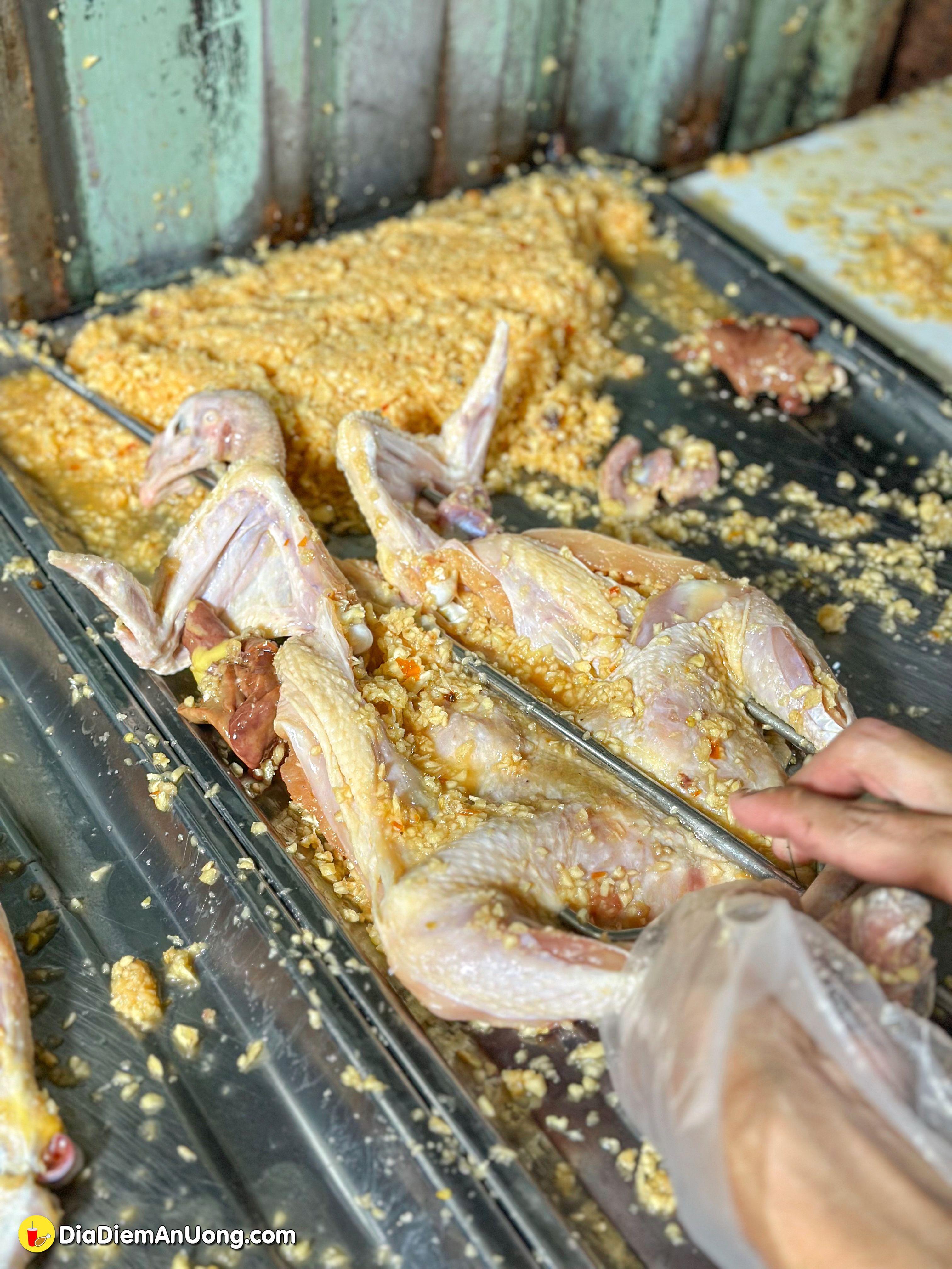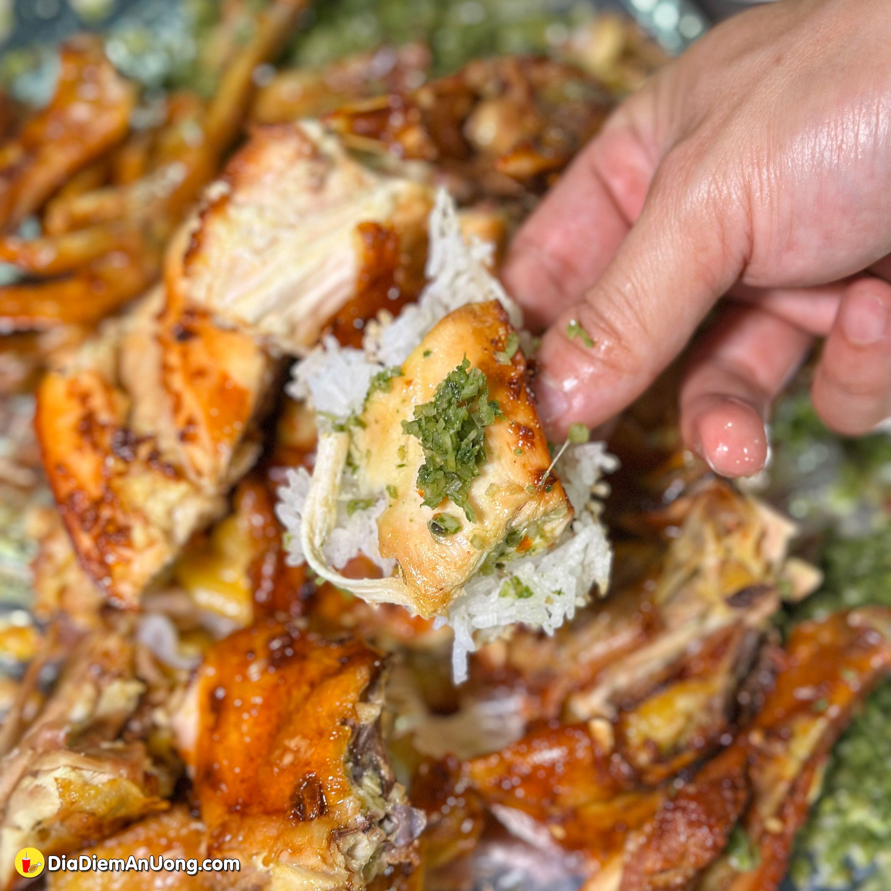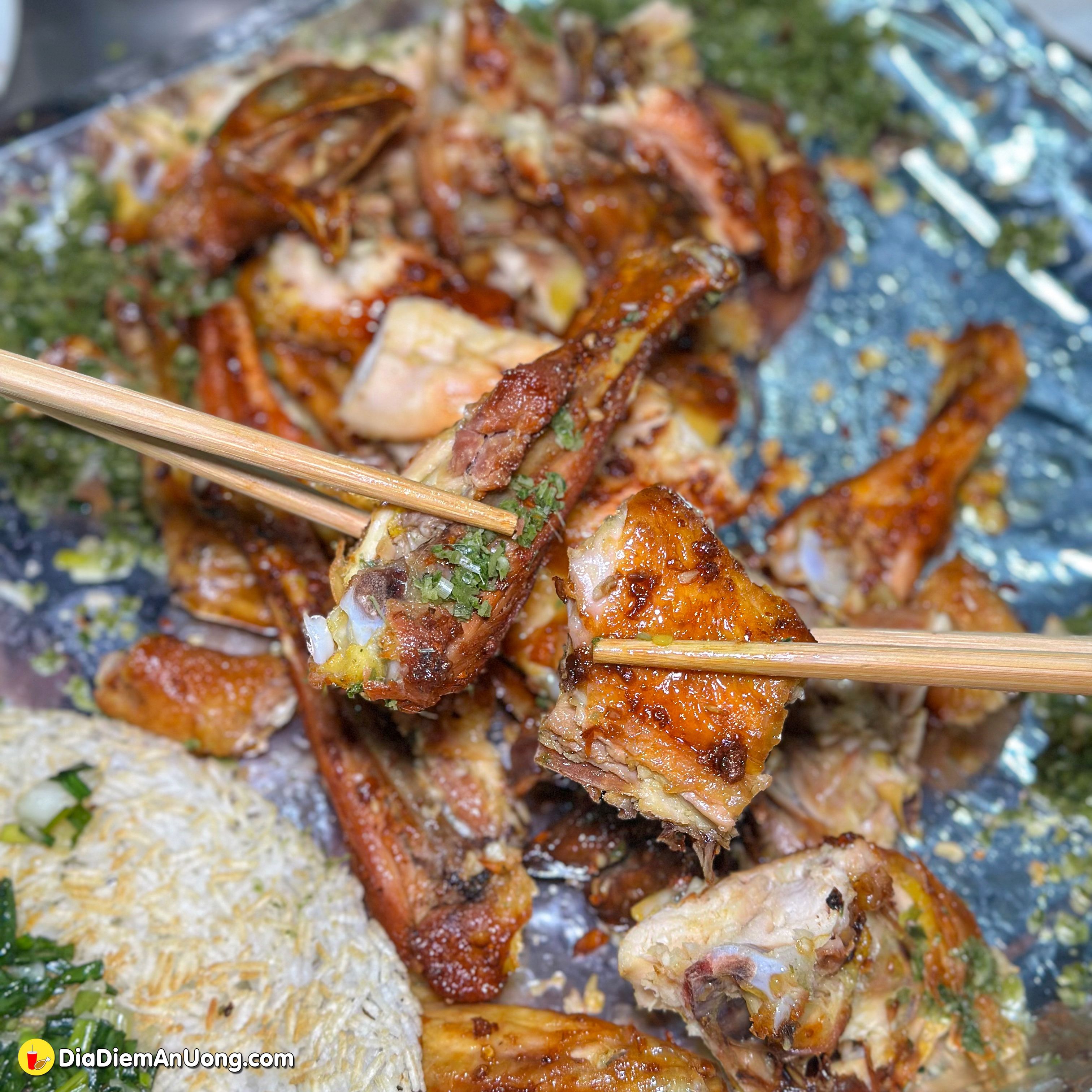 Gà được nướng đều tay, lớp da vàng óng, thịt bên trong vẫn giữ được độ ngọt và mọng nước. Gà được dùng là gà mái, gà ta nên chắc thịt rất chất lượng.